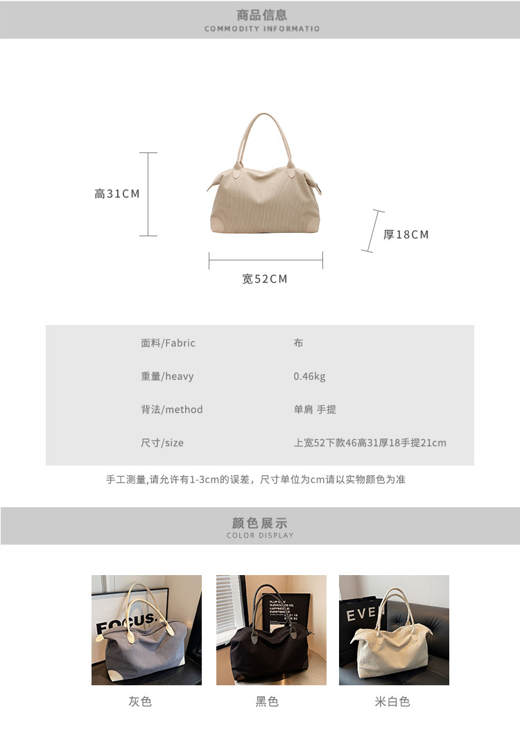 旅行包女大容量短途出差行李包簡約百搭單肩包輕便手提待産收納包