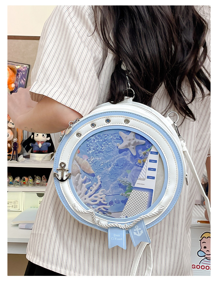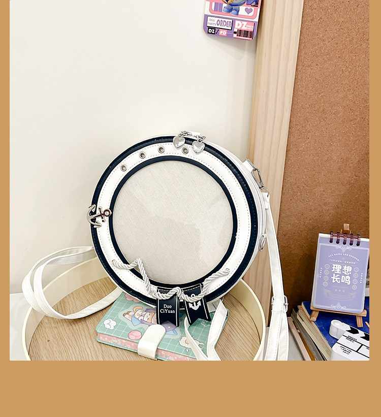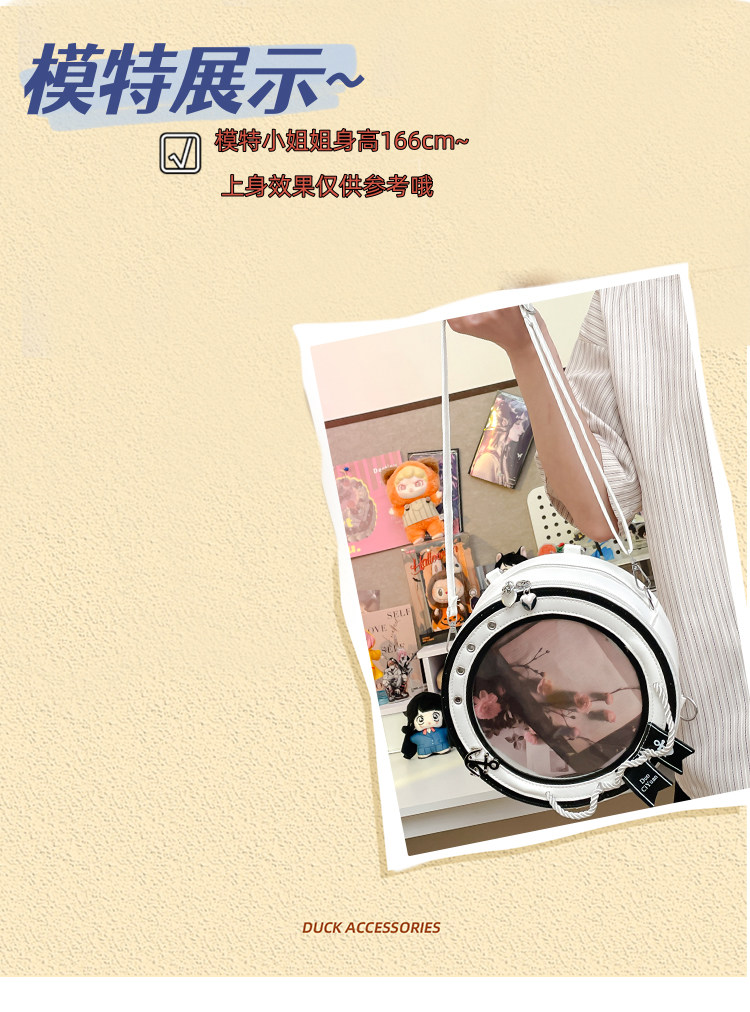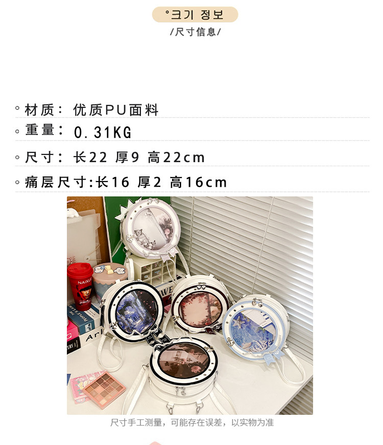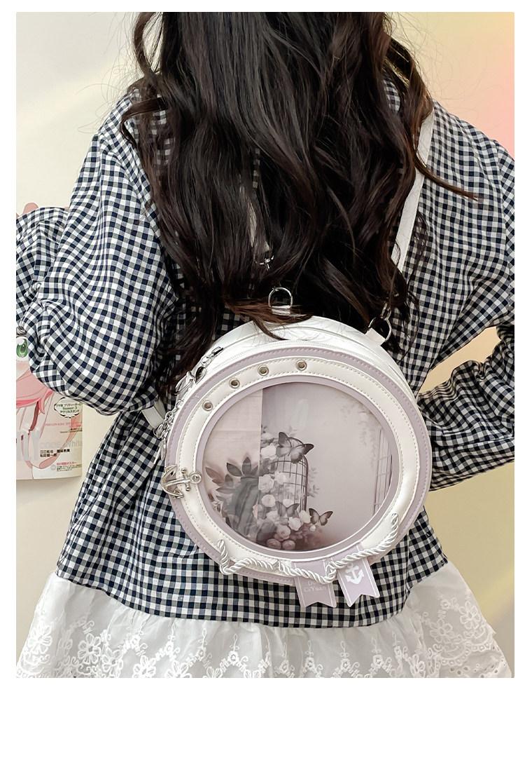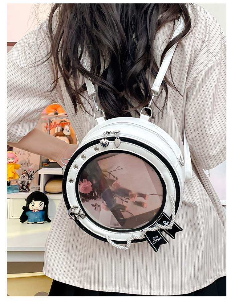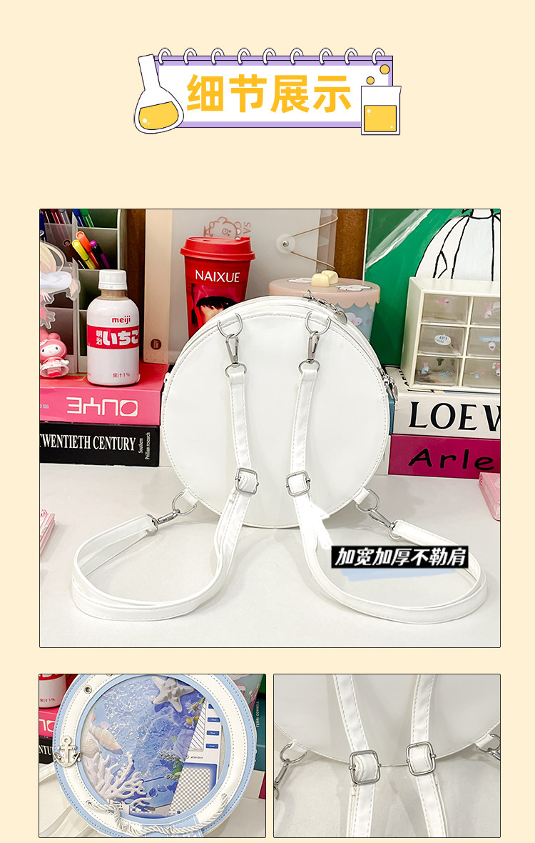 圓形微食量痛包小衆設計圓餅斜後後背包百搭高級感吧唧徽章收納雙肩包