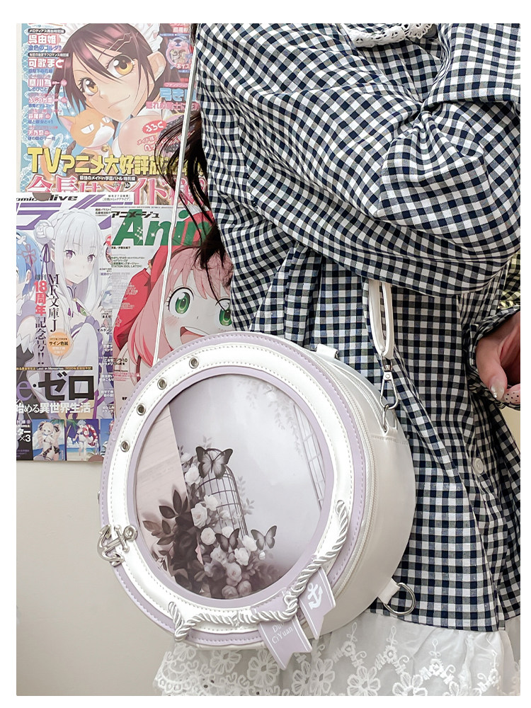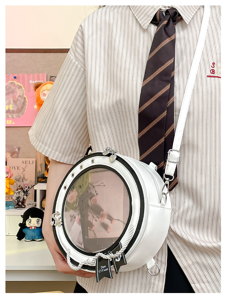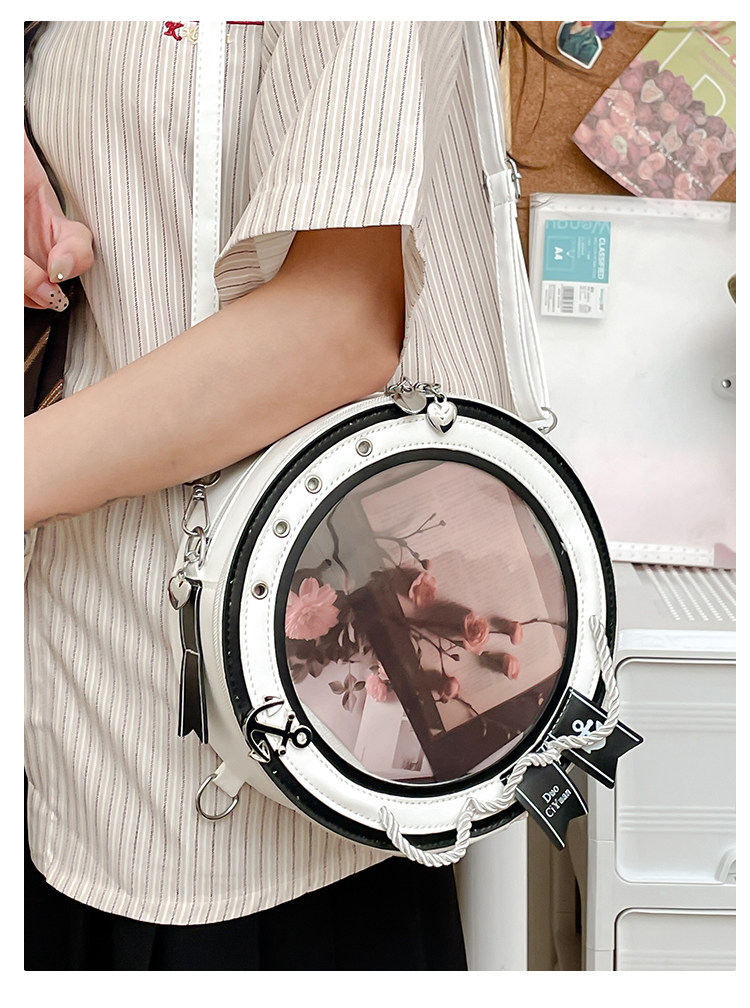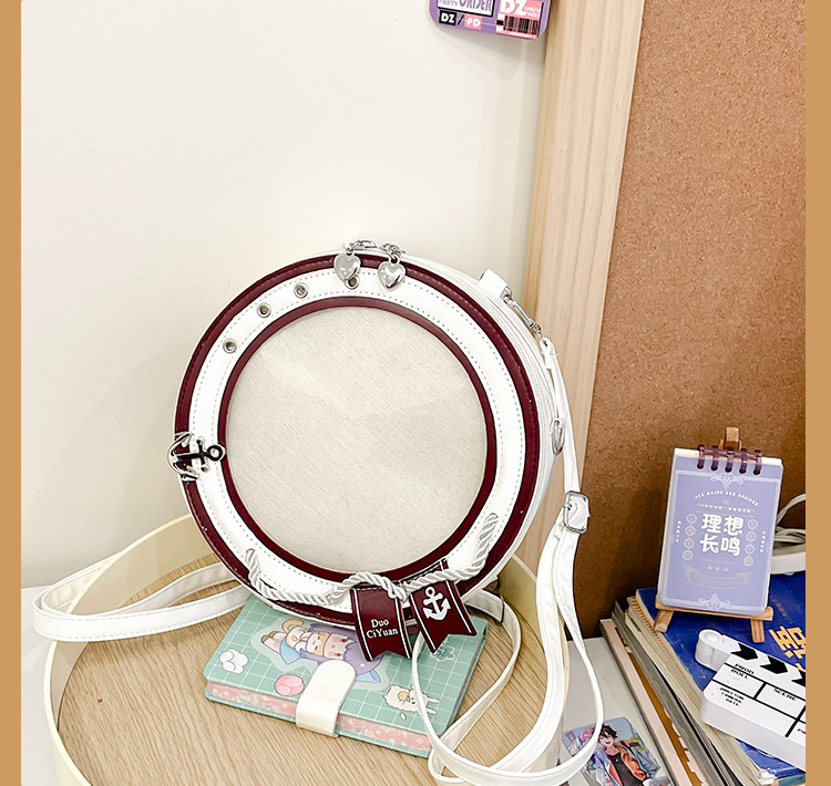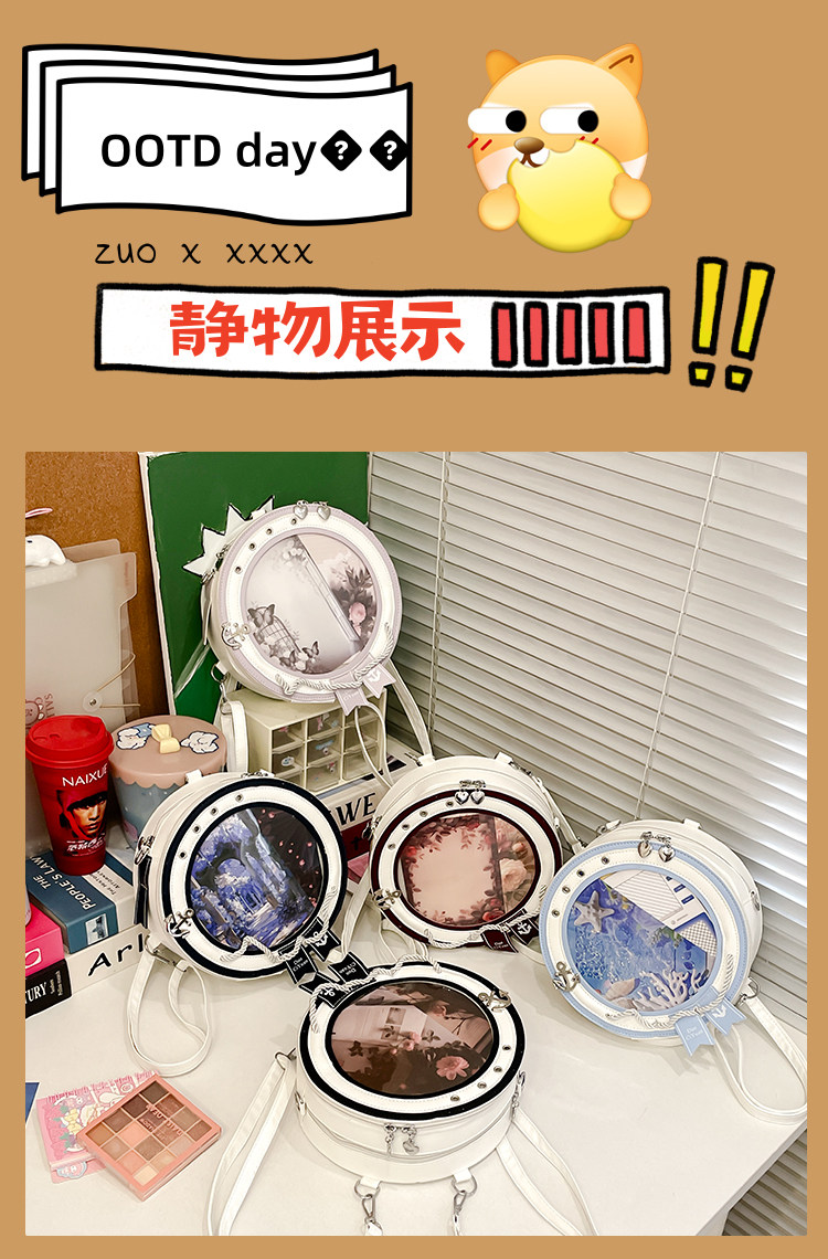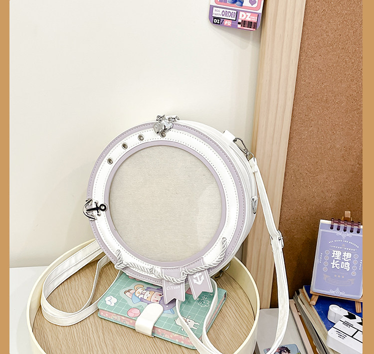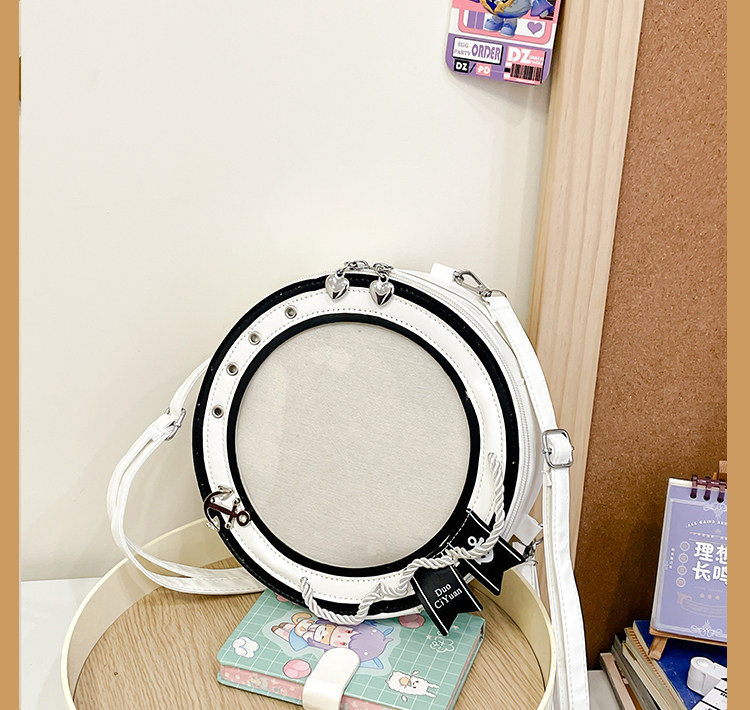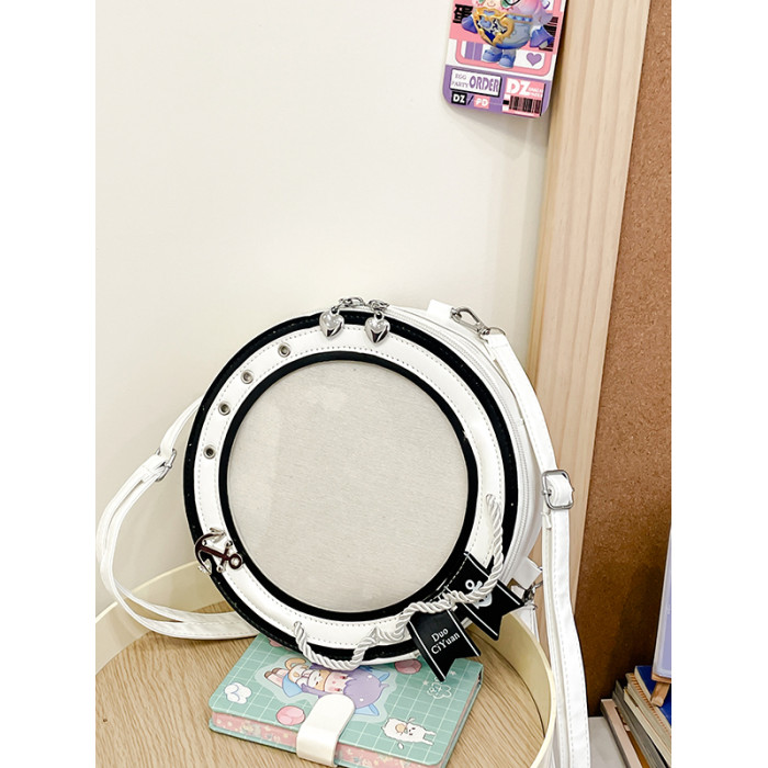 圓形微食量痛包小衆設計圓餅斜後後背包百搭高級感吧唧徽章收納雙肩包