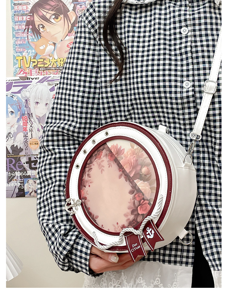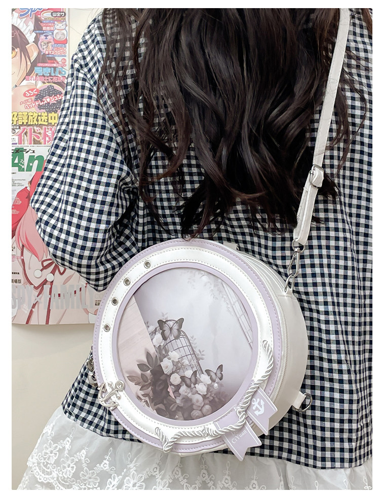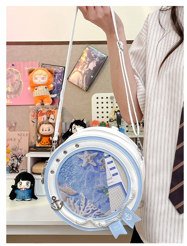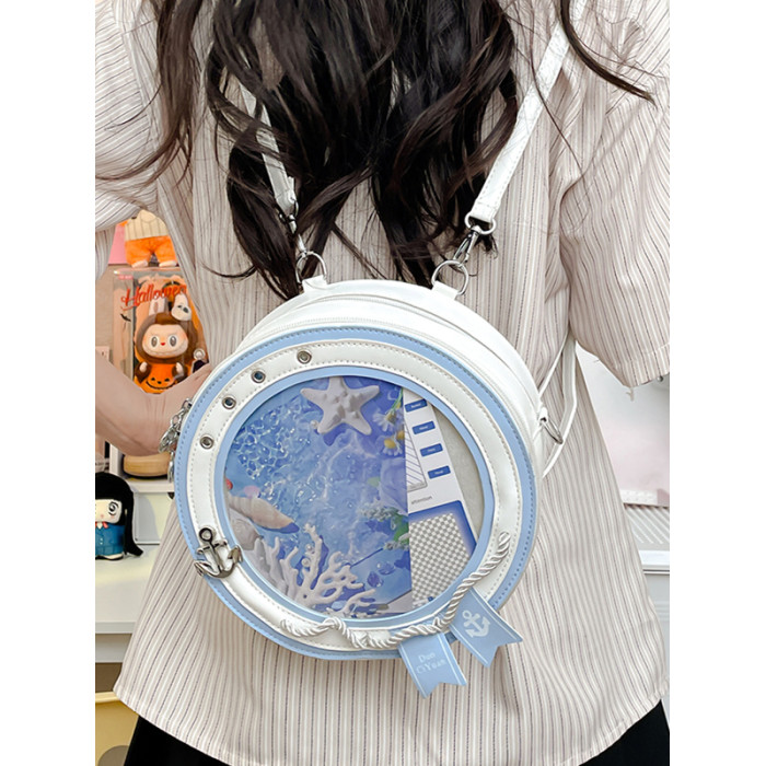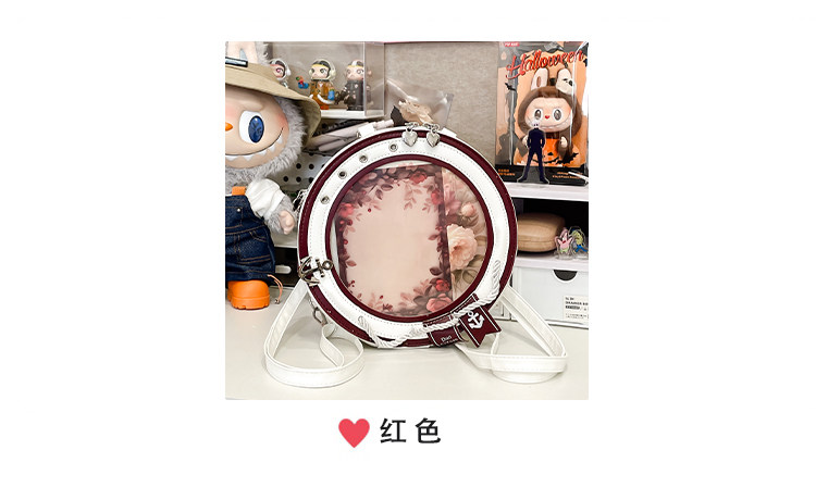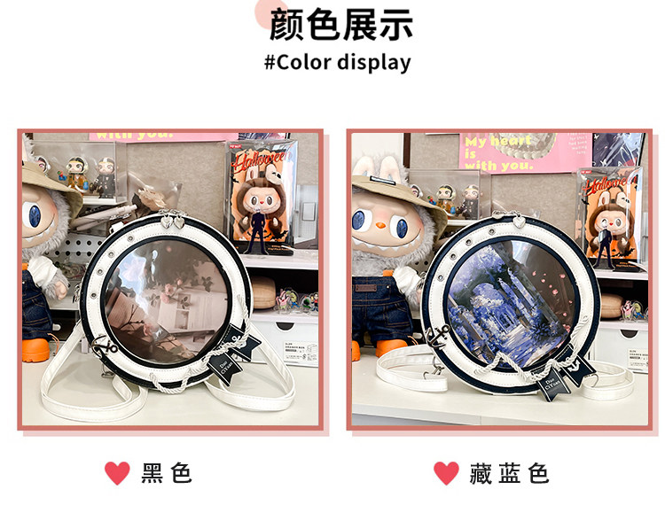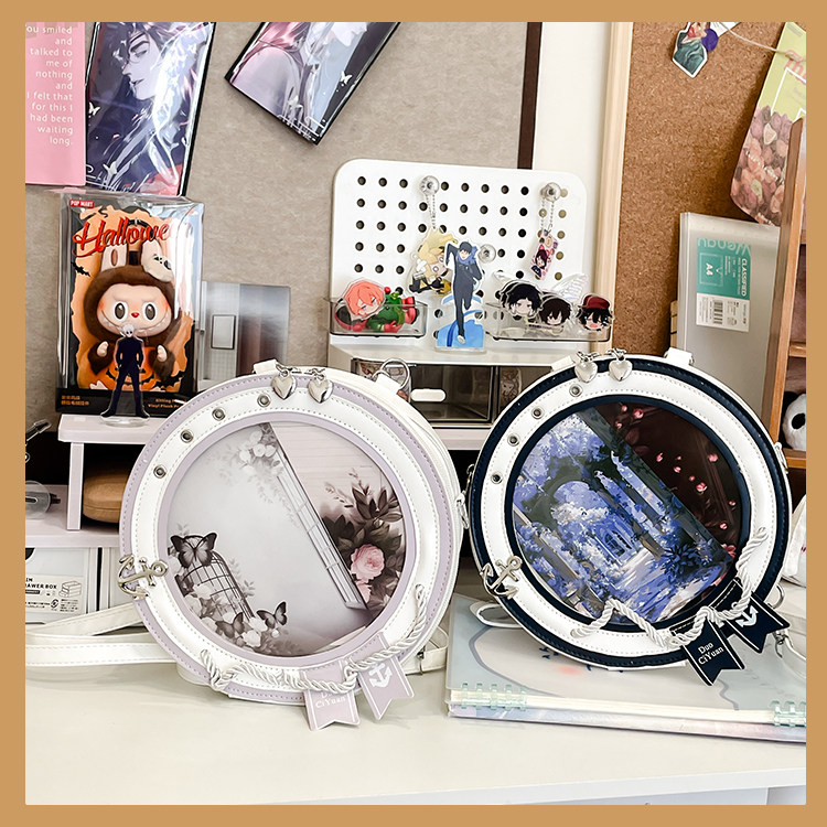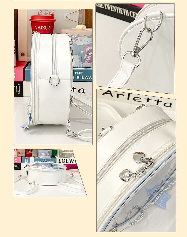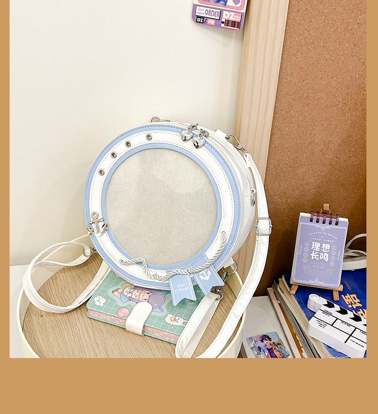 圓形微食量痛包小衆設計圓餅斜後後背包百搭高級感吧唧徽章收納雙肩包