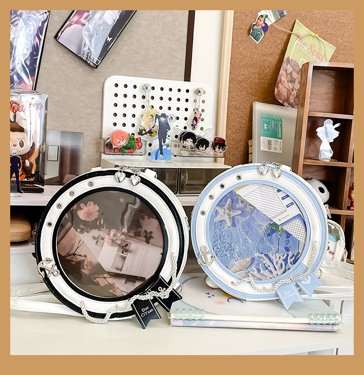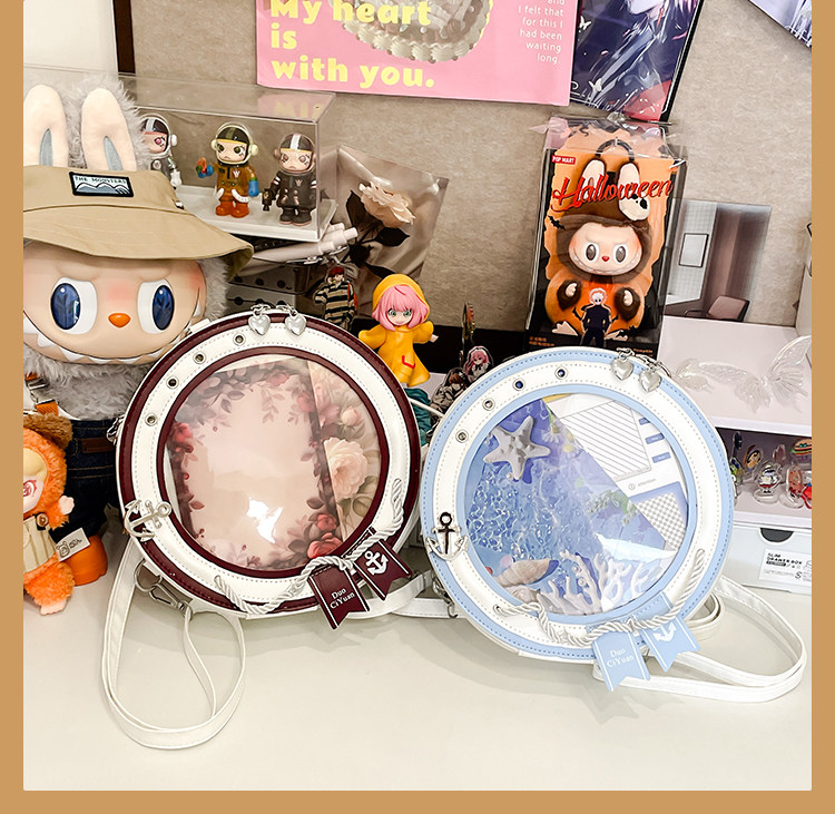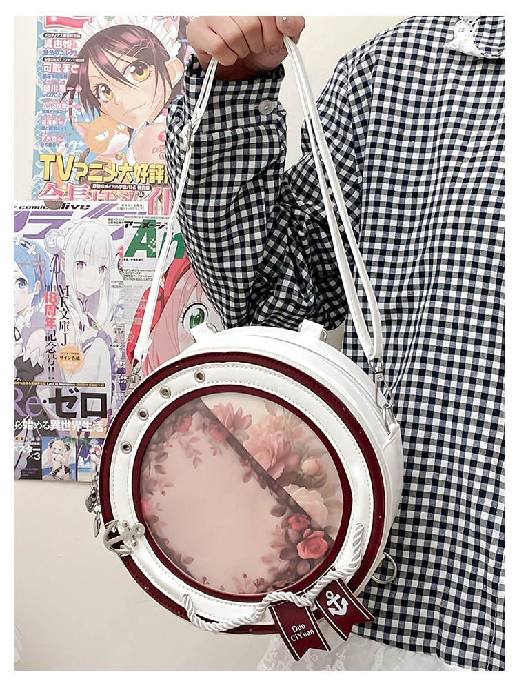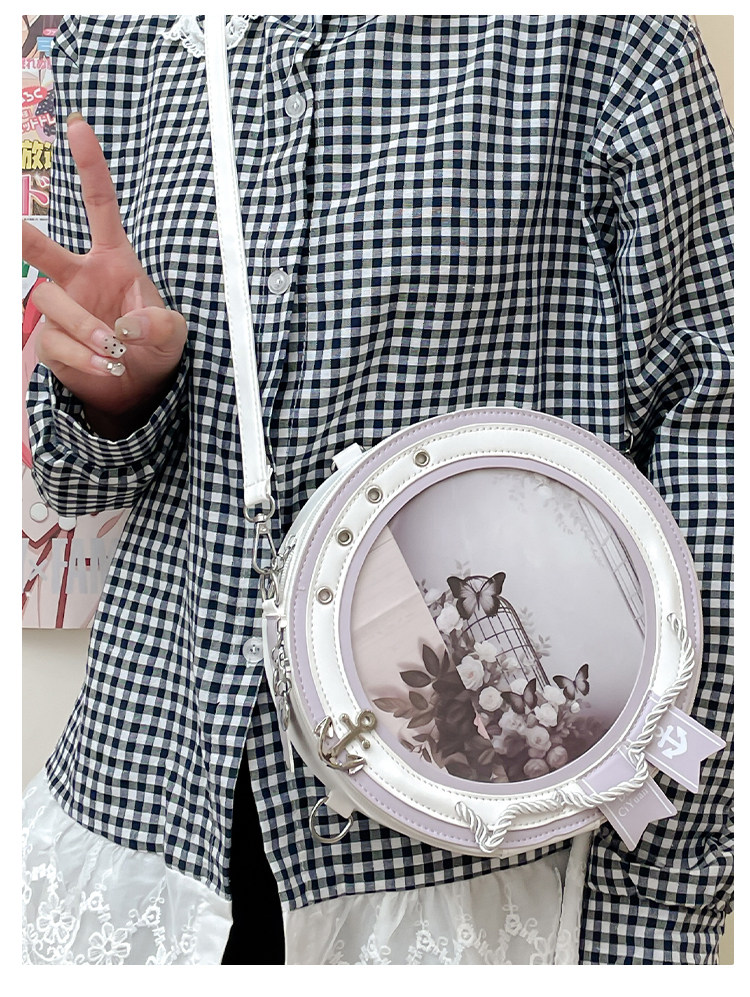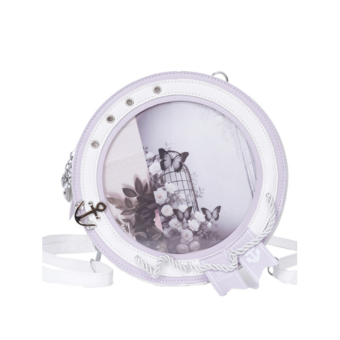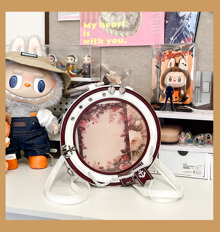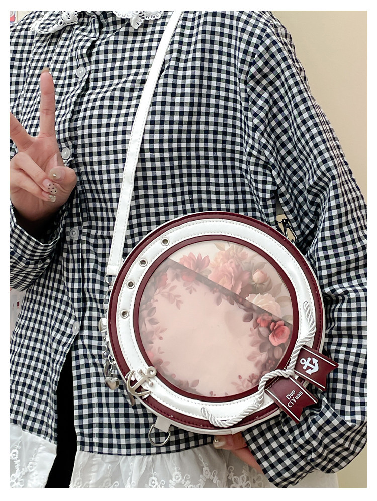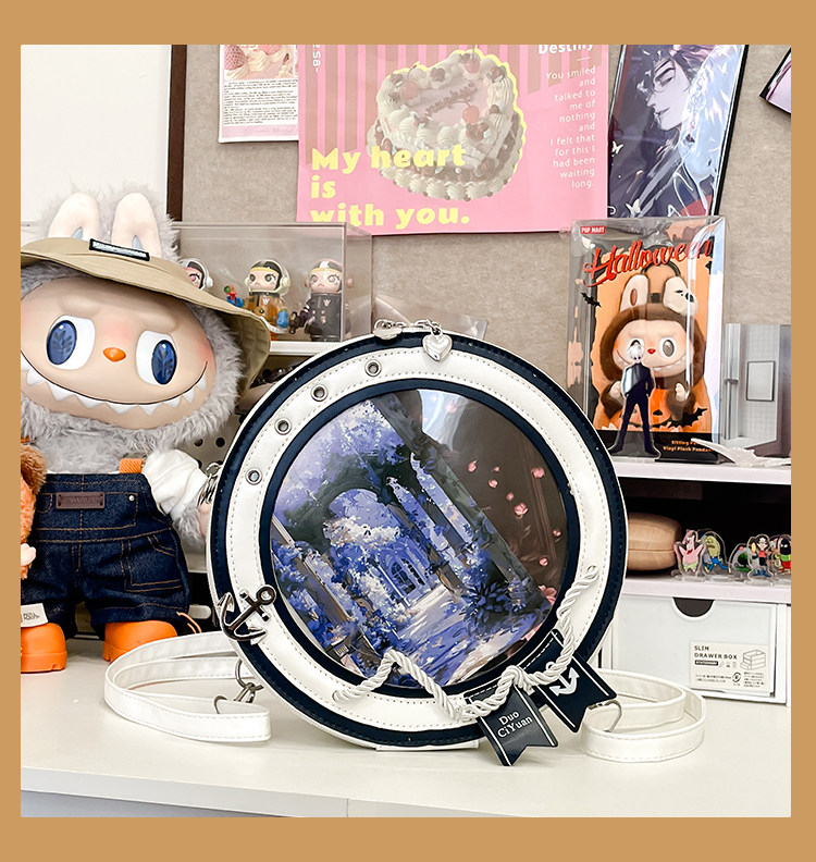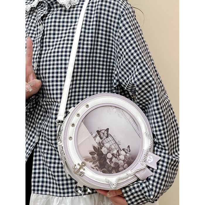 圓形微食量痛包小衆設計圓餅斜後後背包百搭高級感吧唧徽章收納雙肩包