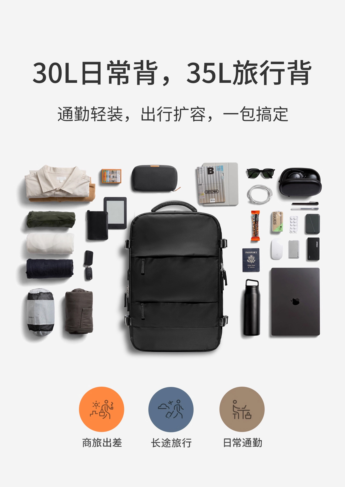旅行後後背包男士雙肩包大容量書包旅遊輕便出差短途旅行包行李登機包