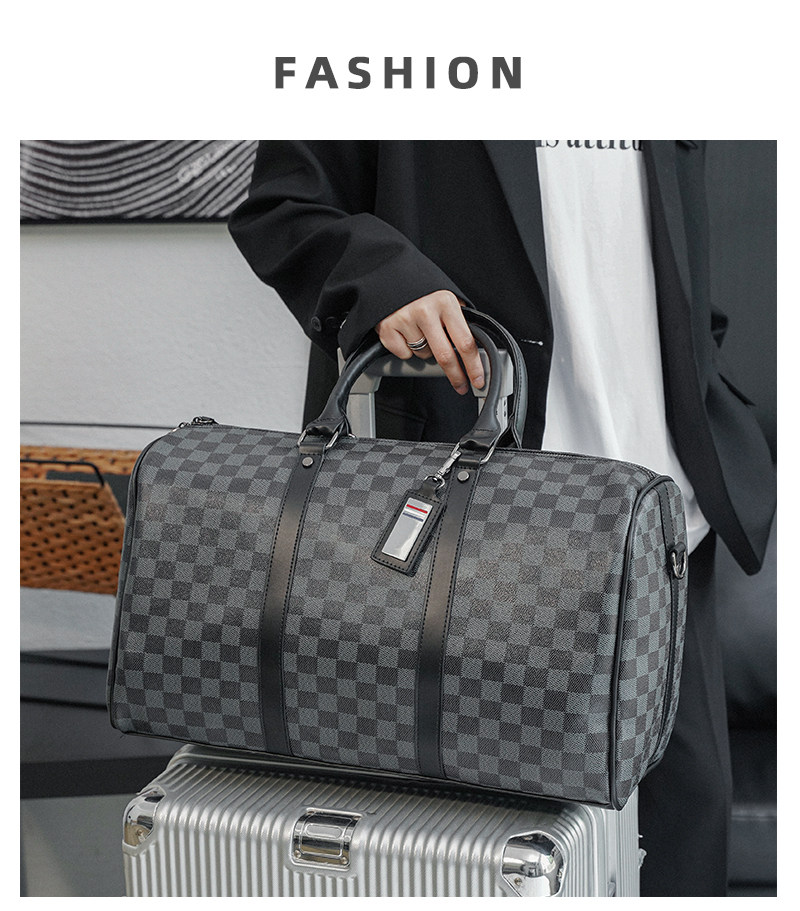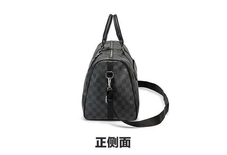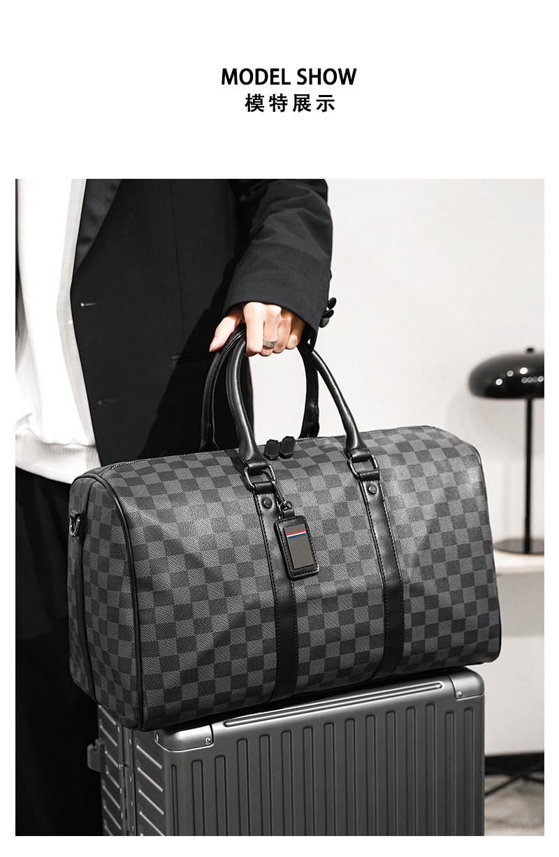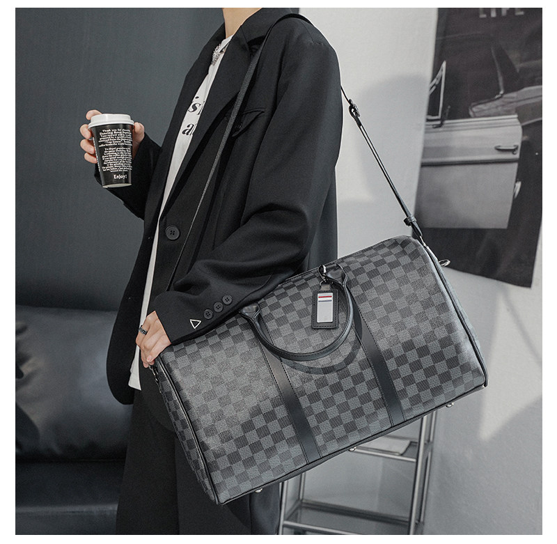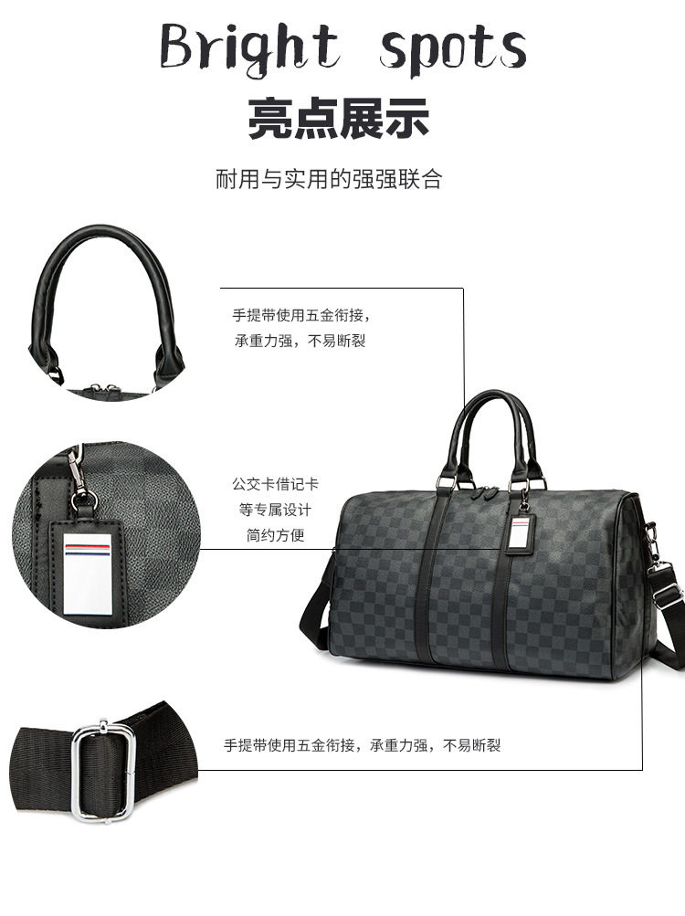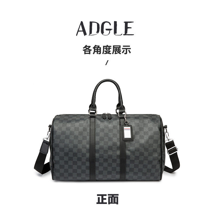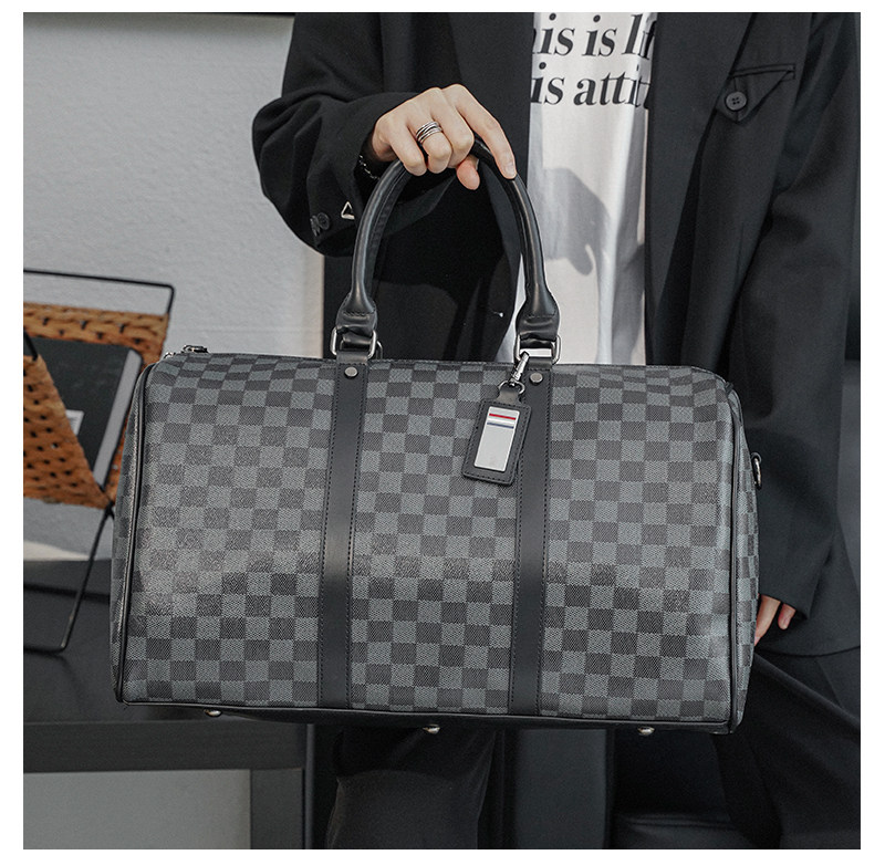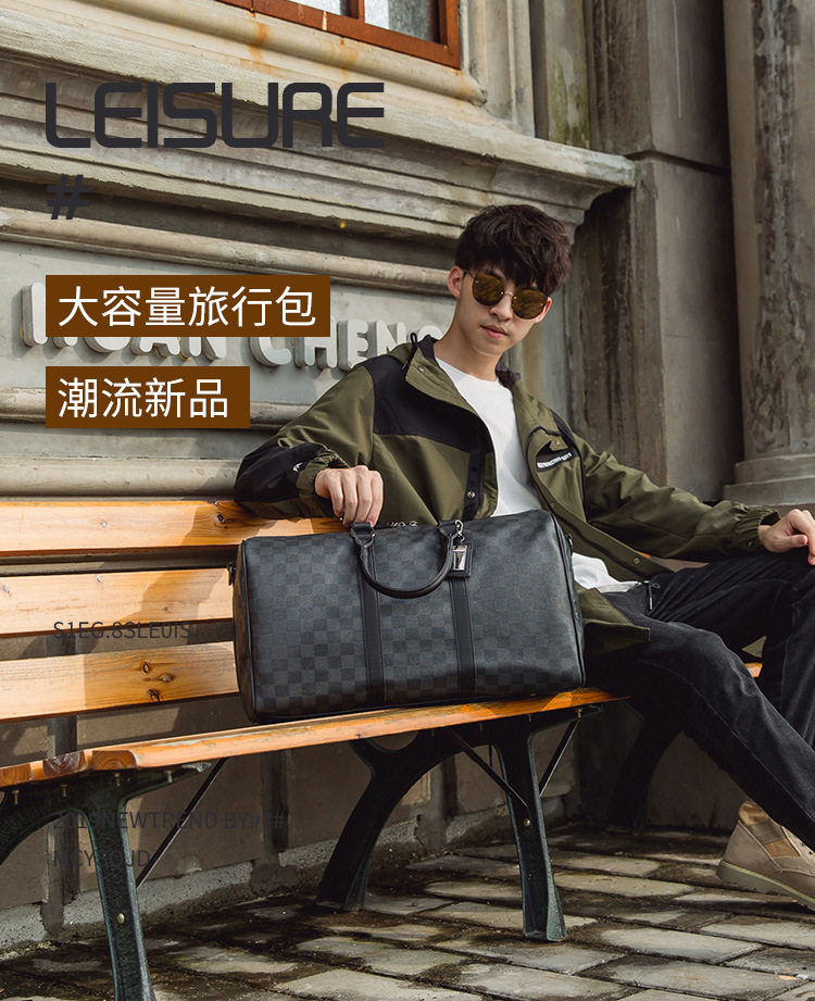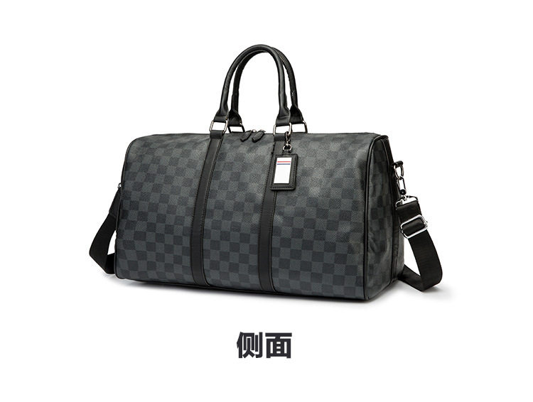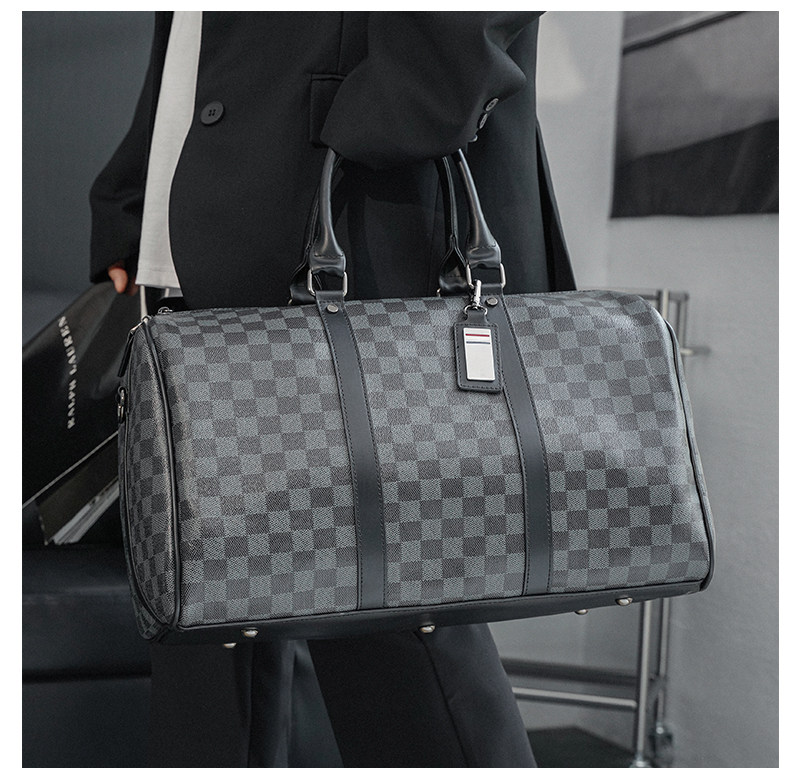 韓版新款男大容量短途旅遊出差行李袋潮流格子手提包單肩包健身包