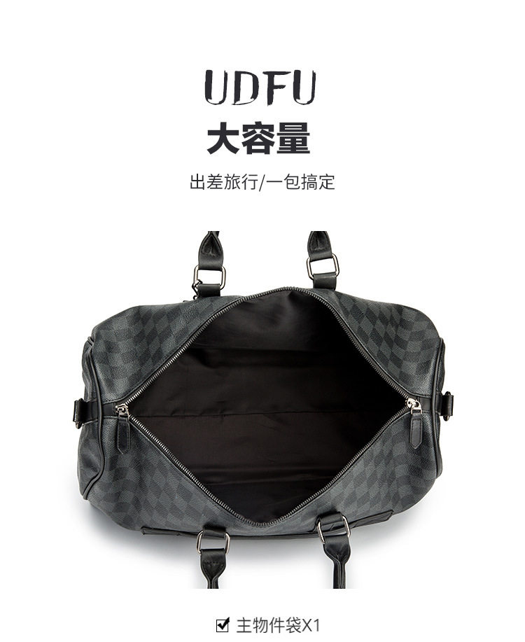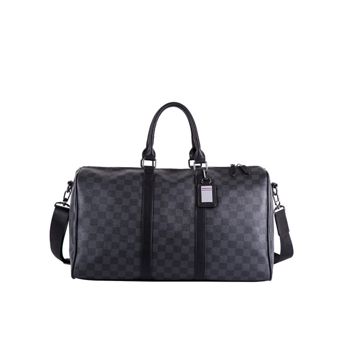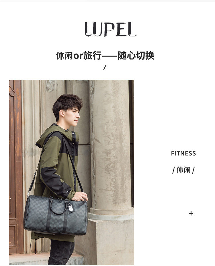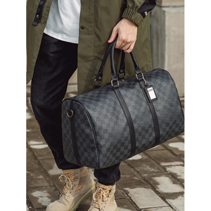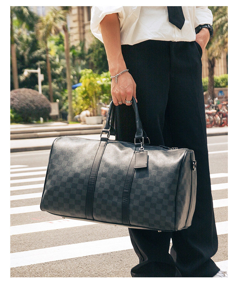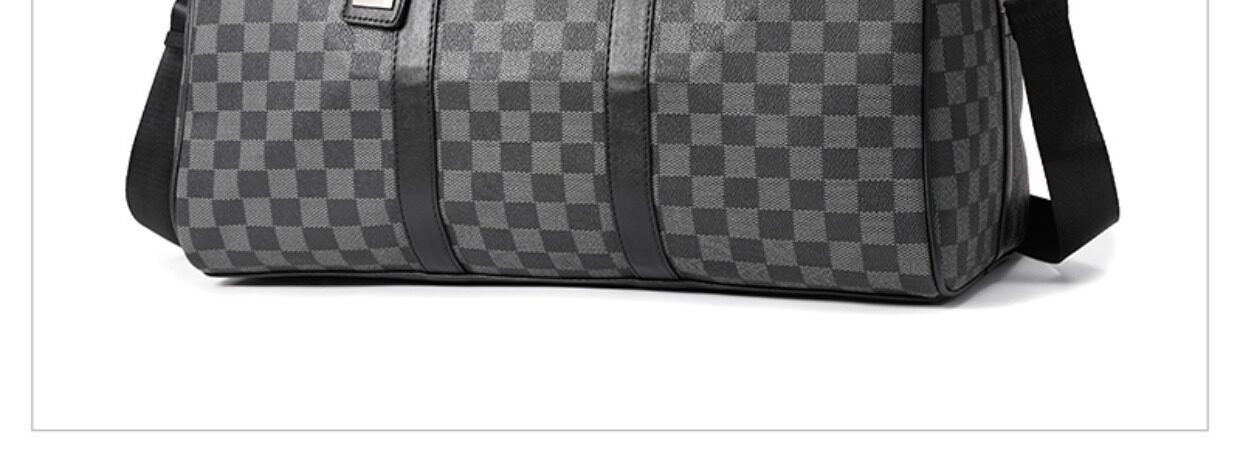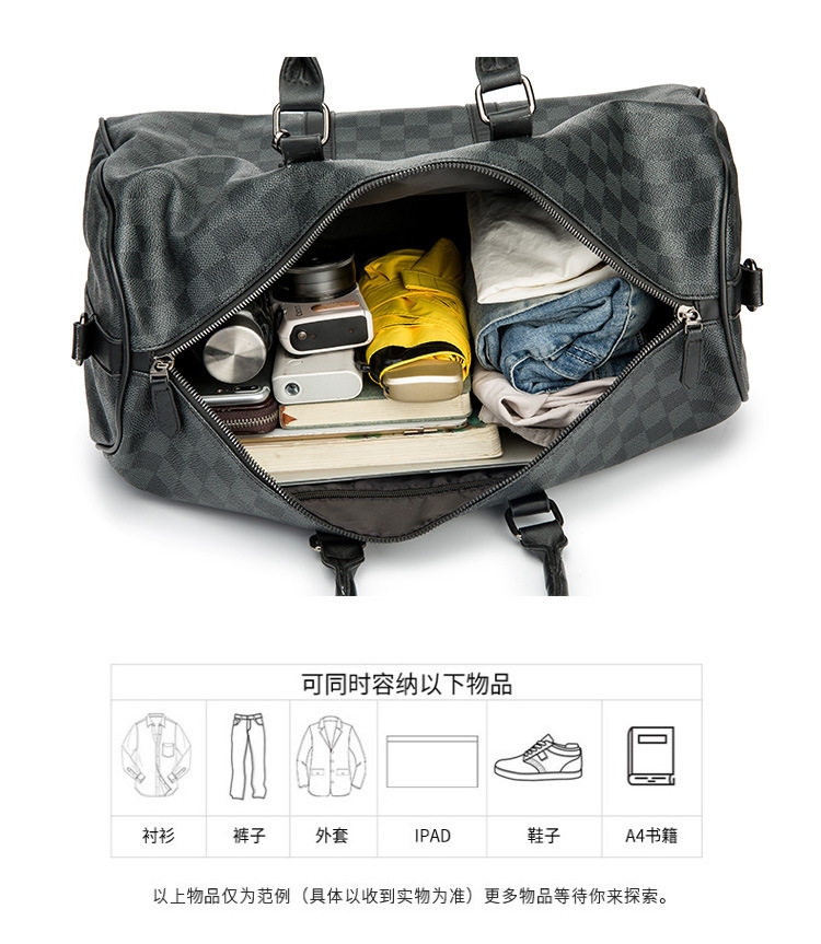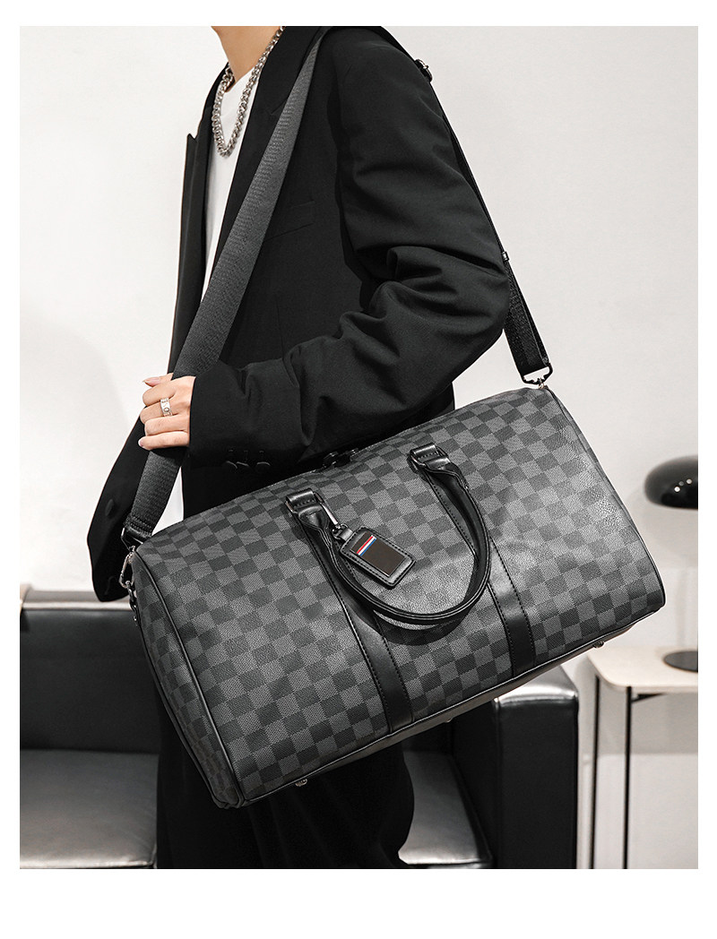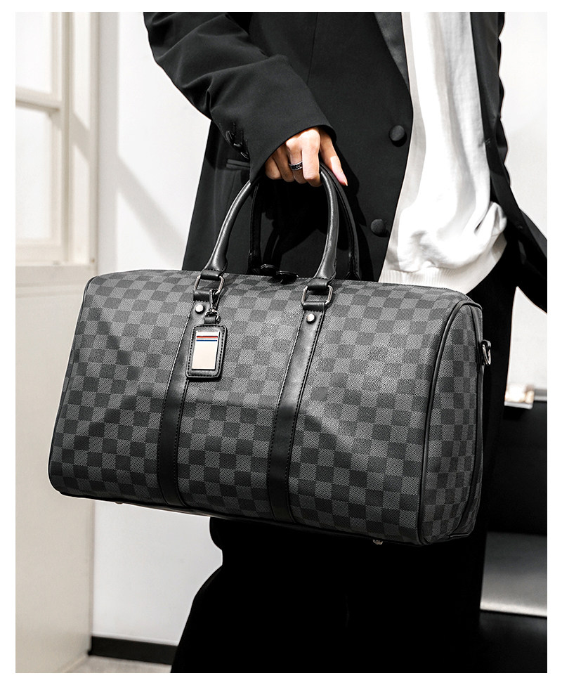 韓版新款男大容量短途旅遊出差行李袋潮流格子手提包單肩包健身包
