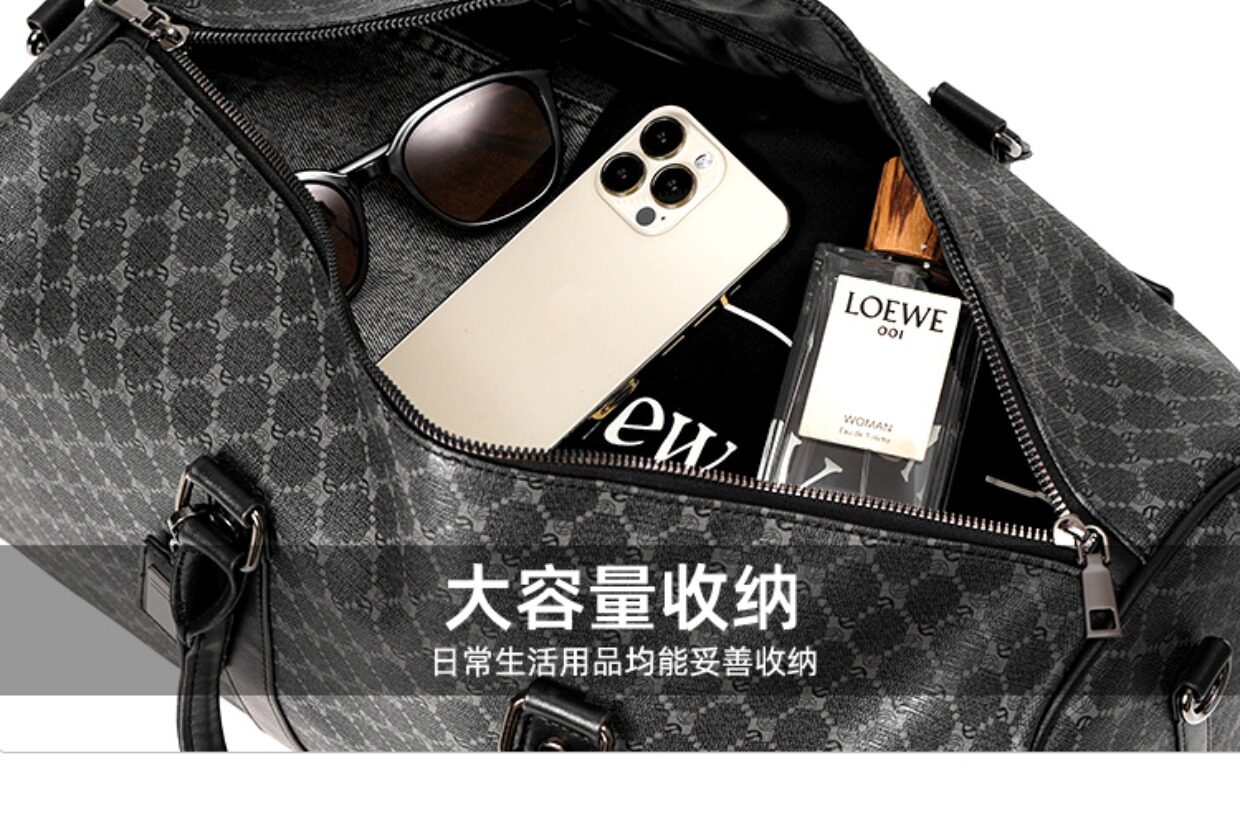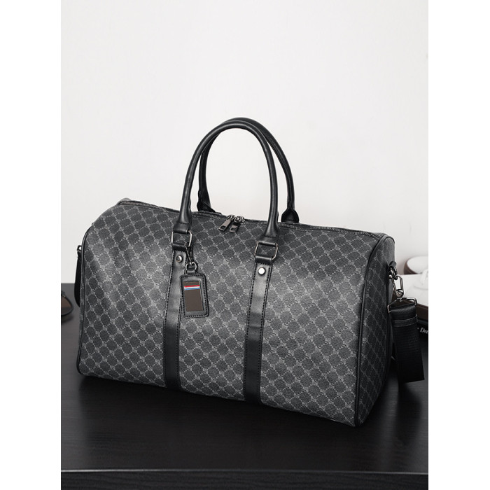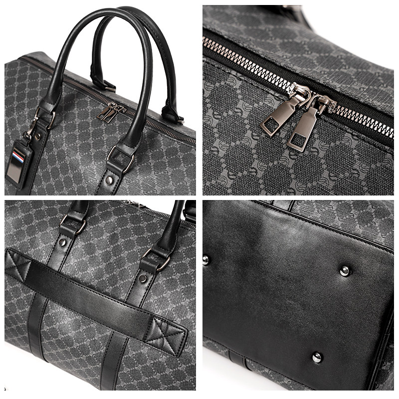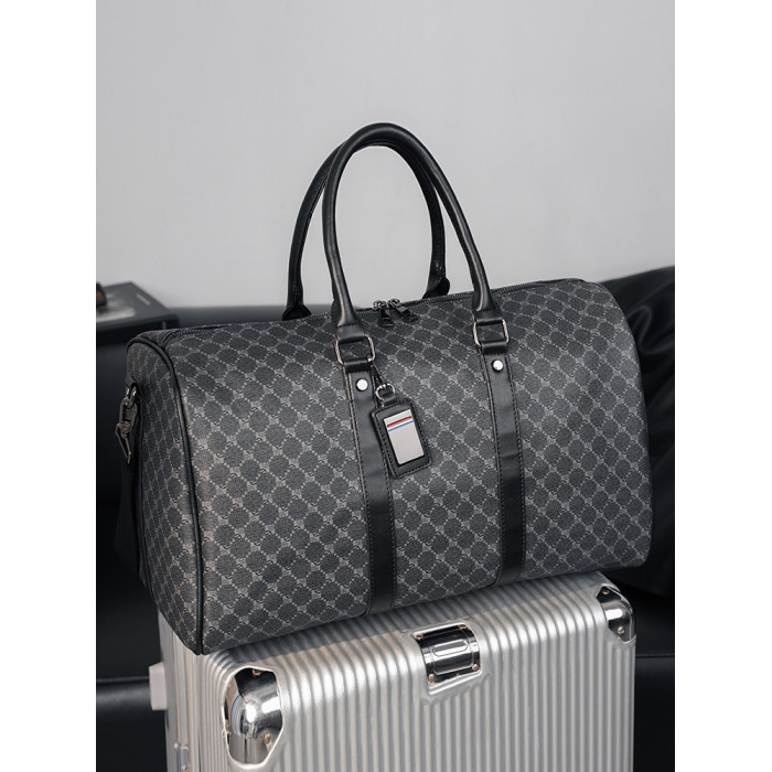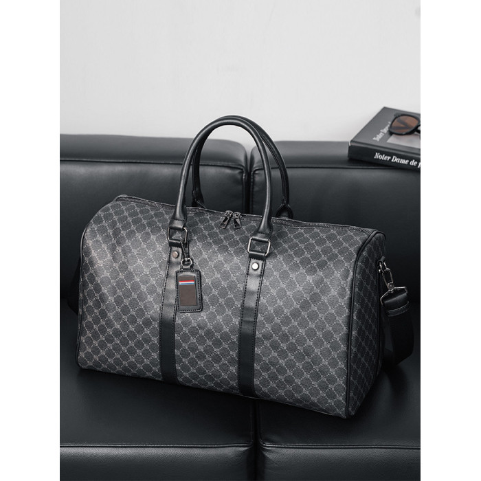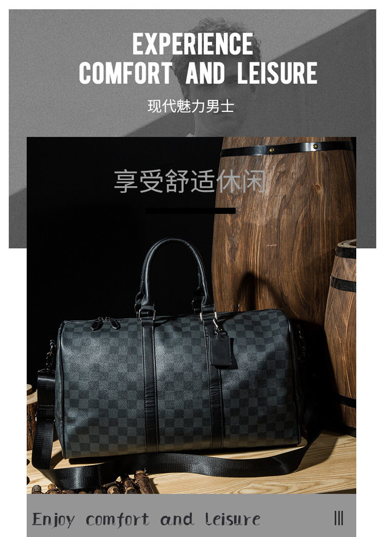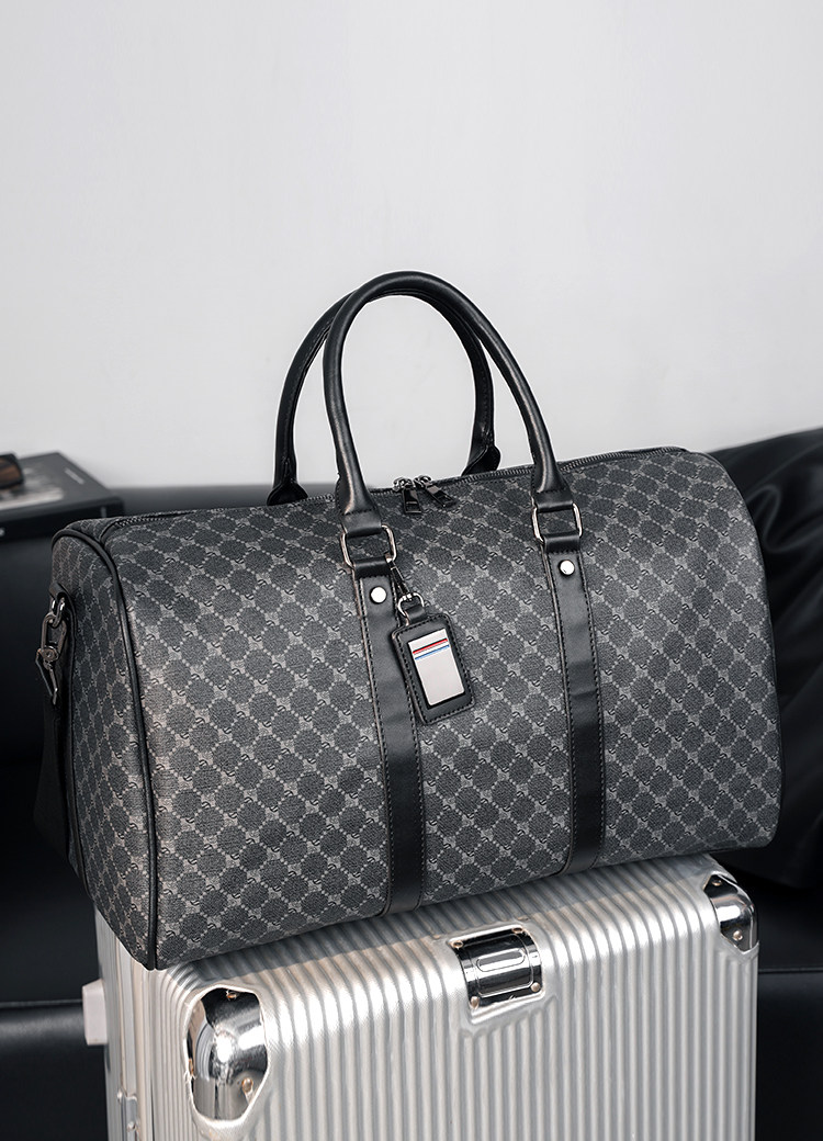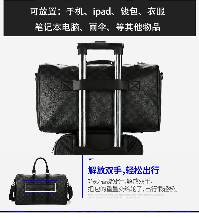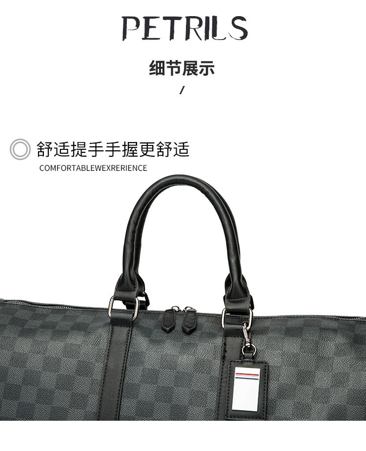 韓版新款男大容量短途旅遊出差行李袋潮流格子手提包單肩包健身包