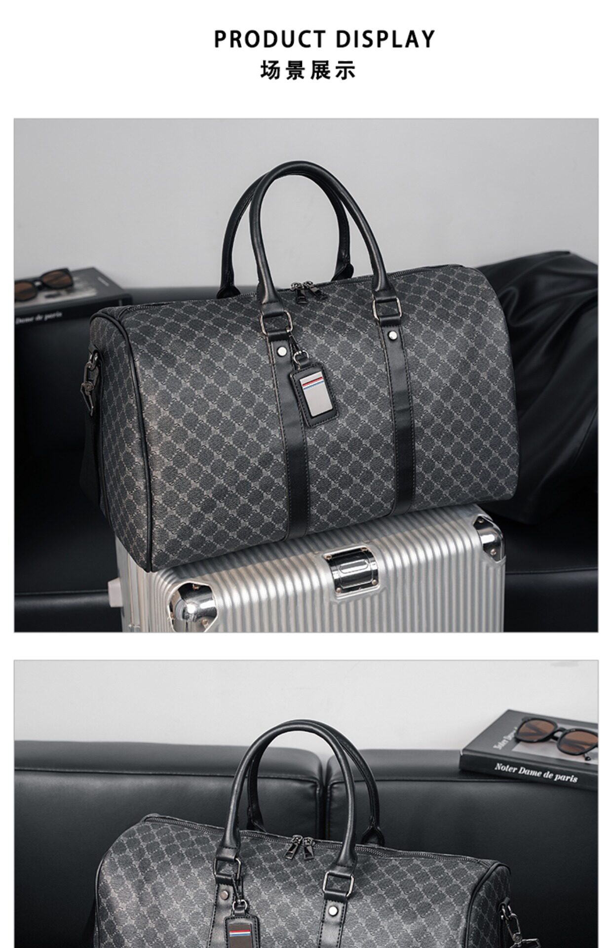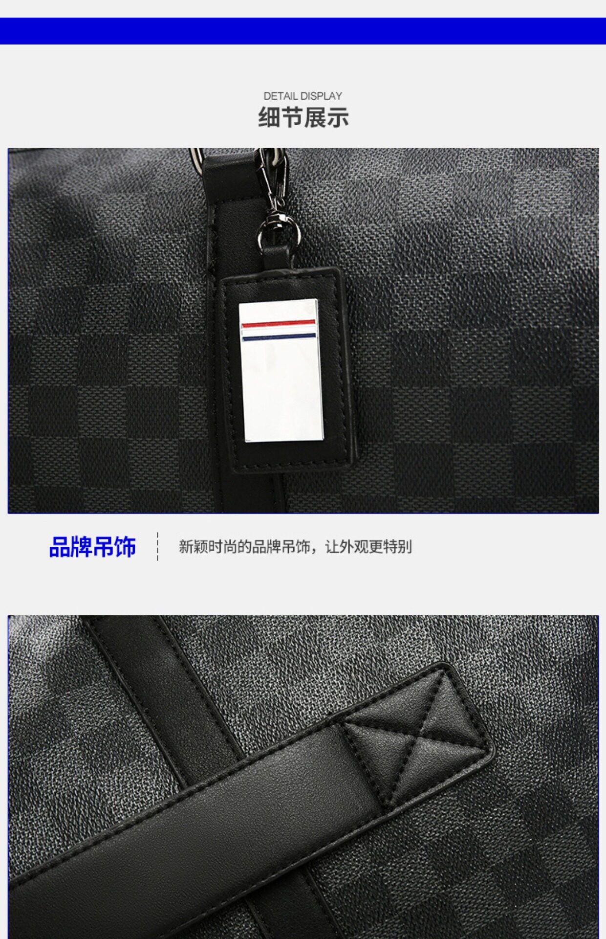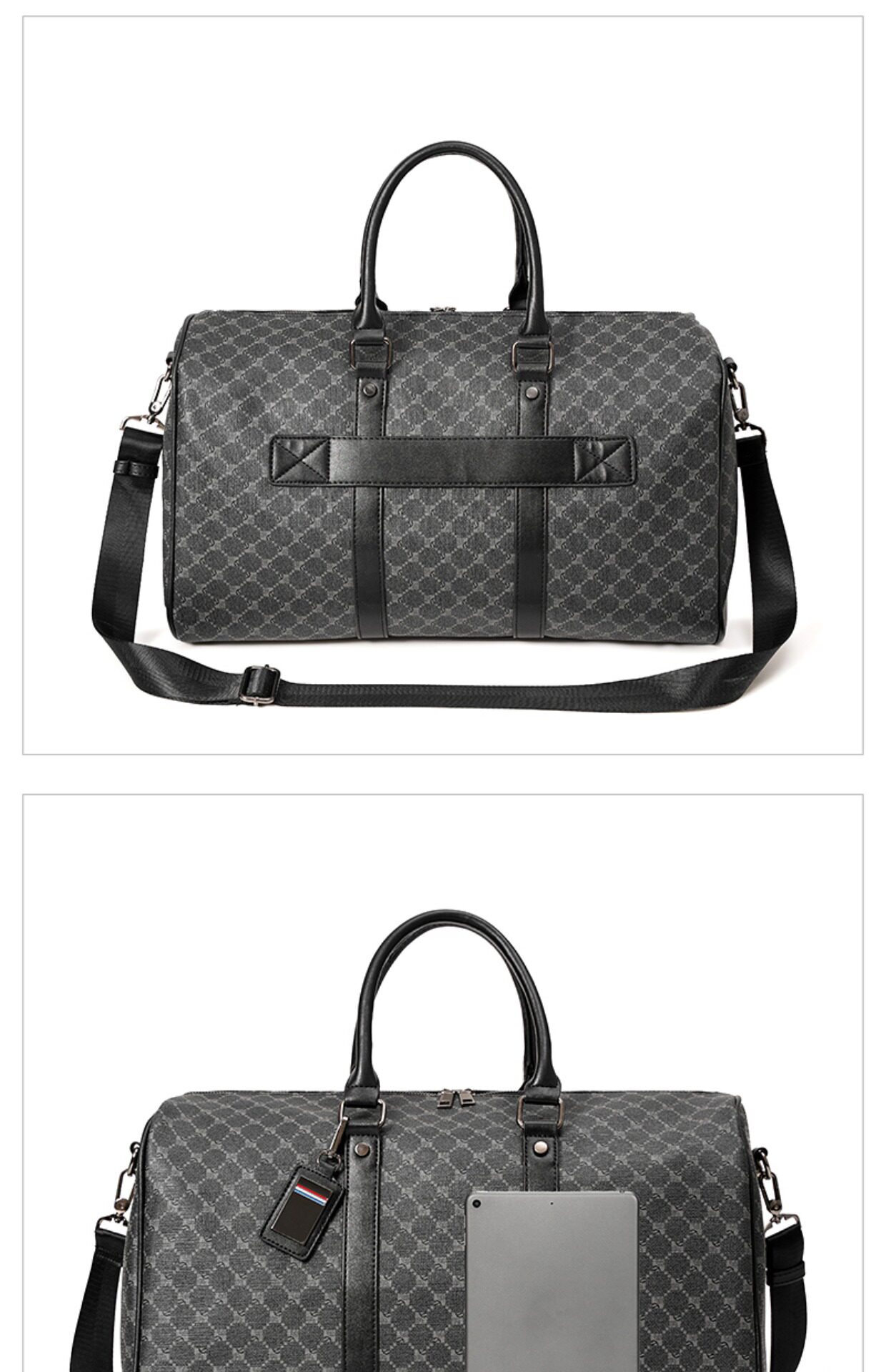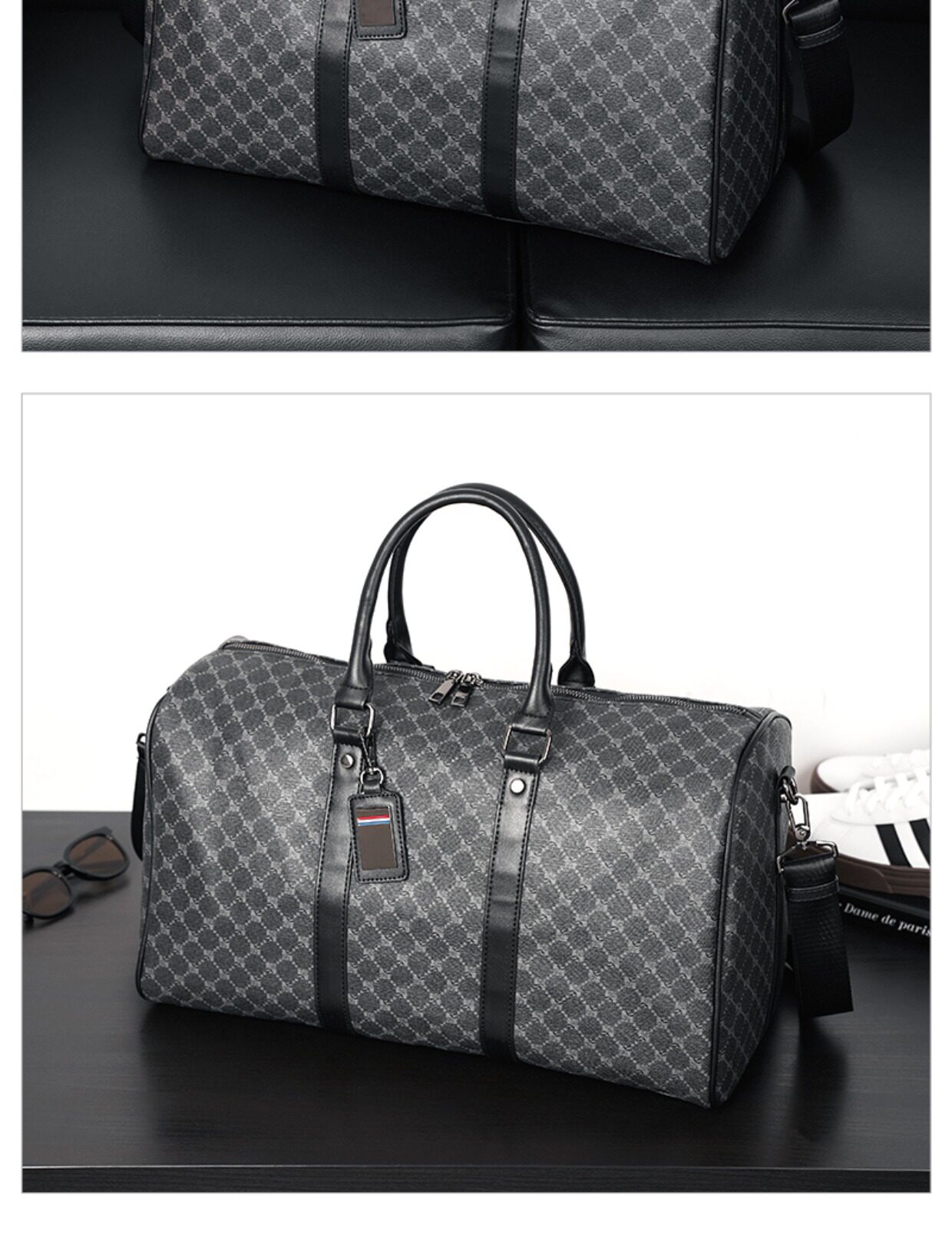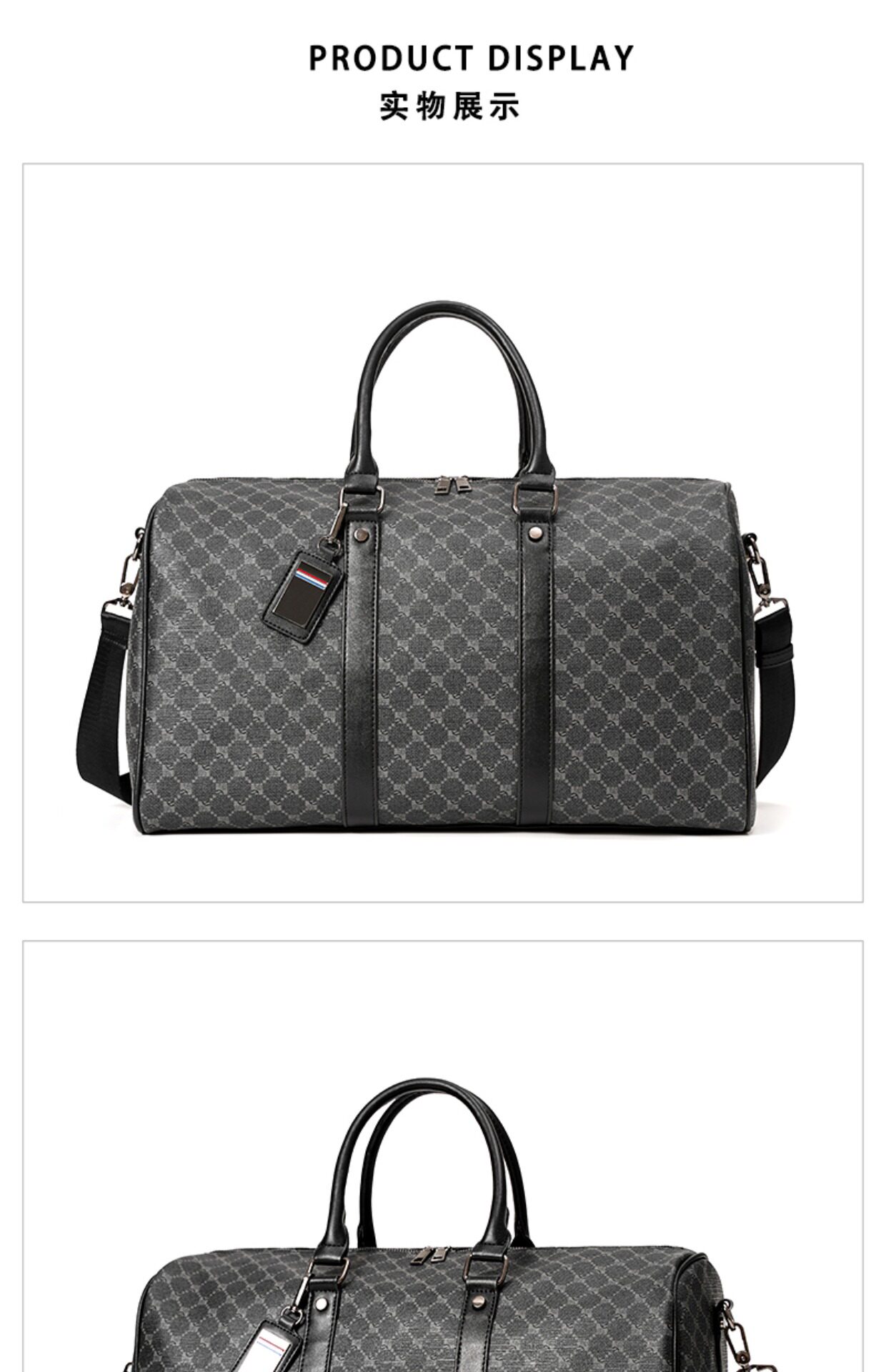 韓版新款男大容量短途旅遊出差行李袋潮流格子手提包單肩包健身包