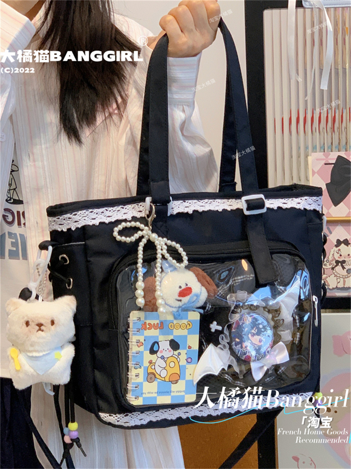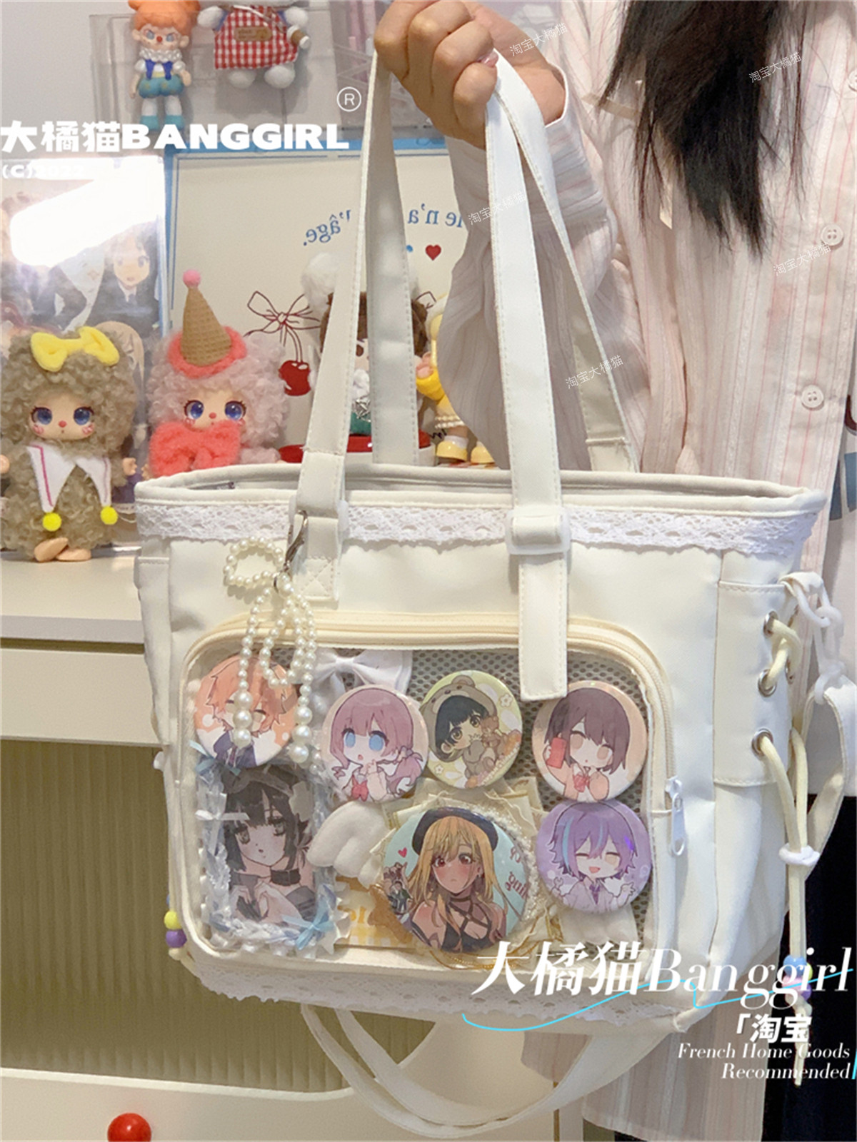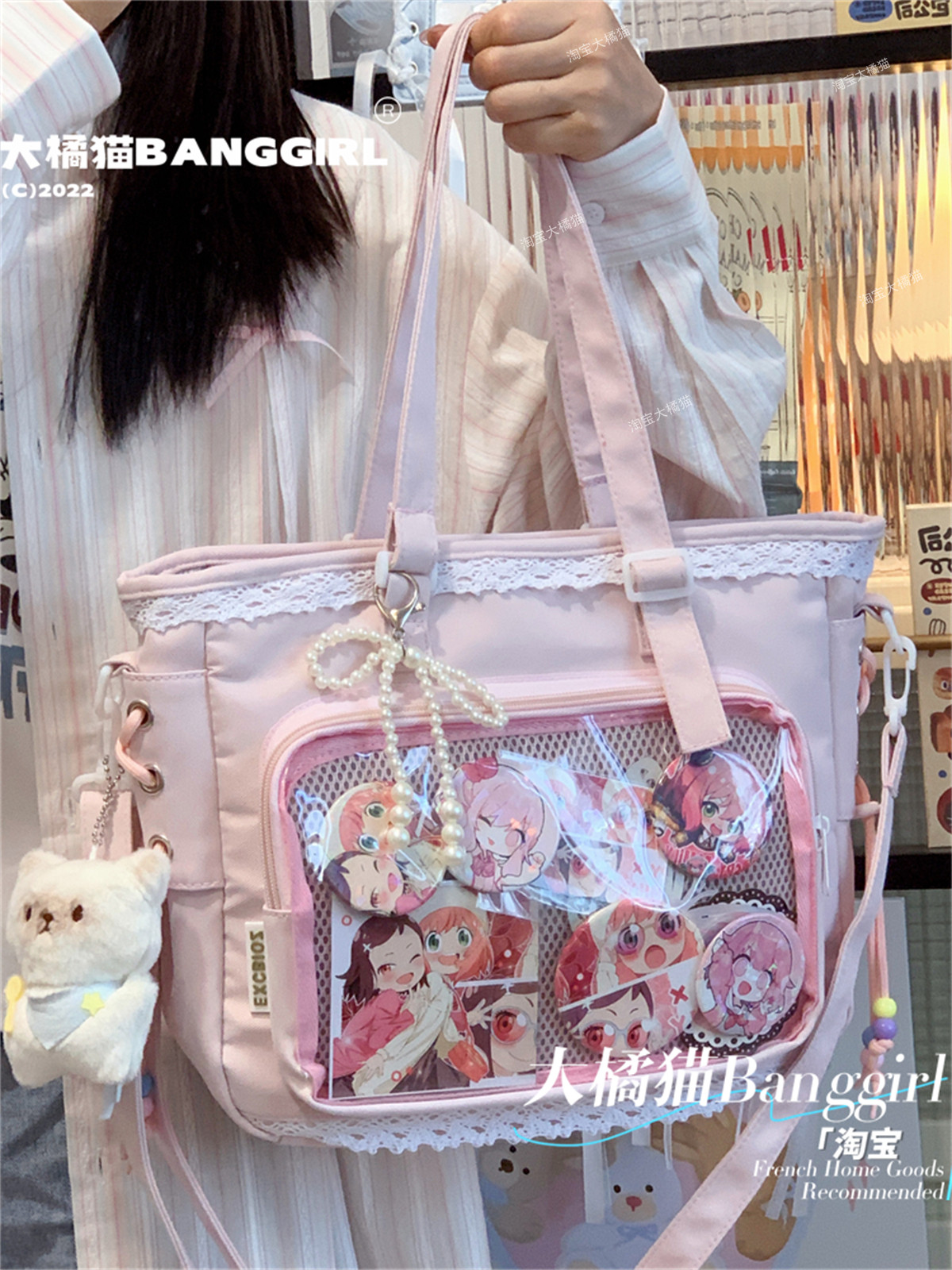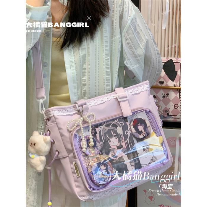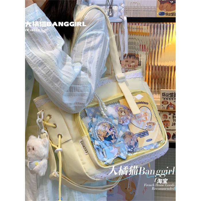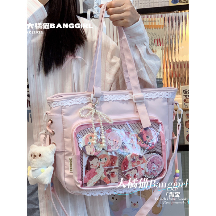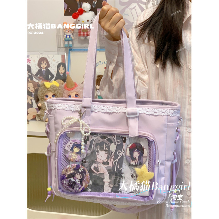 日系透明吧唧手提痛包日常娃包單肩包女學生上課通勤托特包斜後後背包