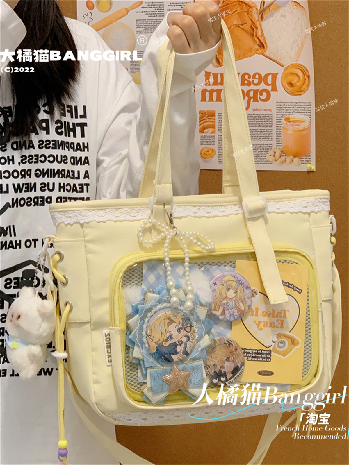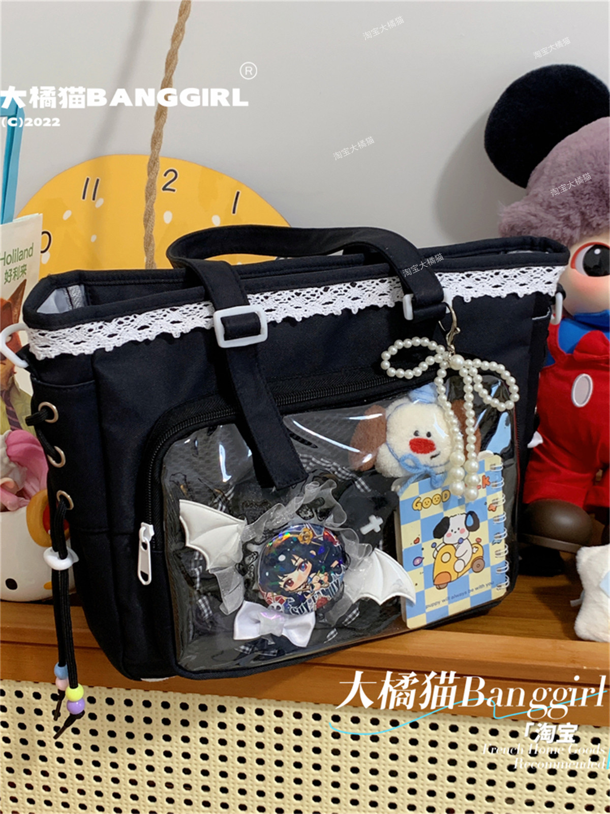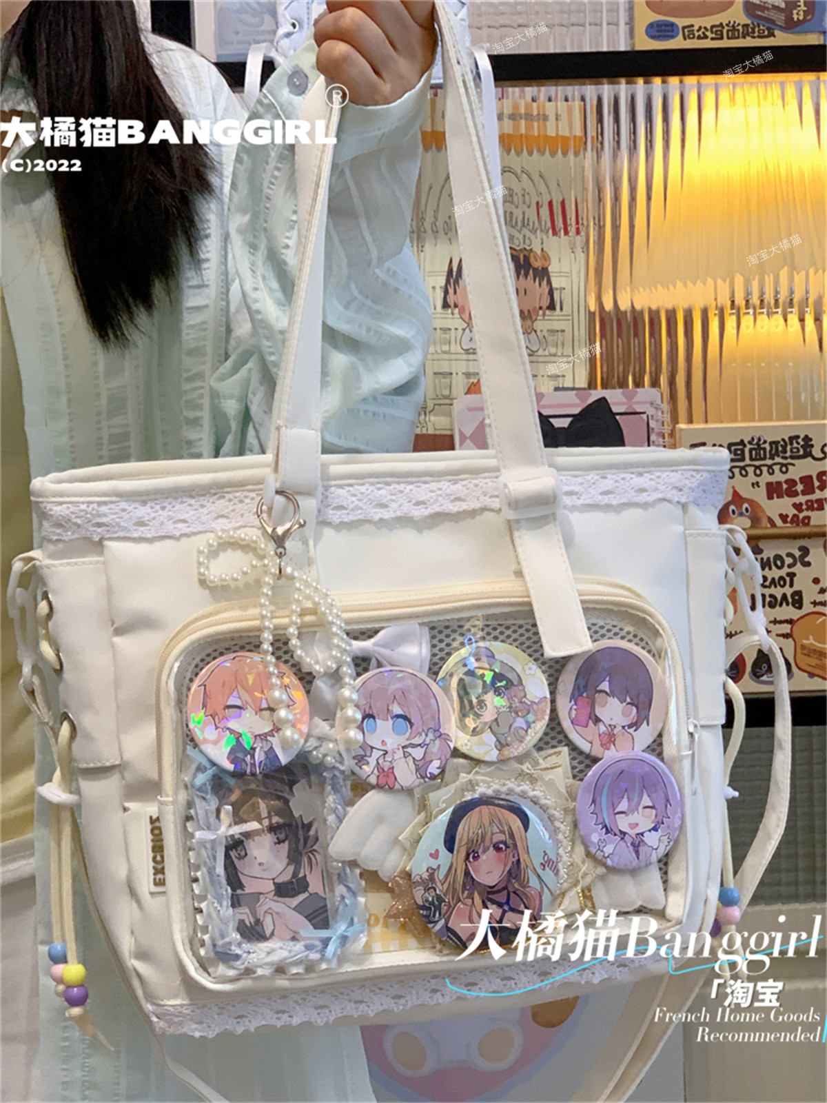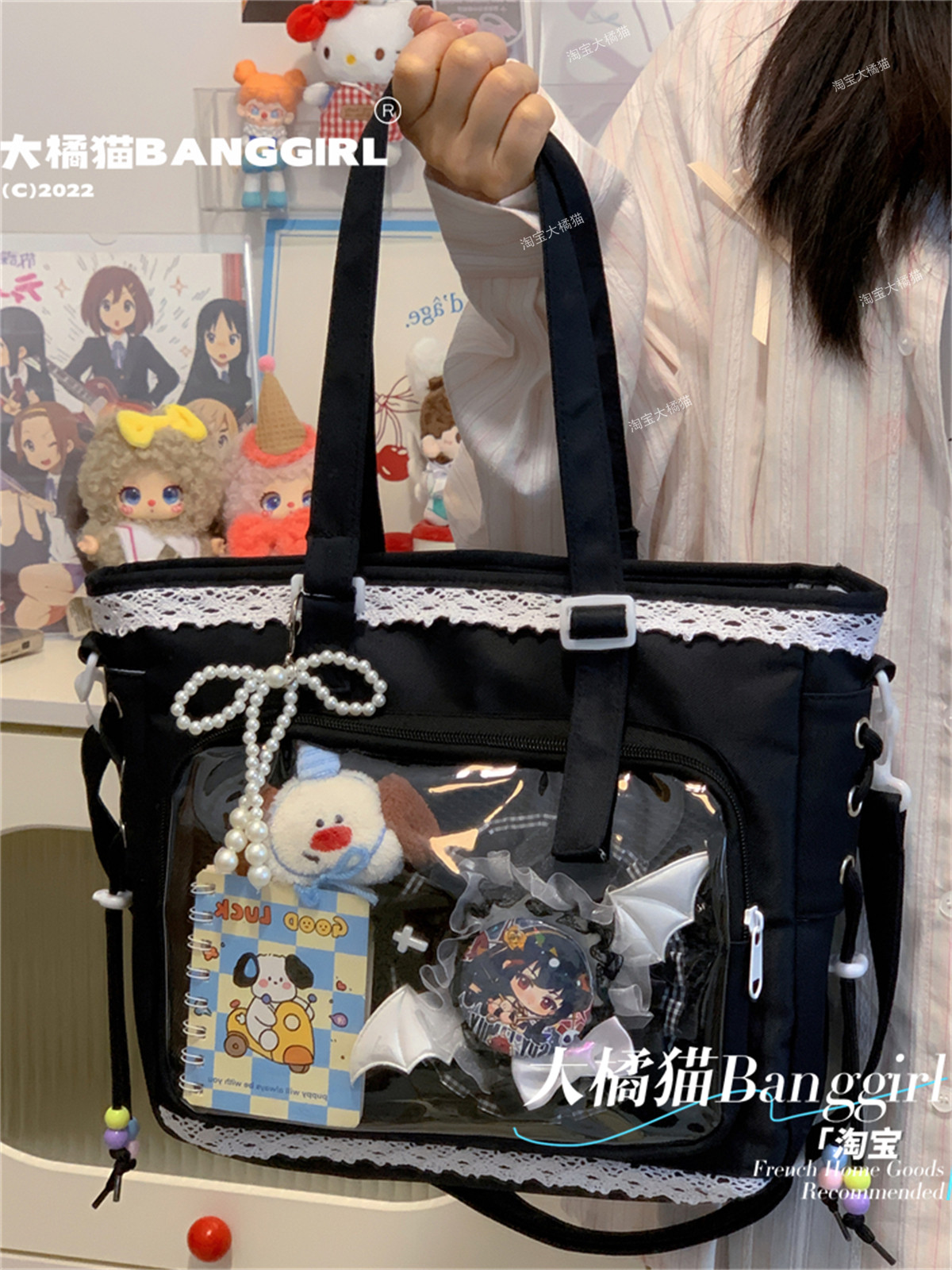 日系透明吧唧手提痛包日常娃包單肩包女學生上課通勤托特包斜後後背包