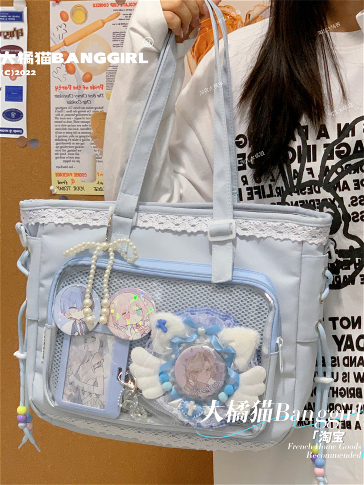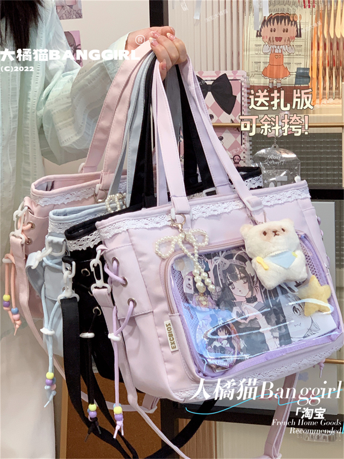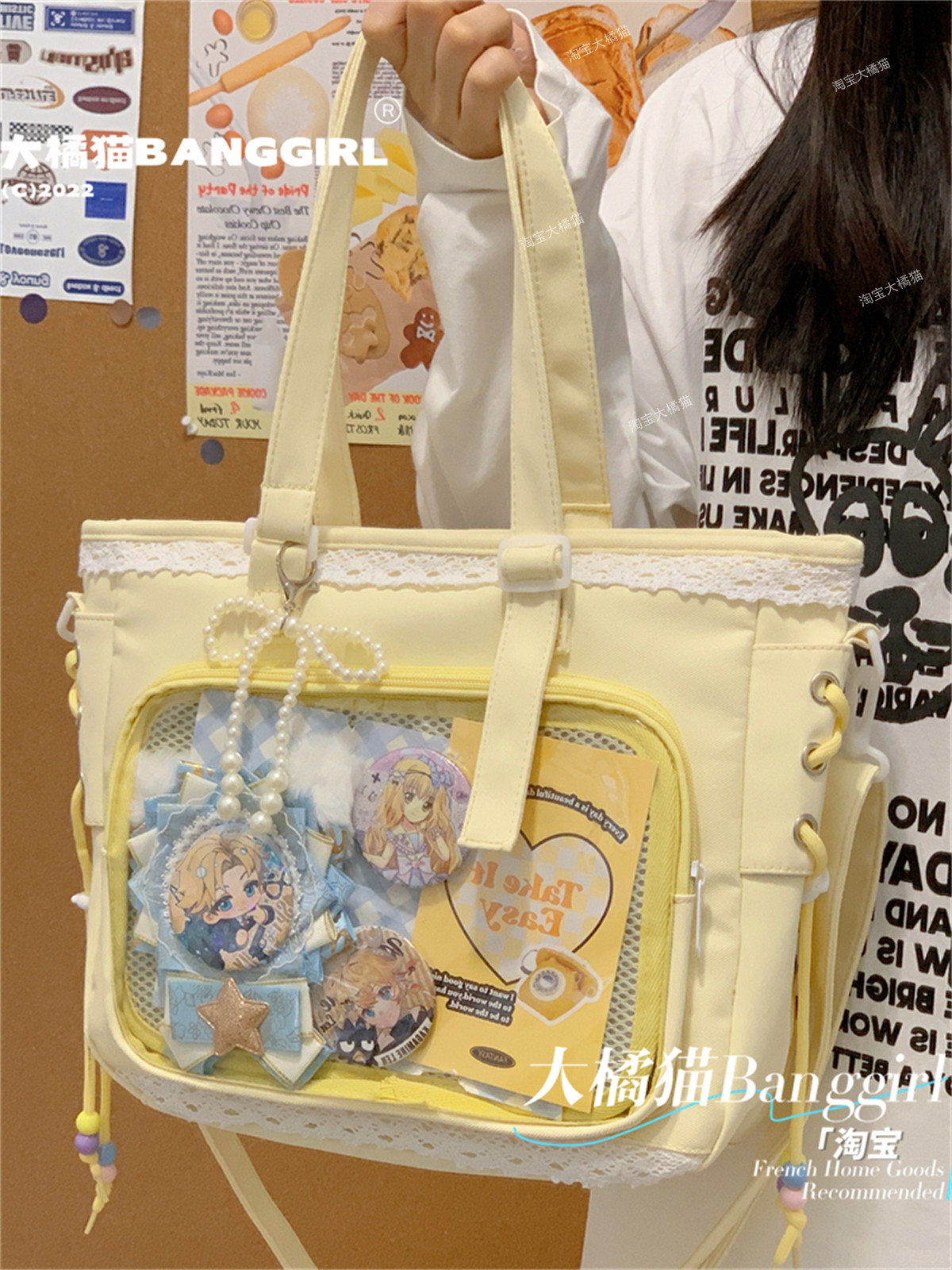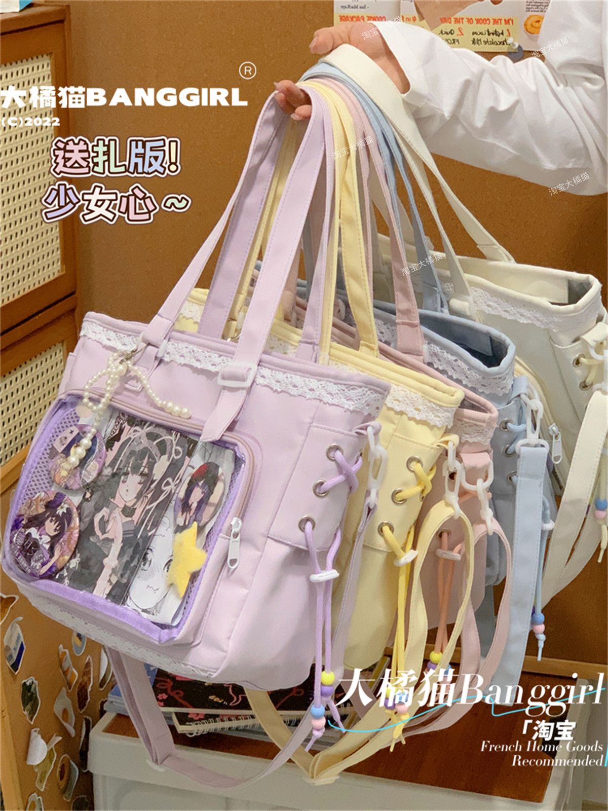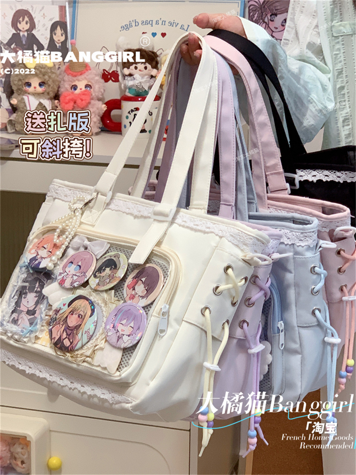 日系透明吧唧手提痛包日常娃包單肩包女學生上課通勤托特包斜後後背包