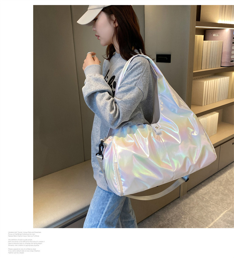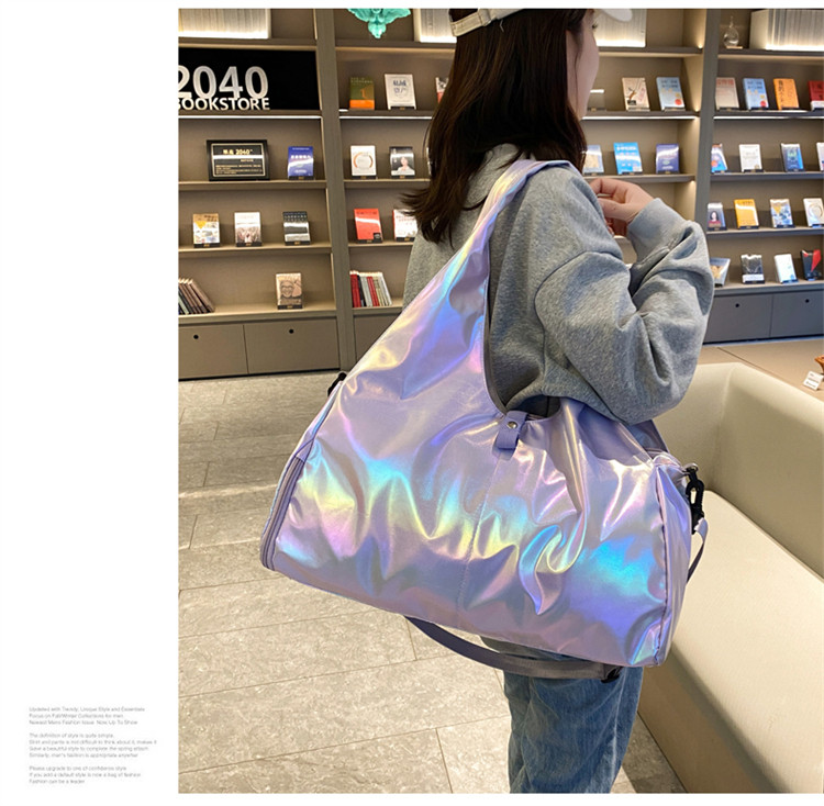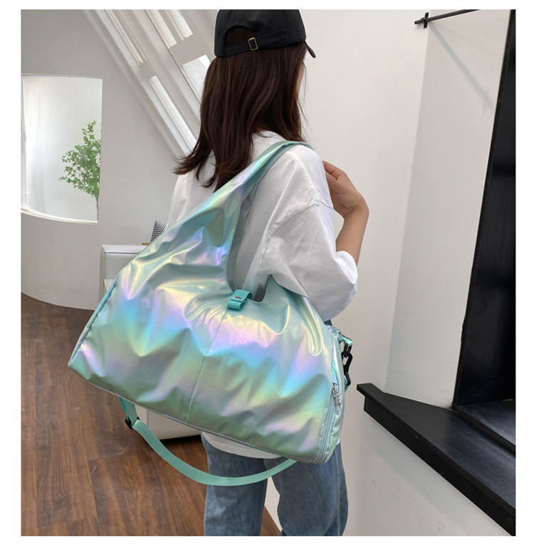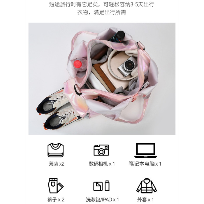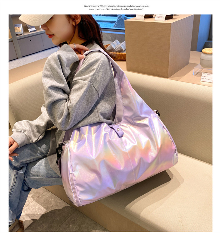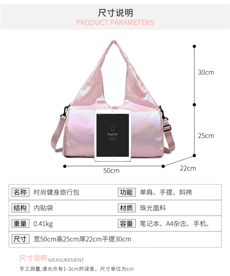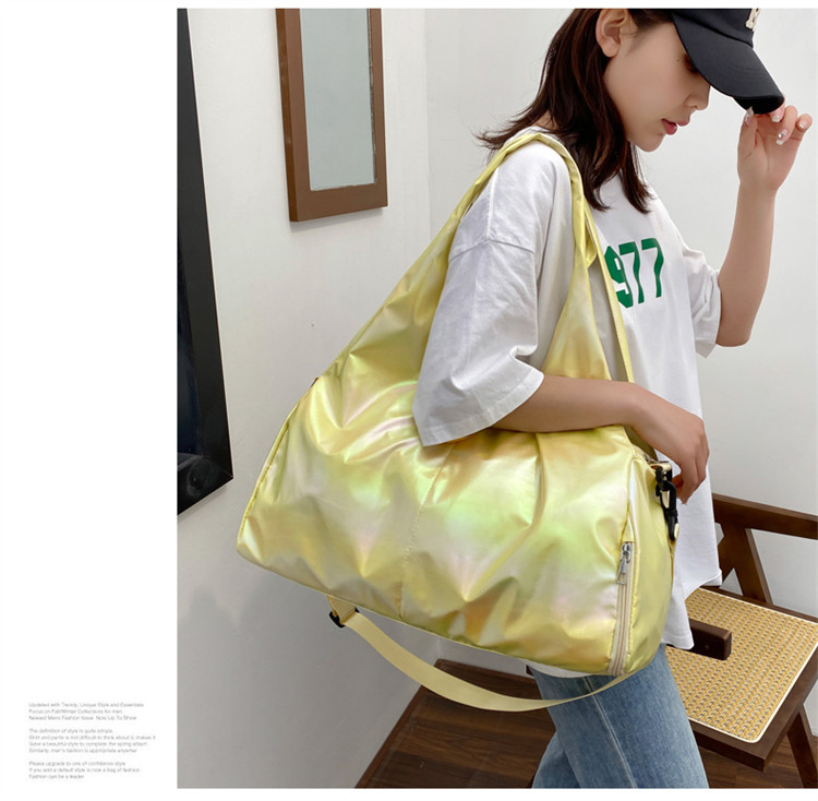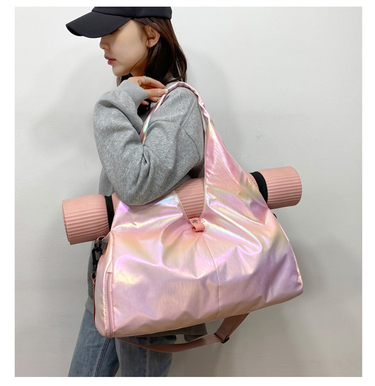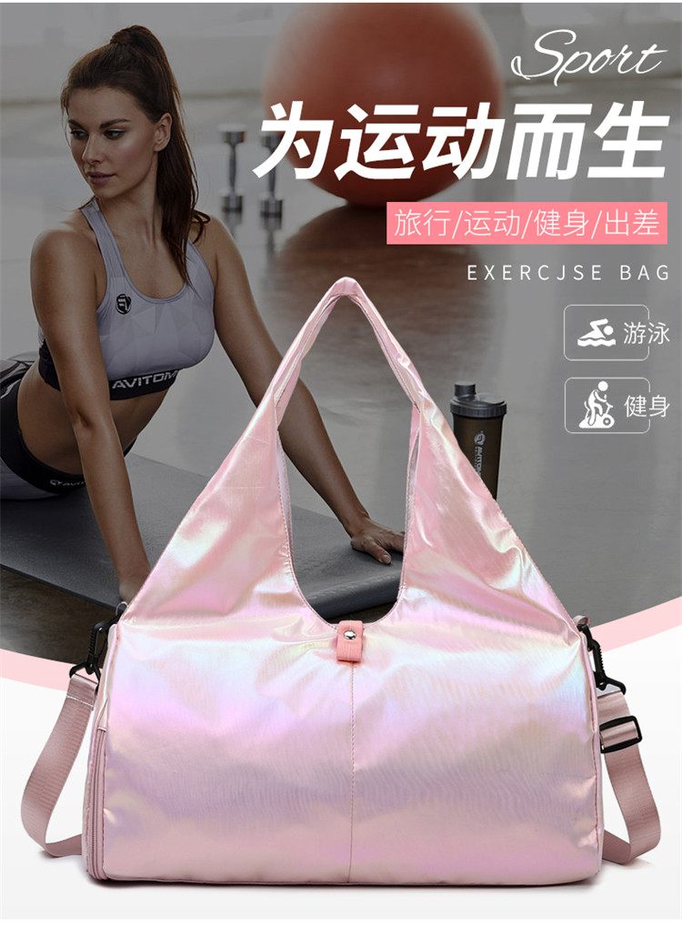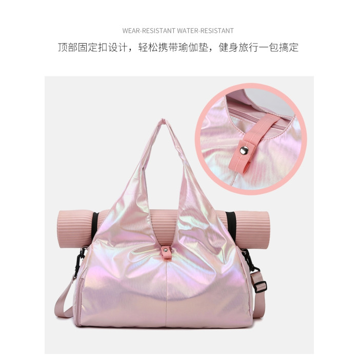 亮面運動健身包女乾濕分離大容量輕便時尚手提單肩瑜珈訓練防水袋
