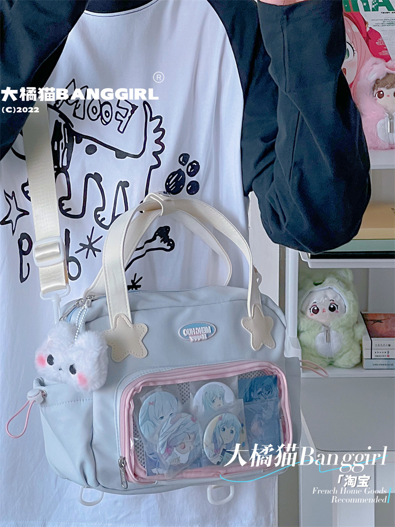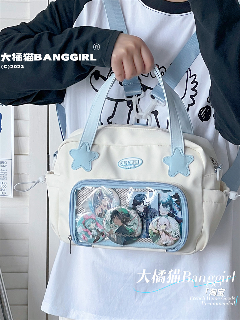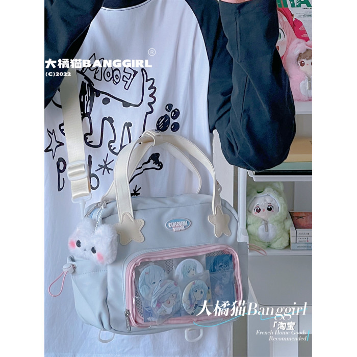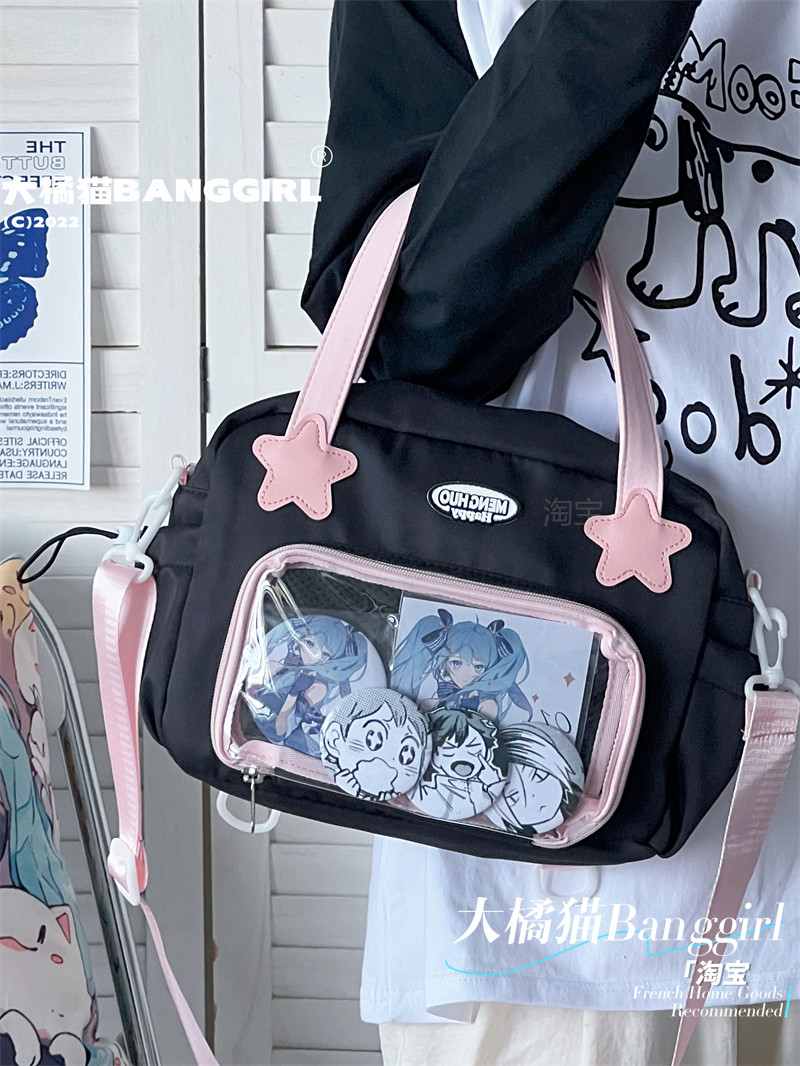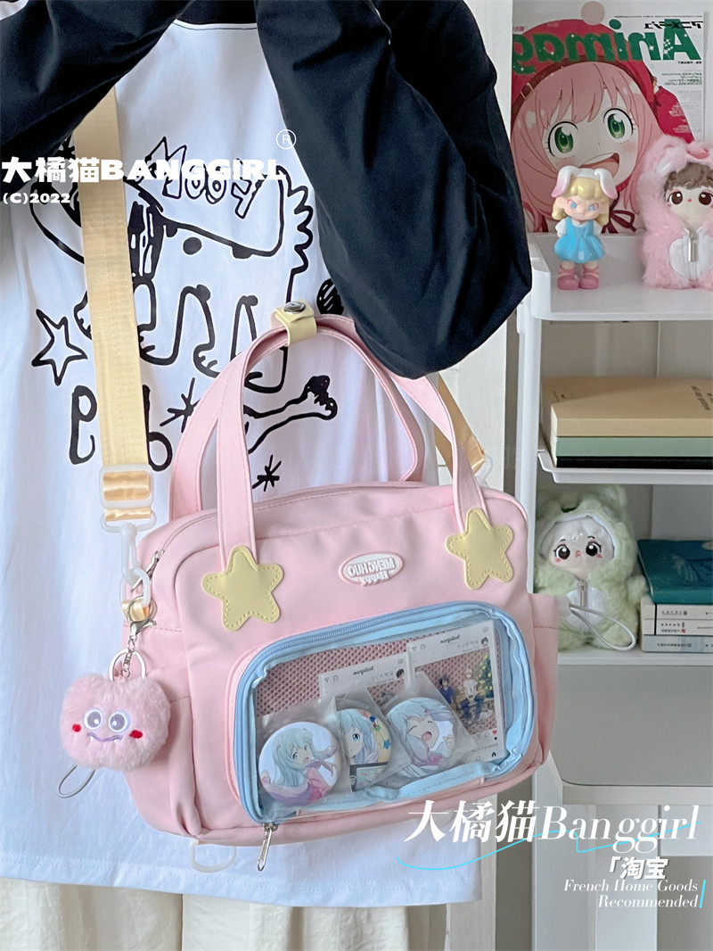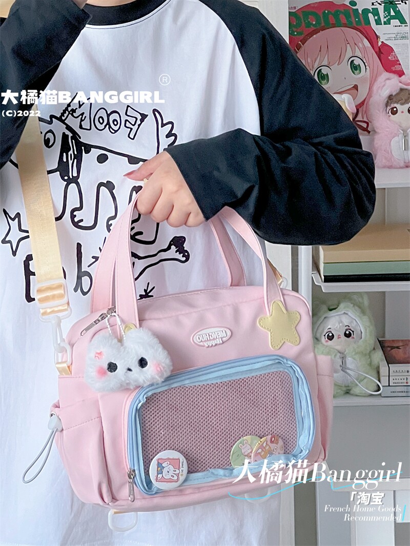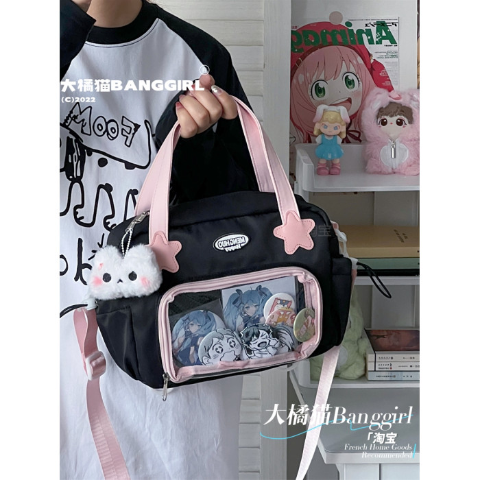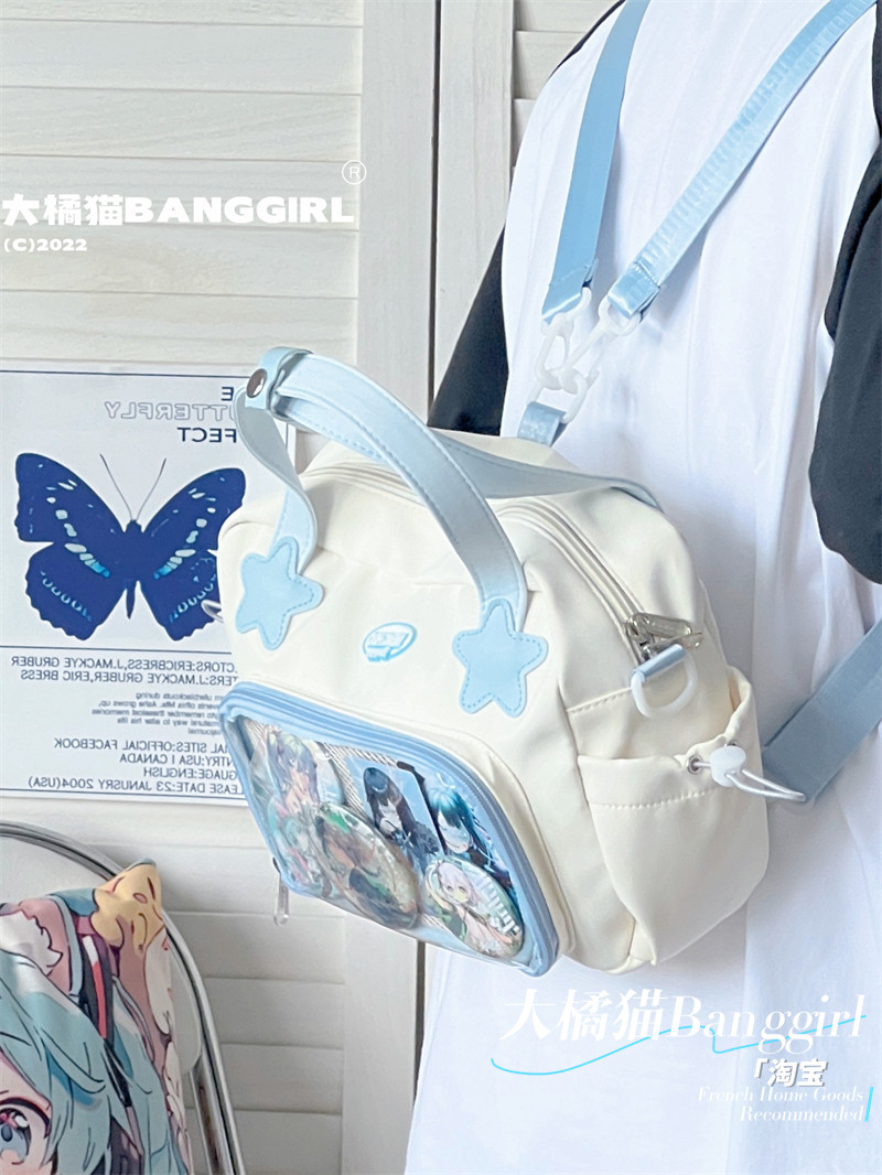 原創百搭日常漫展透明雙肩斜背二次元吧唧大容量校園穀子痛包包女