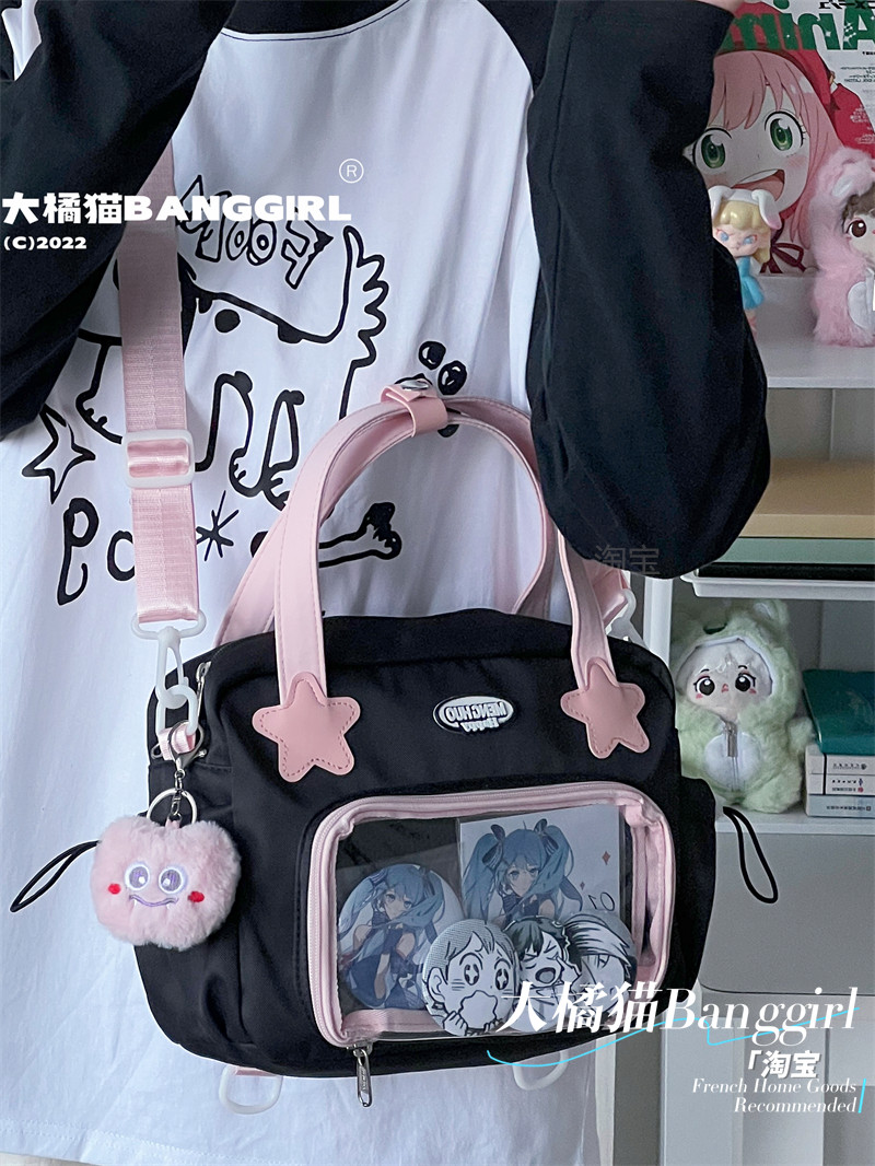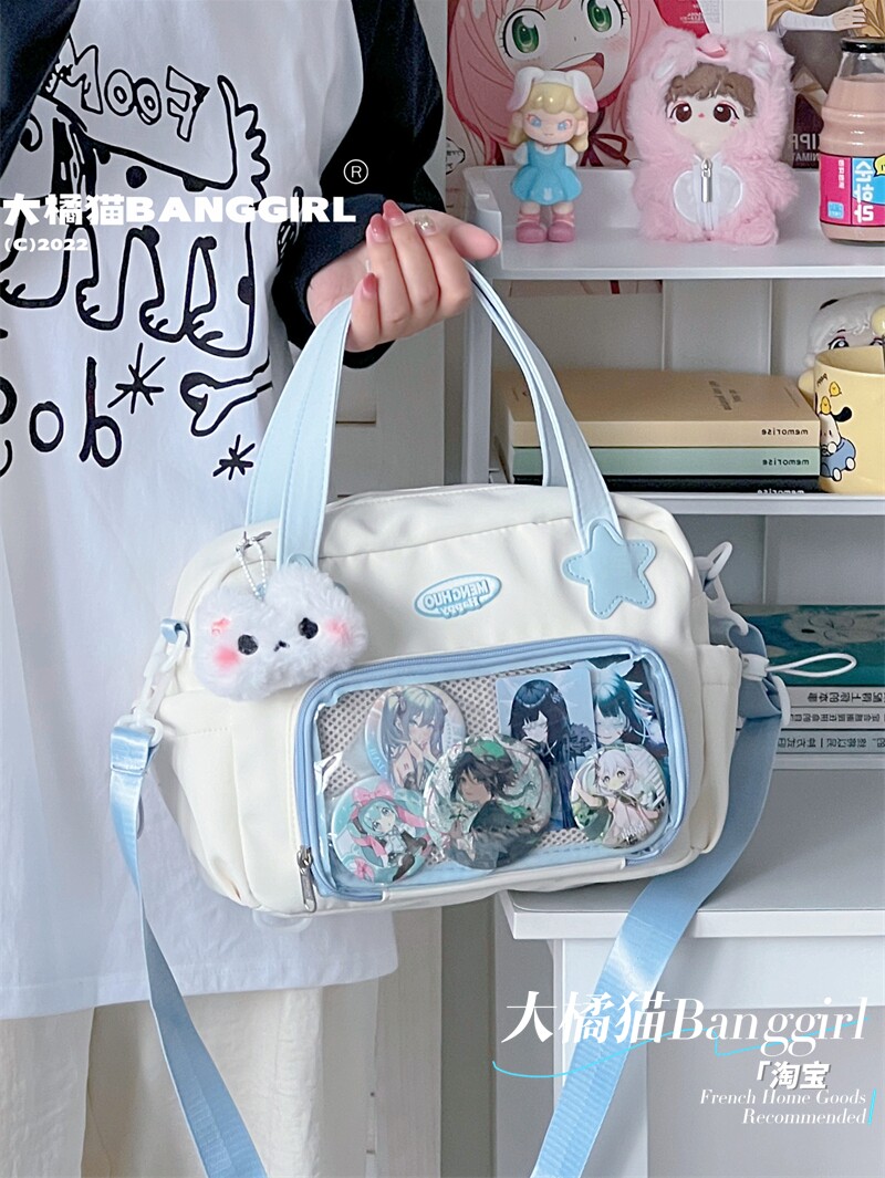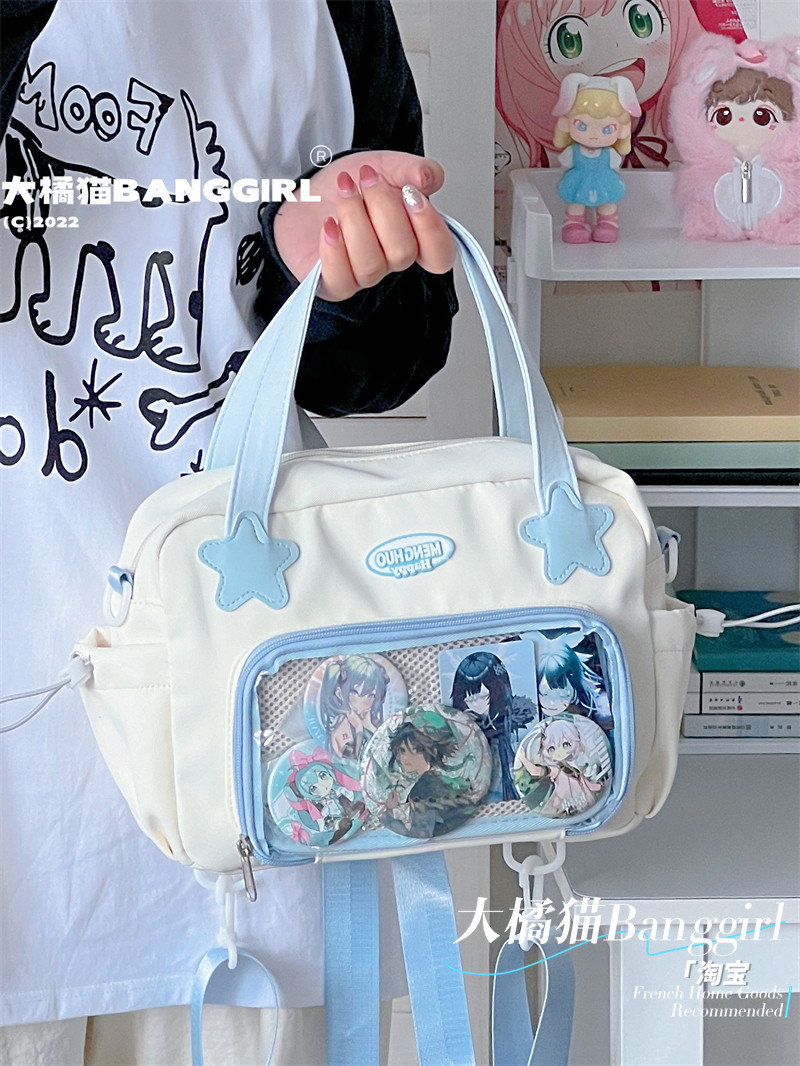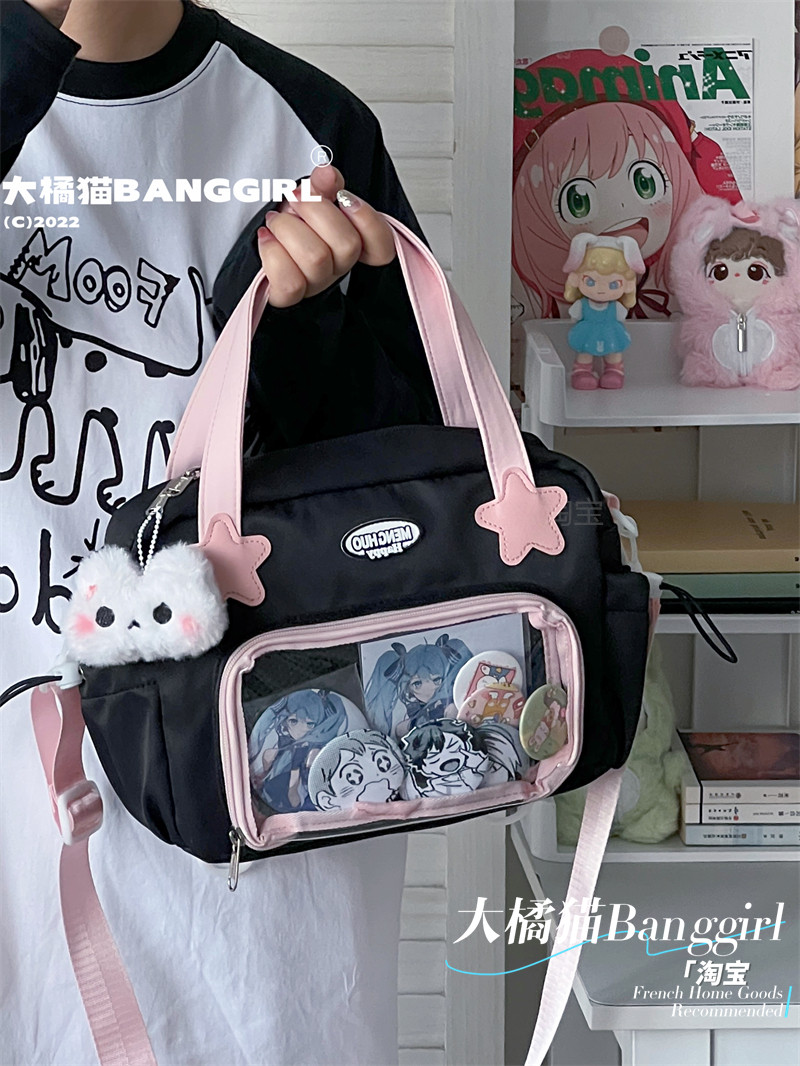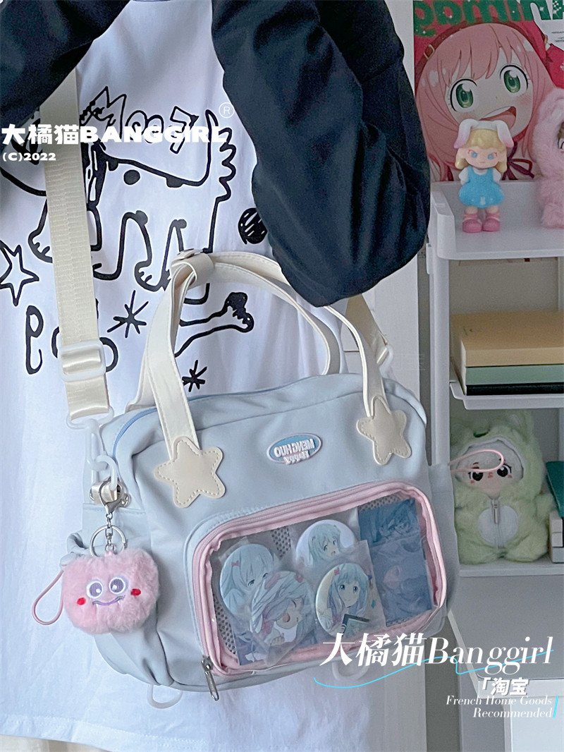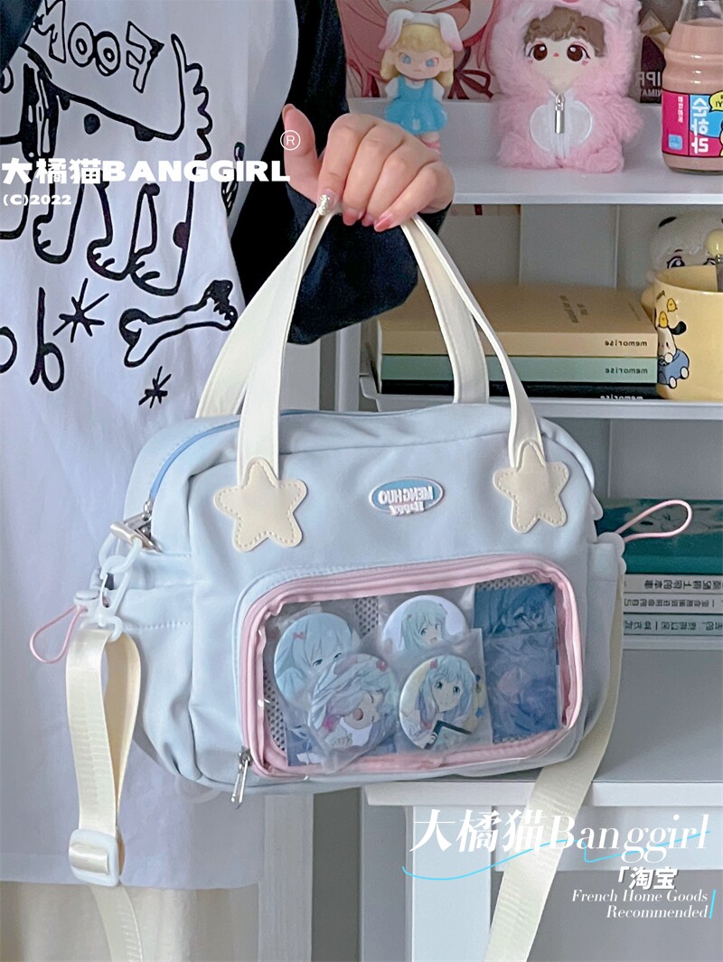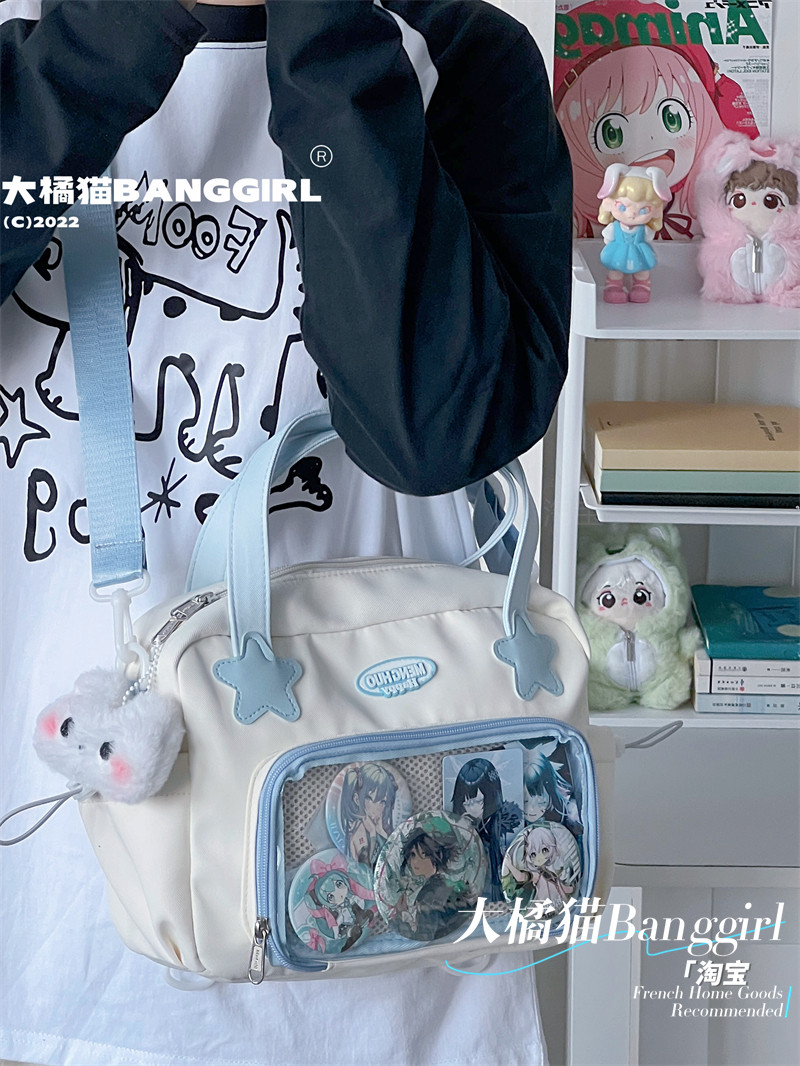 原創百搭日常漫展透明雙肩斜背二次元吧唧大容量校園穀子痛包包女