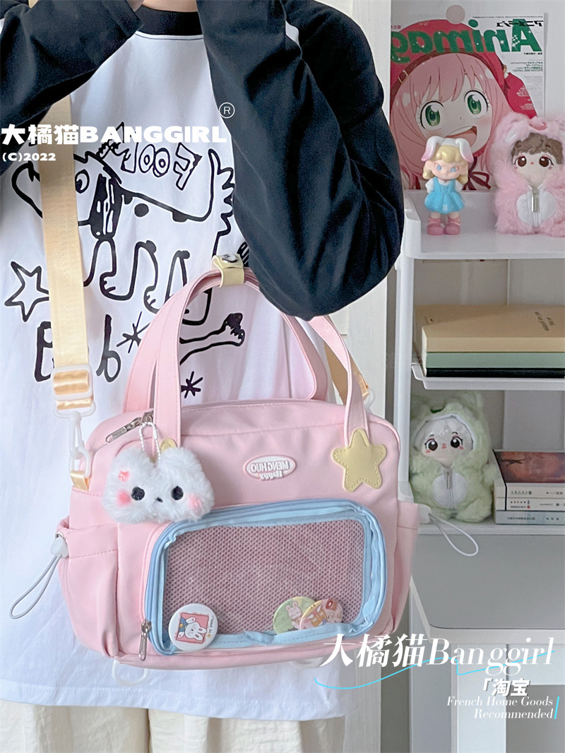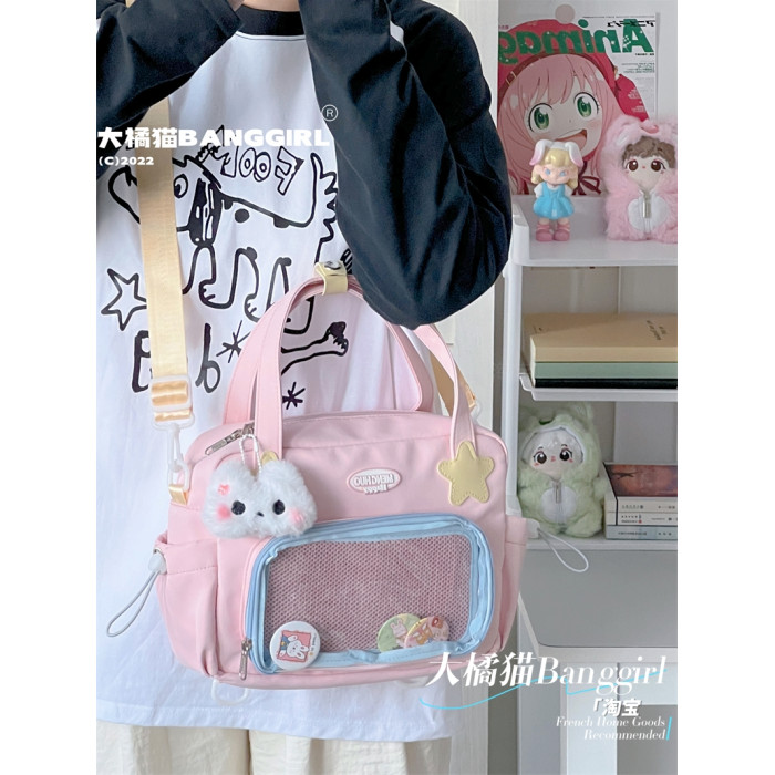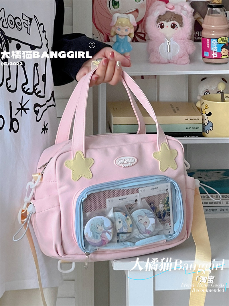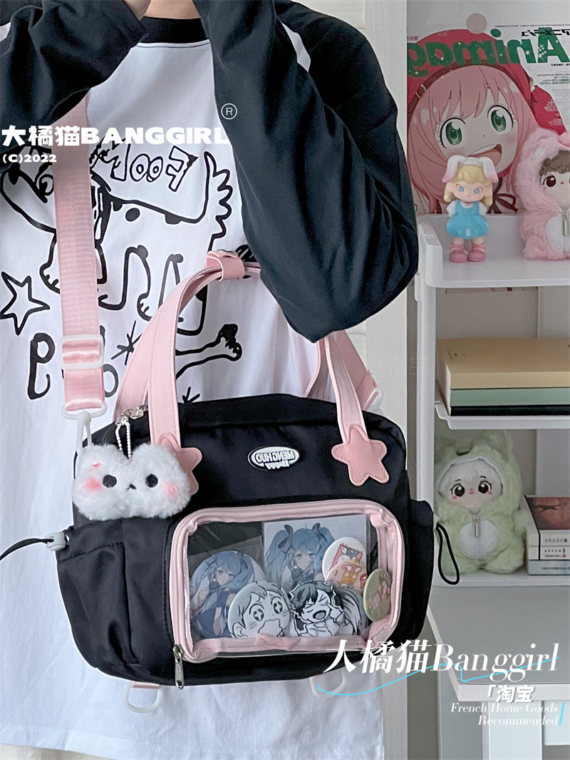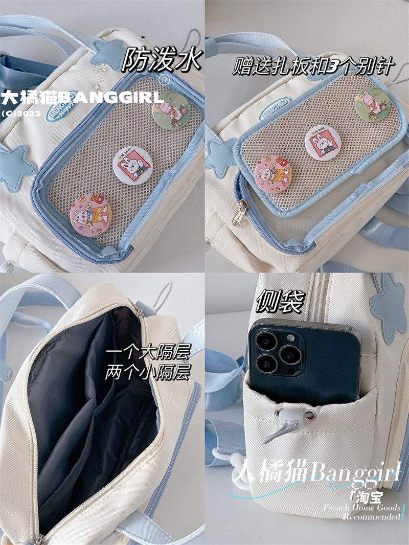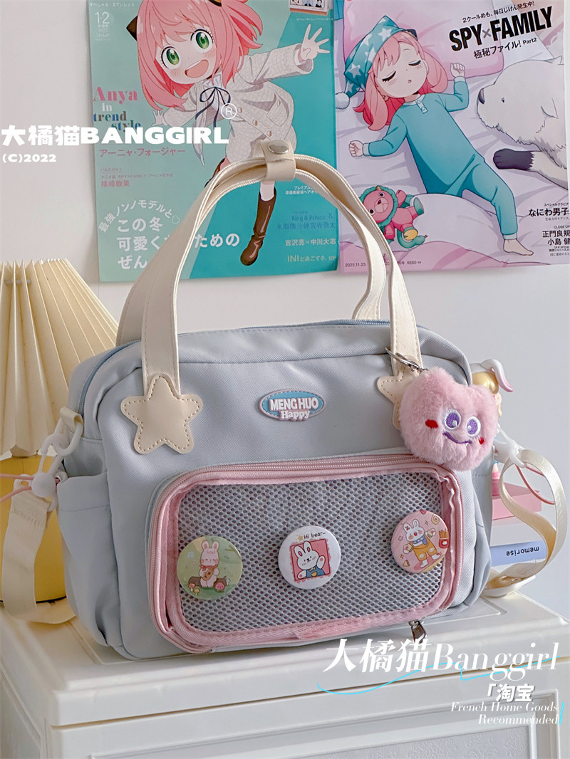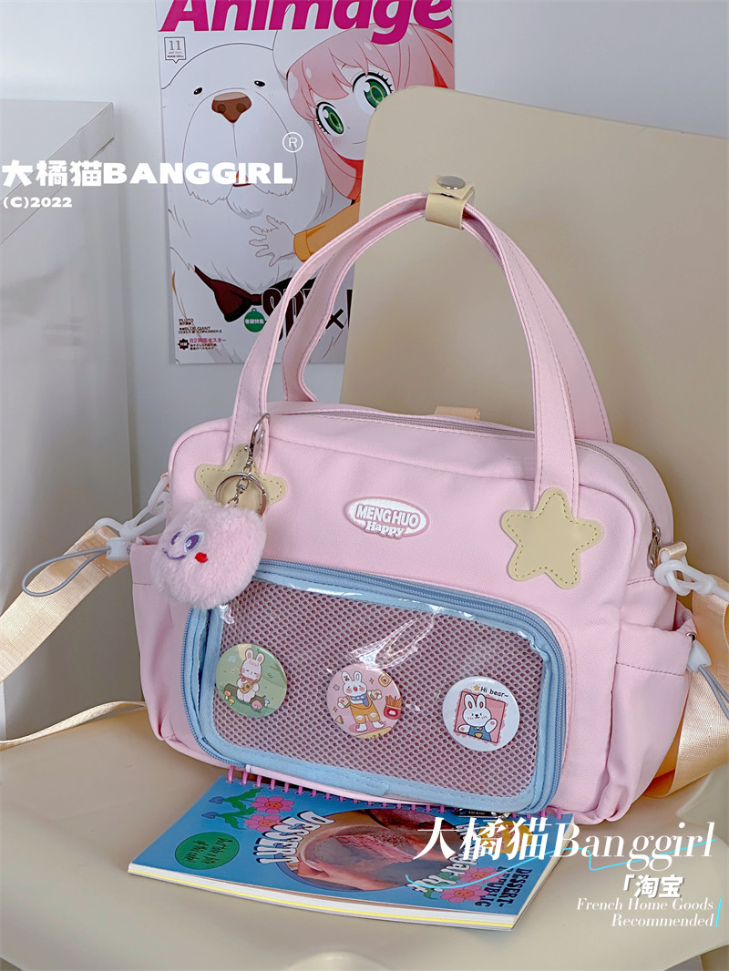 原創百搭日常漫展透明雙肩斜背二次元吧唧大容量校園穀子痛包包女
