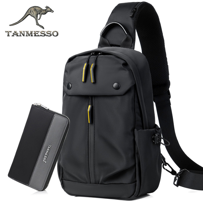 tanmesso胸包男士斜後後背包牛津布時尚韓版胸前小後後背包單肩包腰包潮