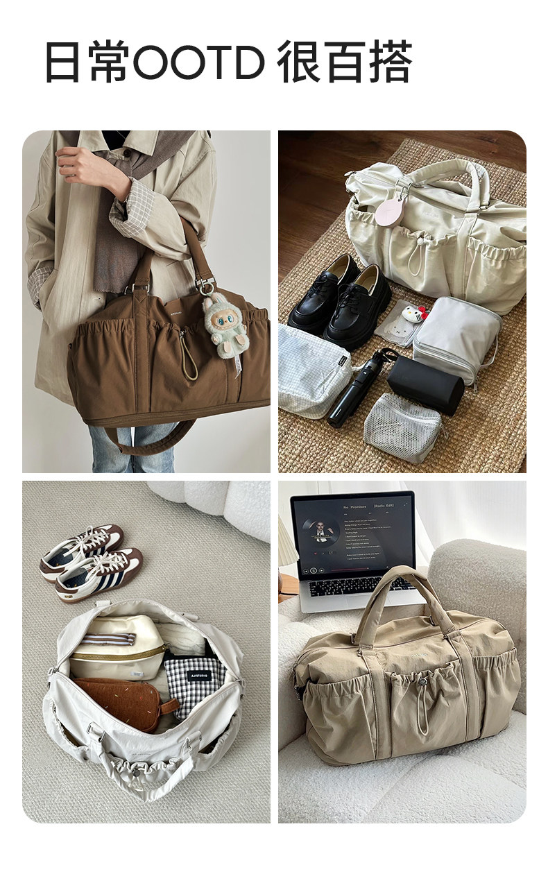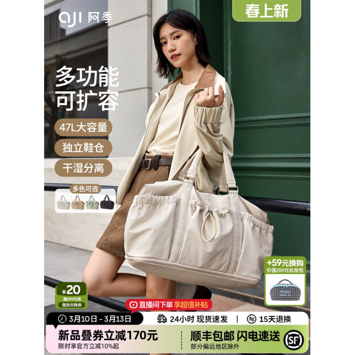 阿季新款輕便大容量旅行包女手提旅行袋運動健身包出差登機行李袋
