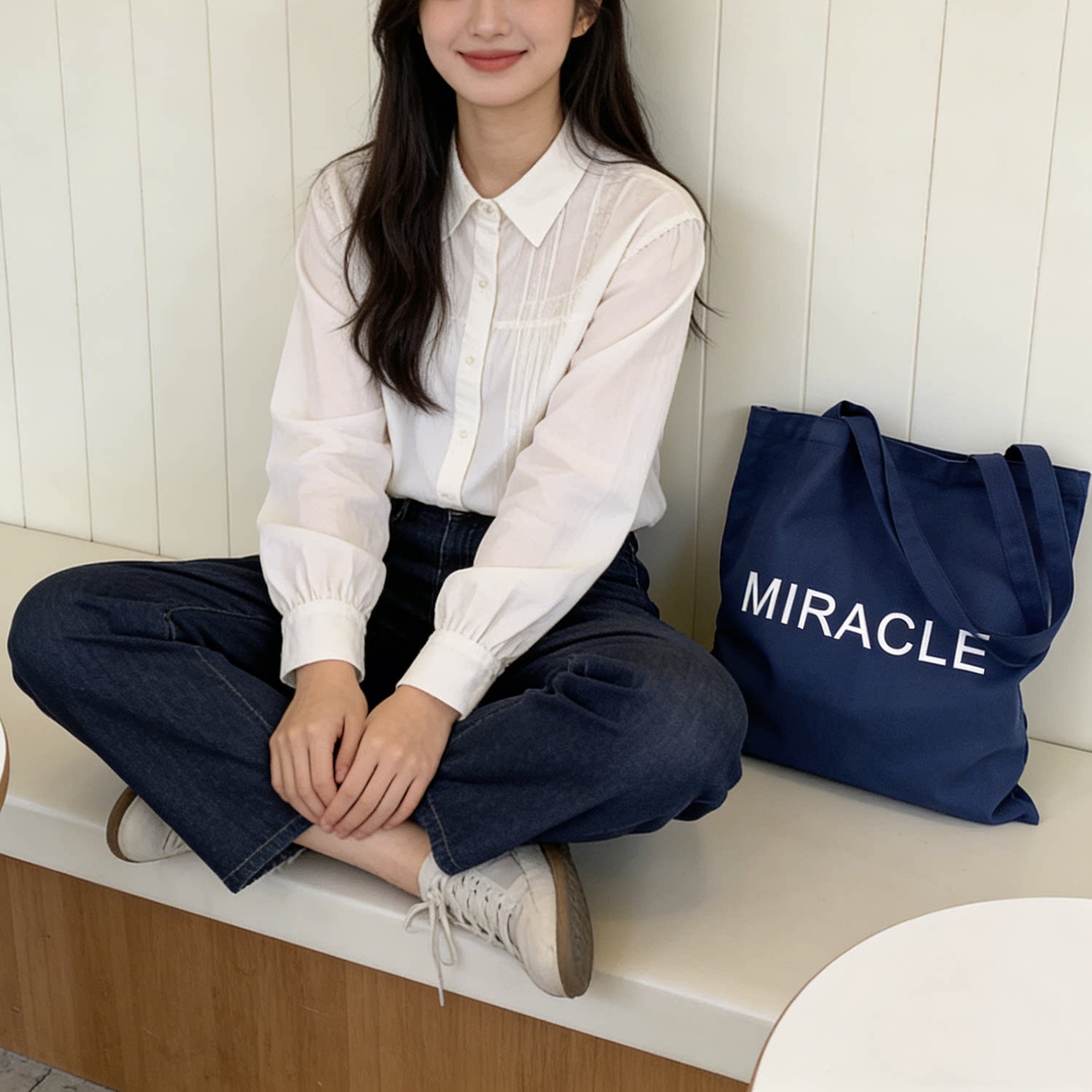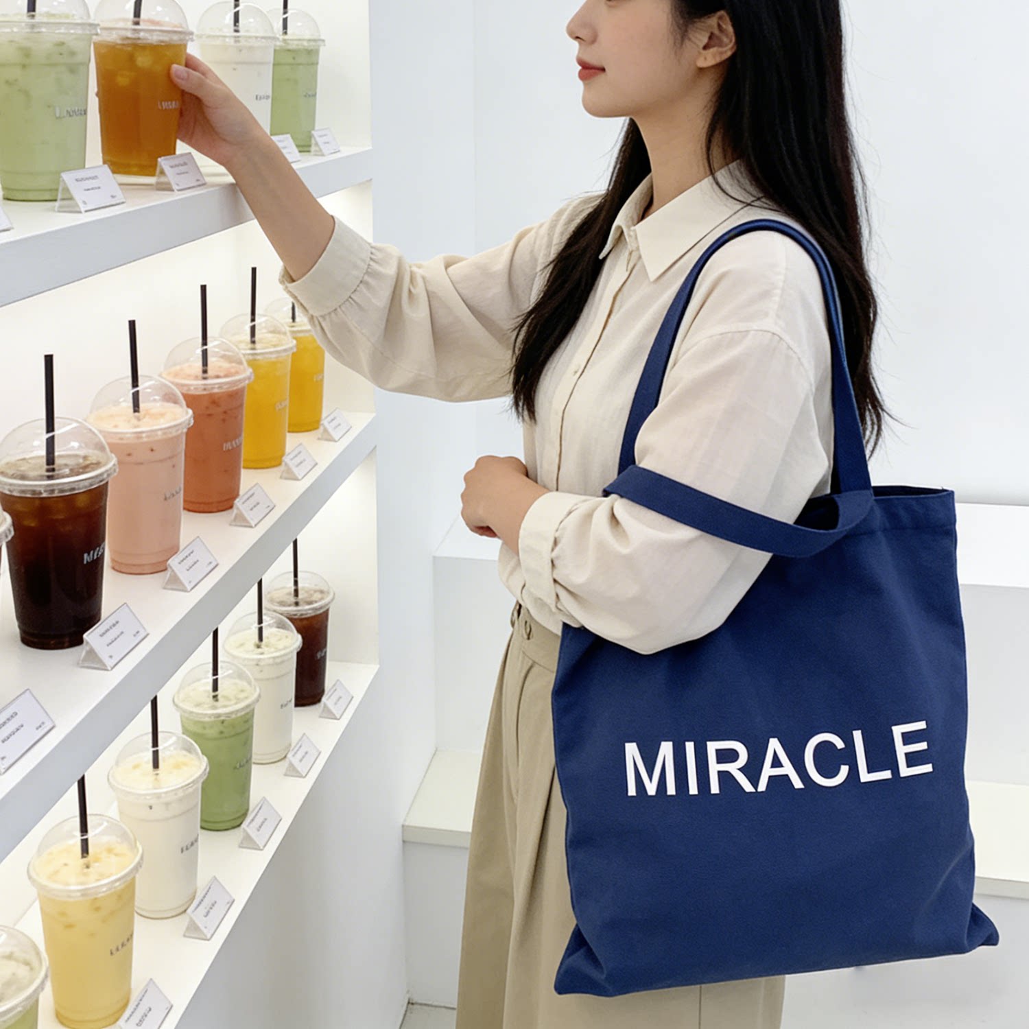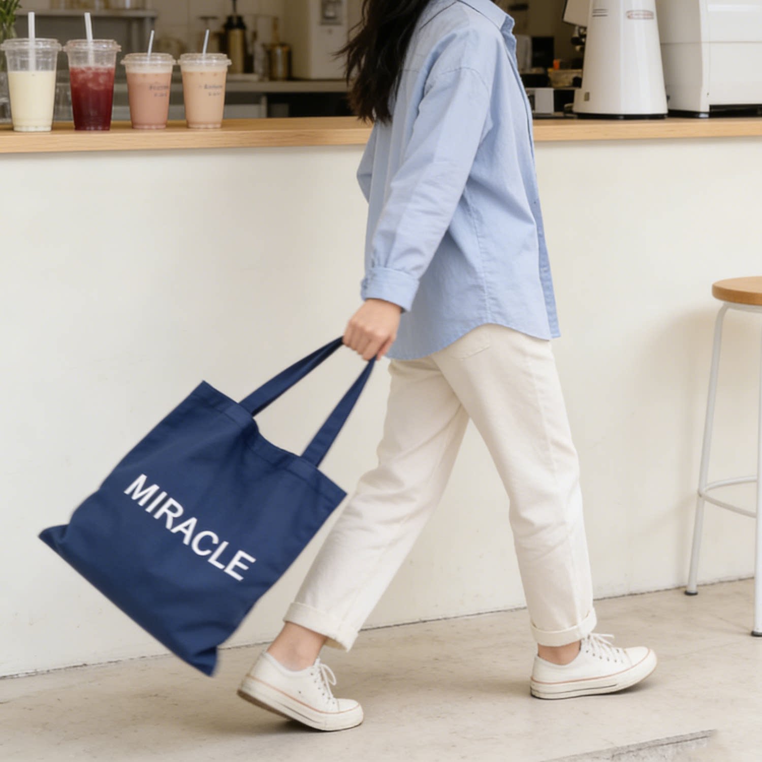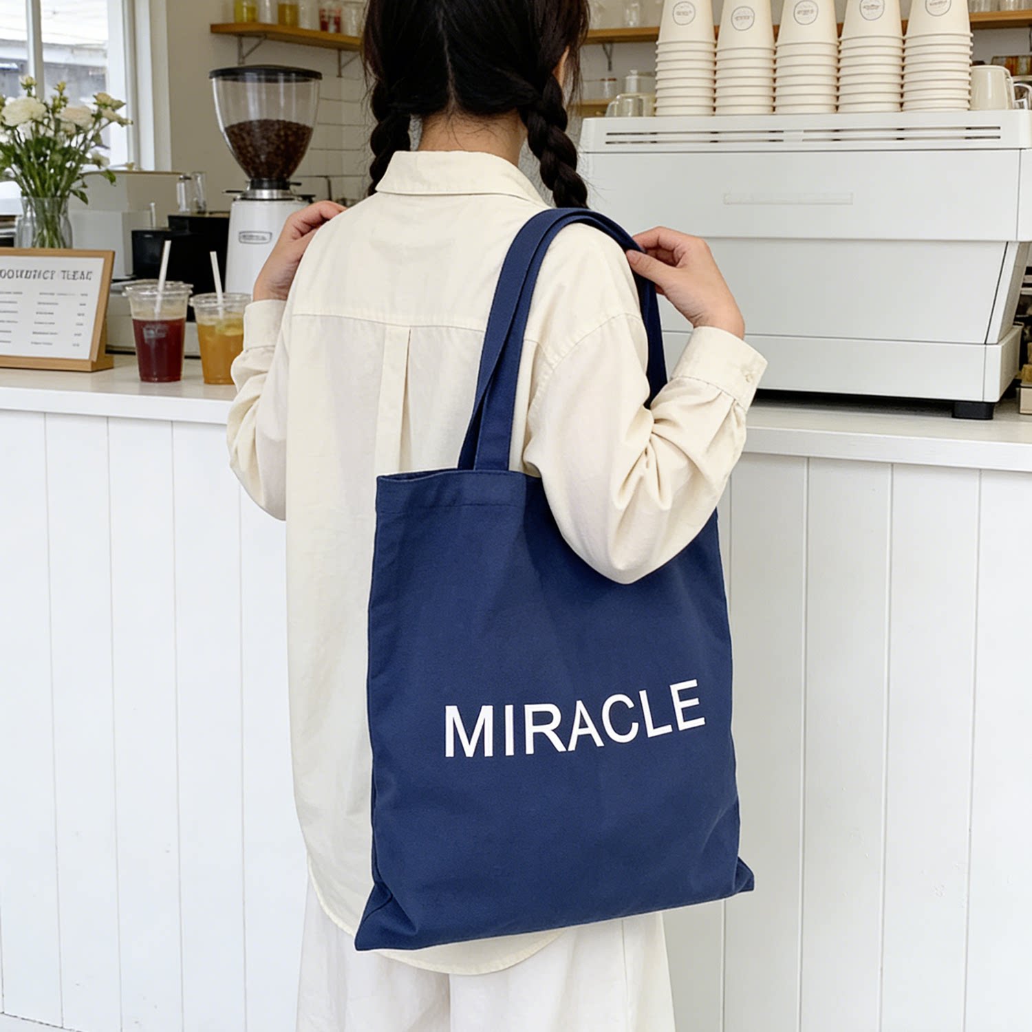藏藍色字母帆布包女大容量單肩包手提托特包通勤包學生補習裝書包