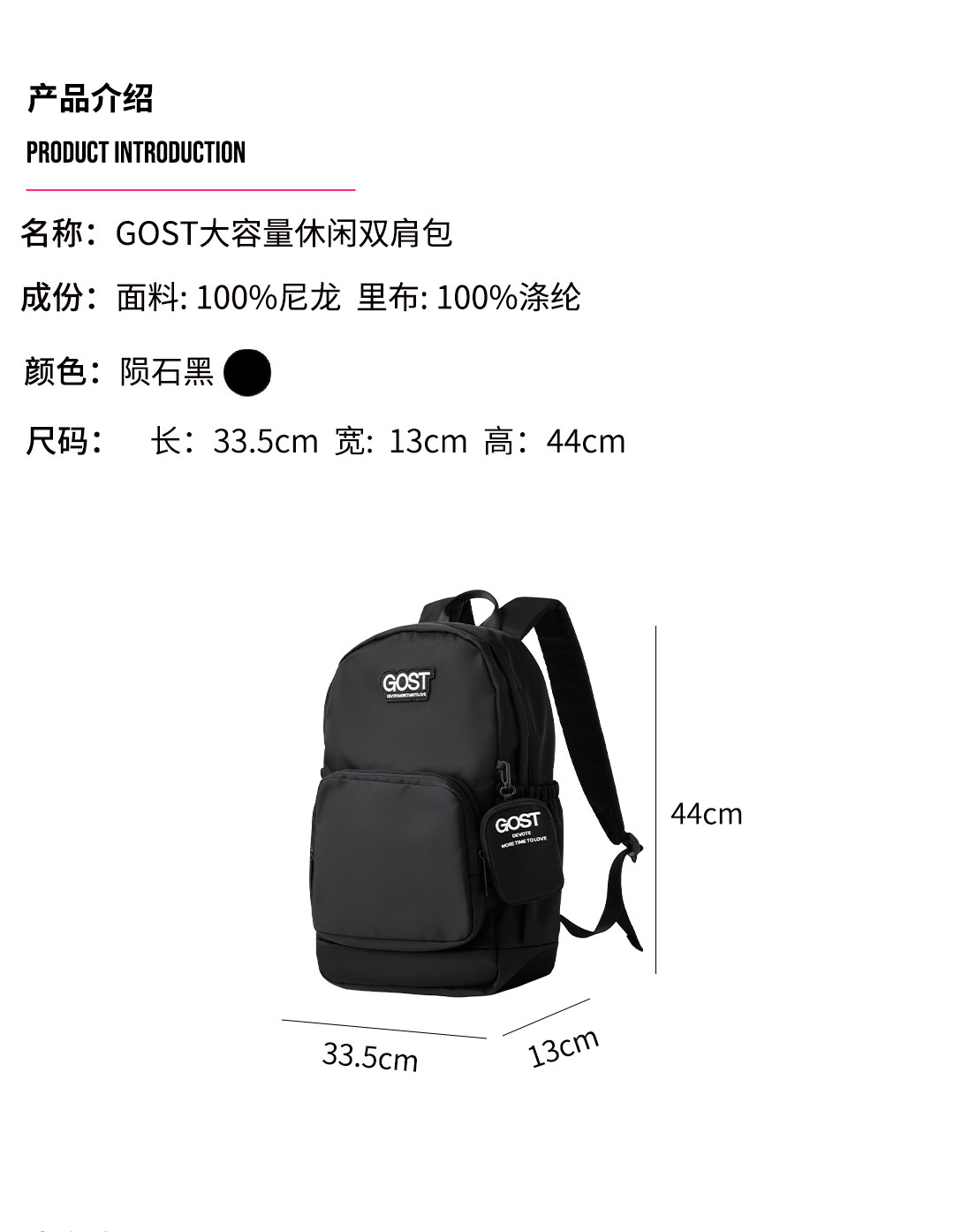 GOST簡約百搭大容量雙肩包輕便大書包短途出行旅行包電腦包後後背包