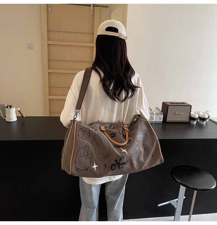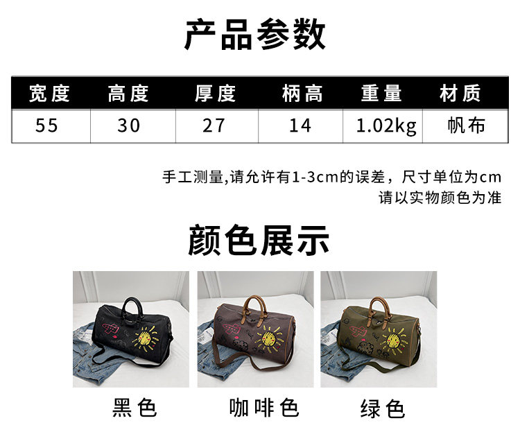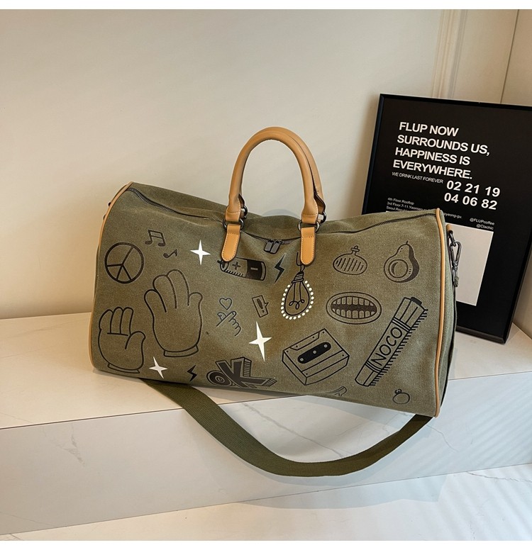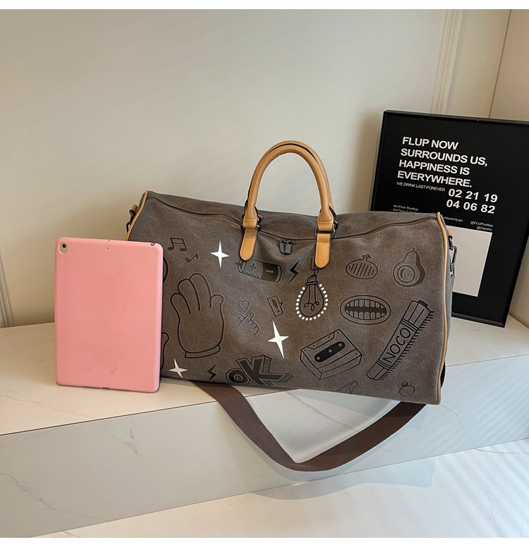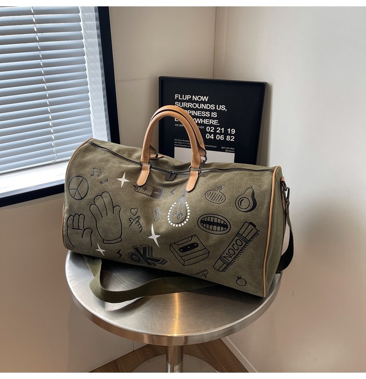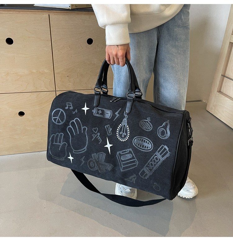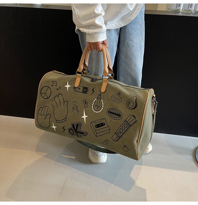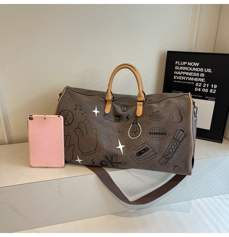 塗鴉旅行包女短途出差大容量行李袋手提包男乾濕分離運動包健身包