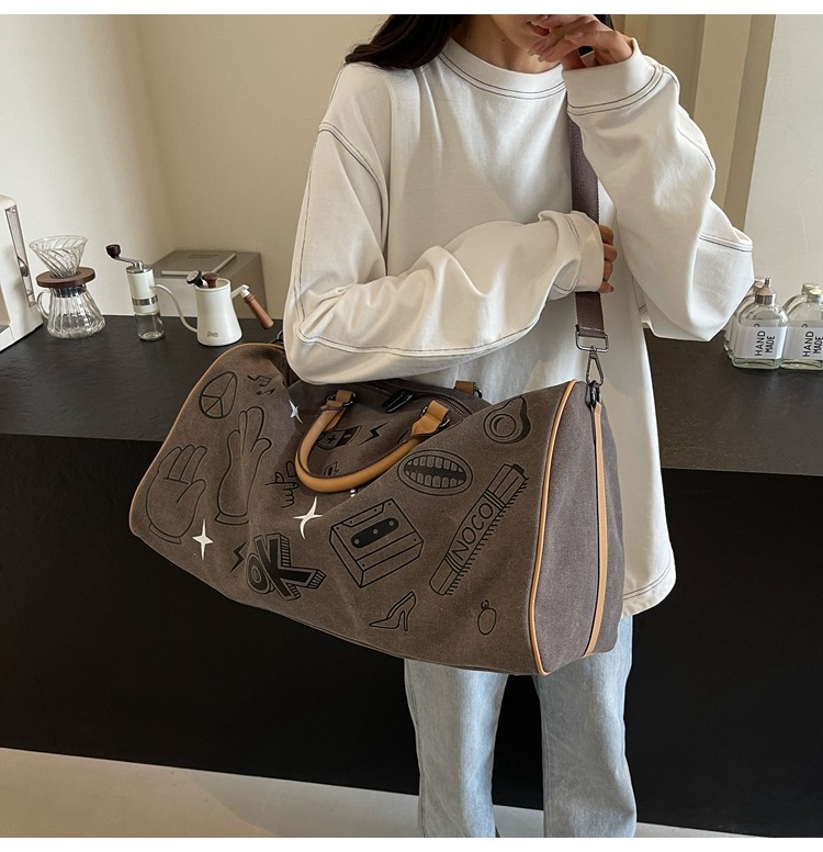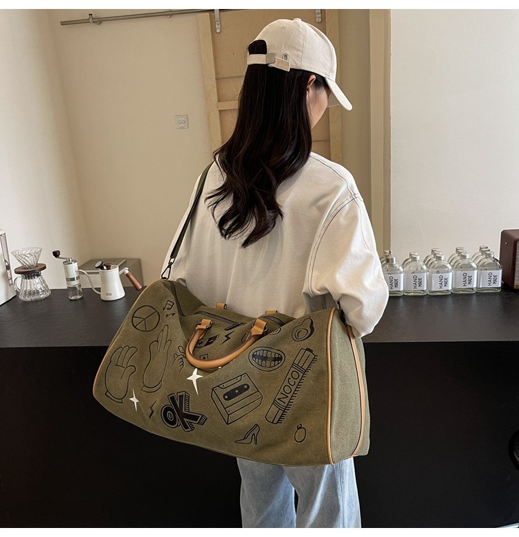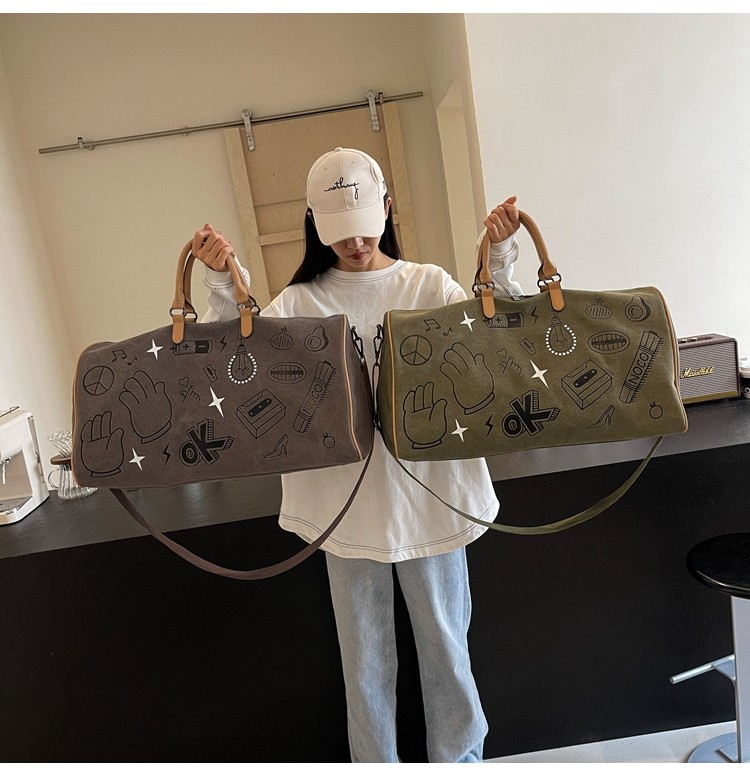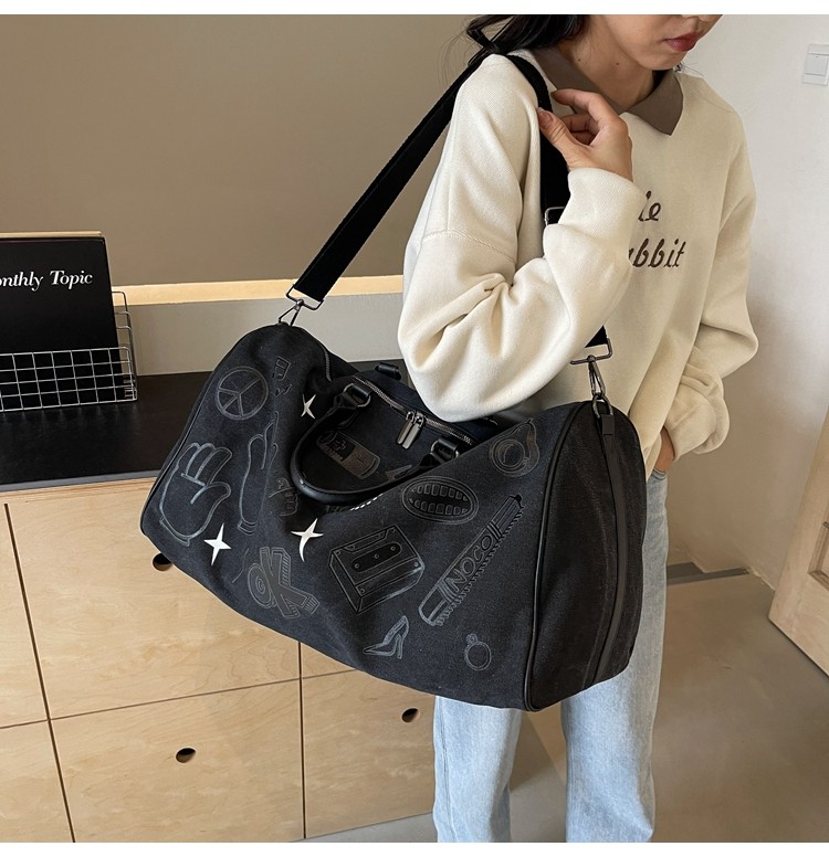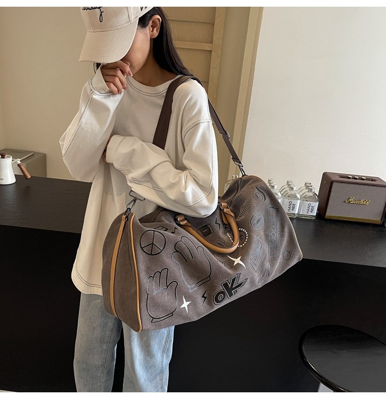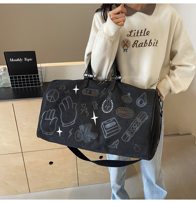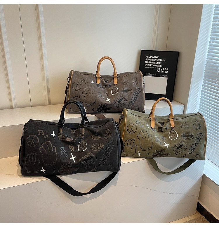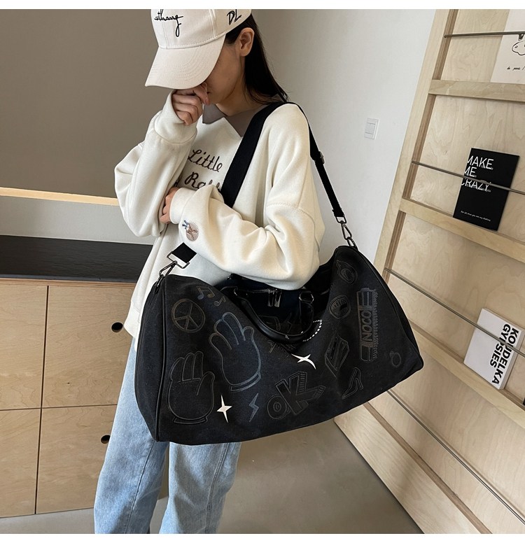 塗鴉旅行包女短途出差大容量行李袋手提包男乾濕分離運動包健身包