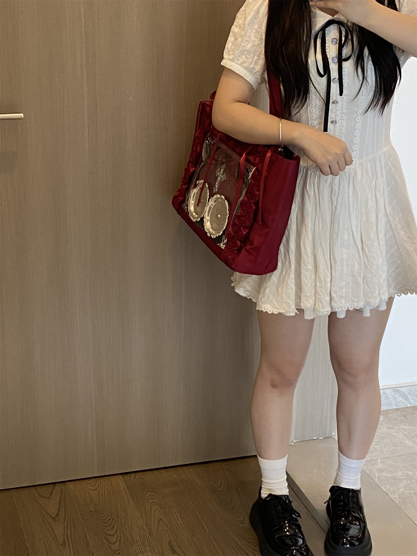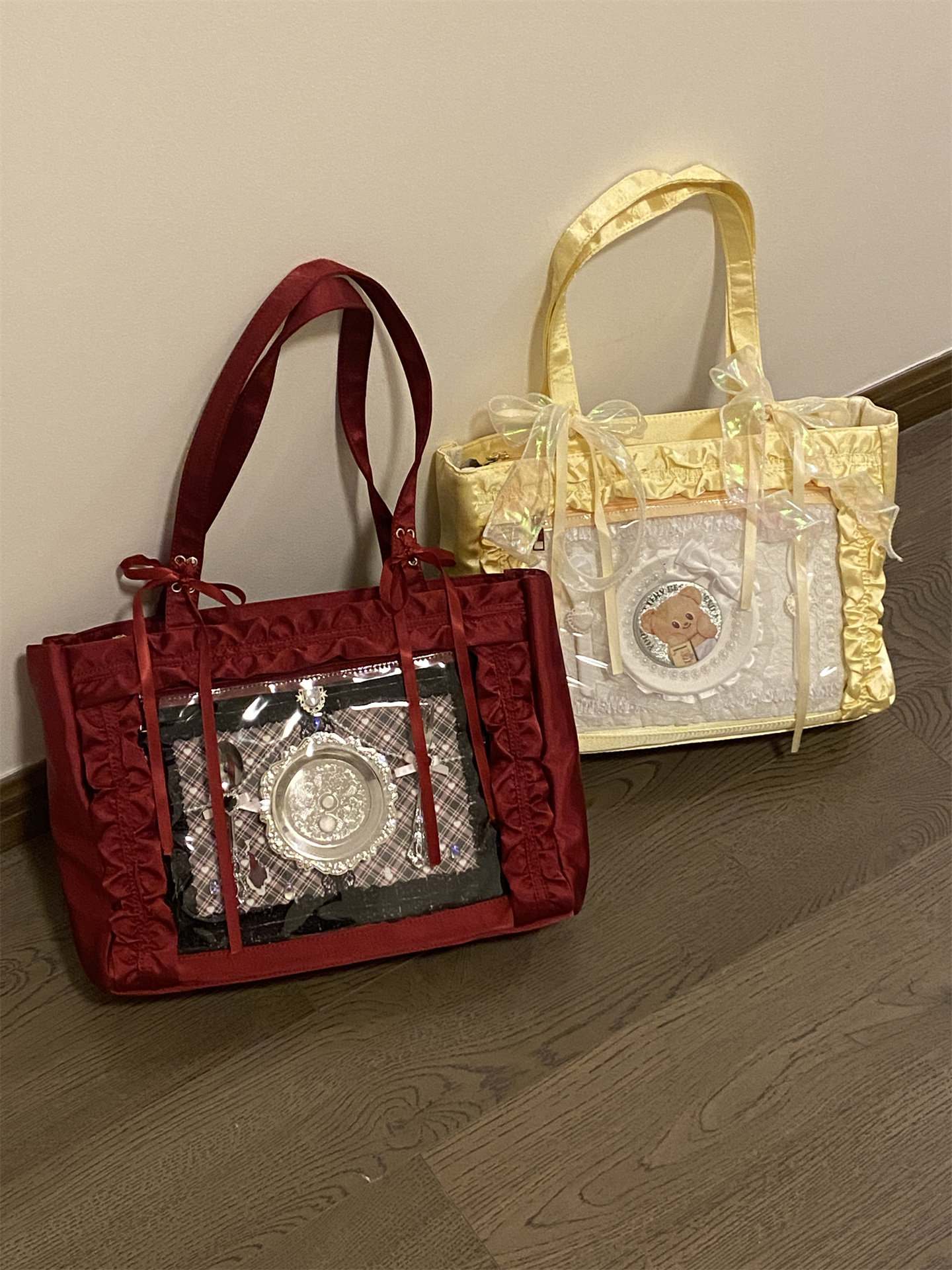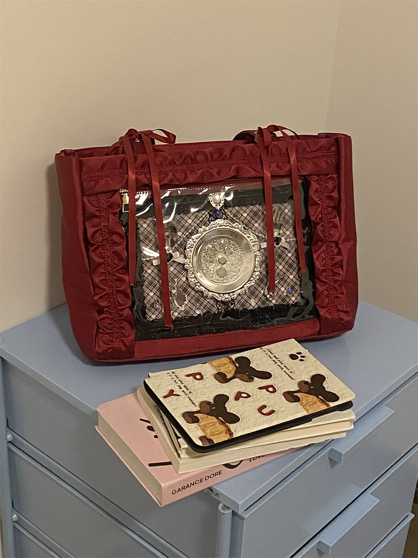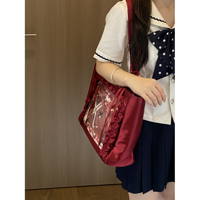 錢一波痛包|暗紅色花邊緞面痛大容量單肩包托特包大食量華麗吧唧