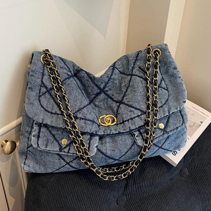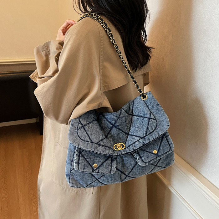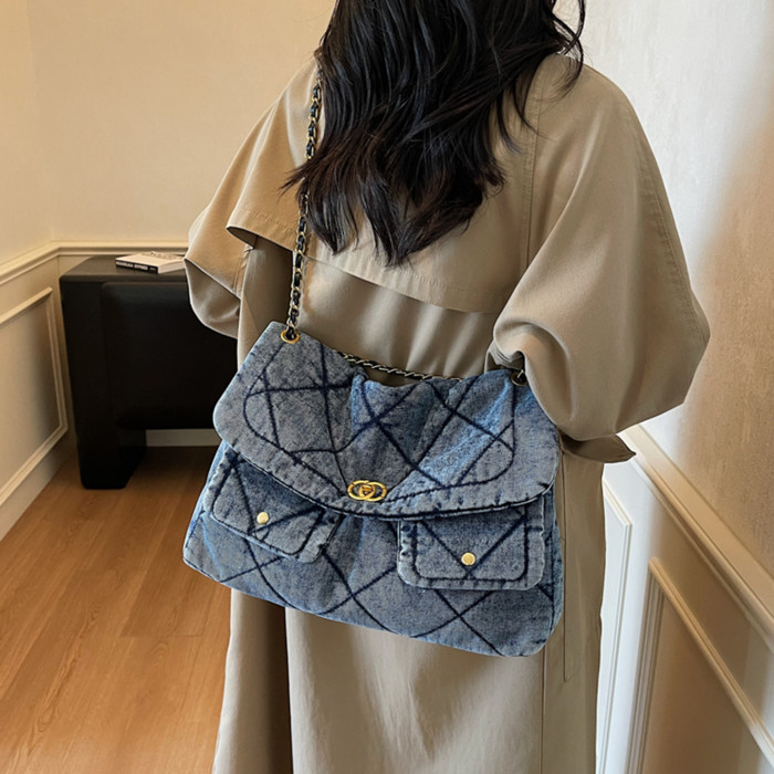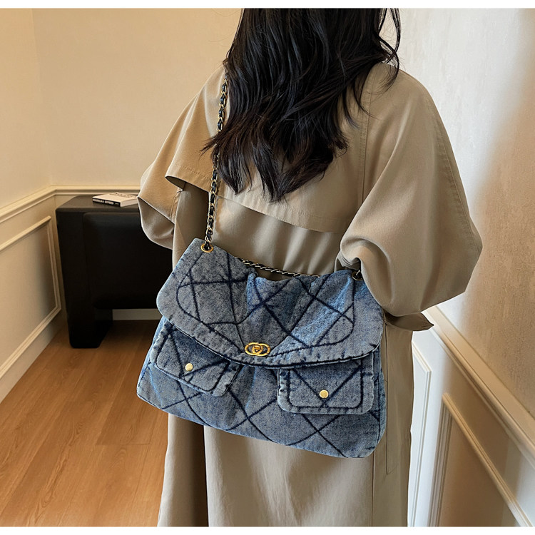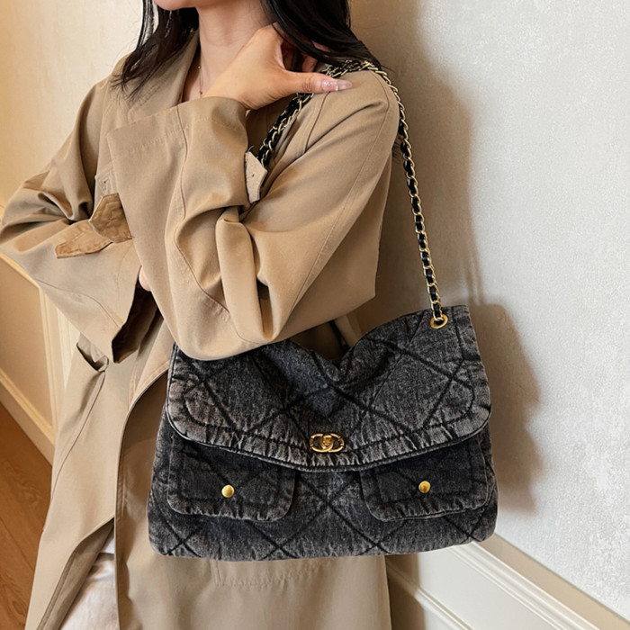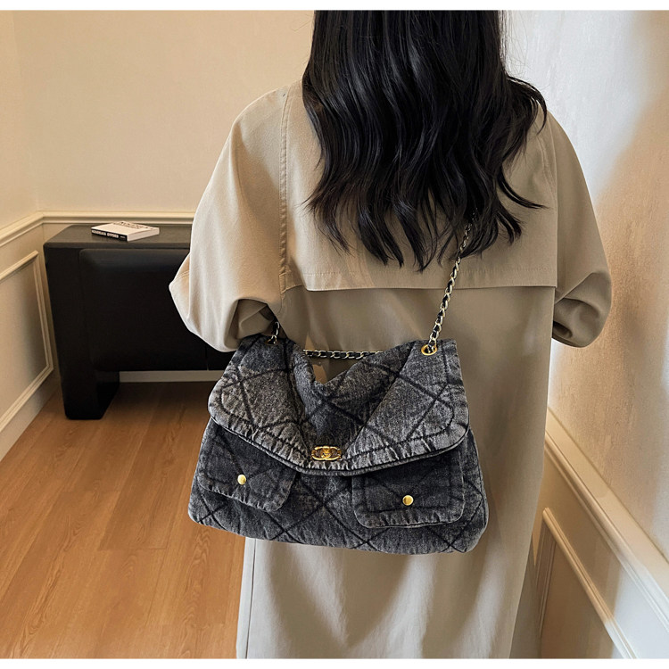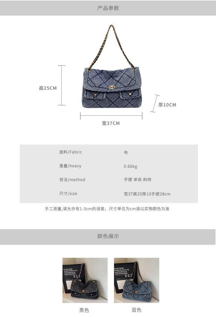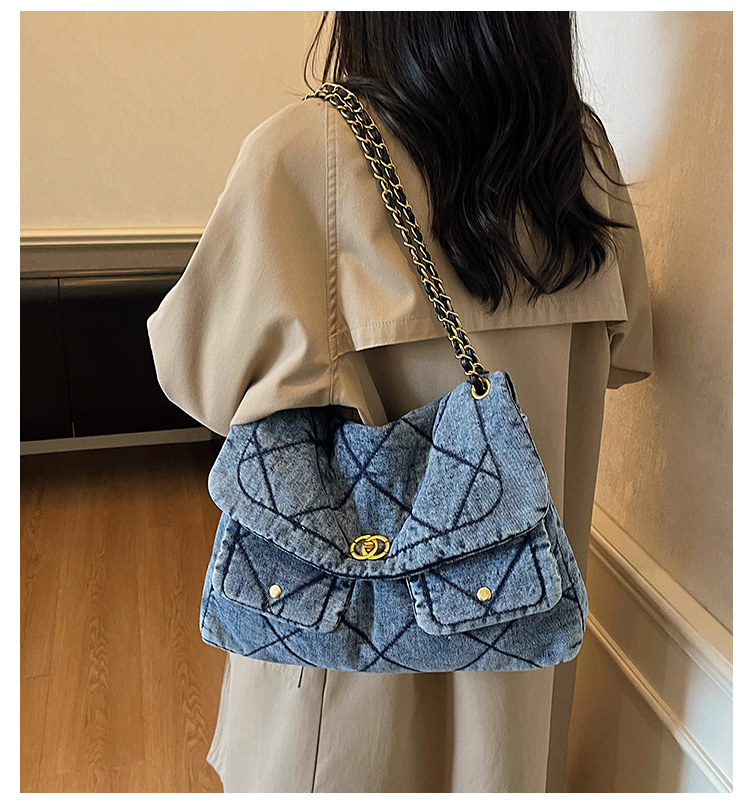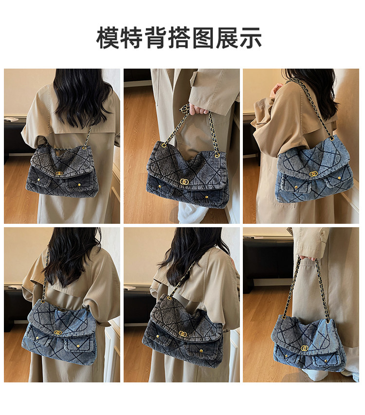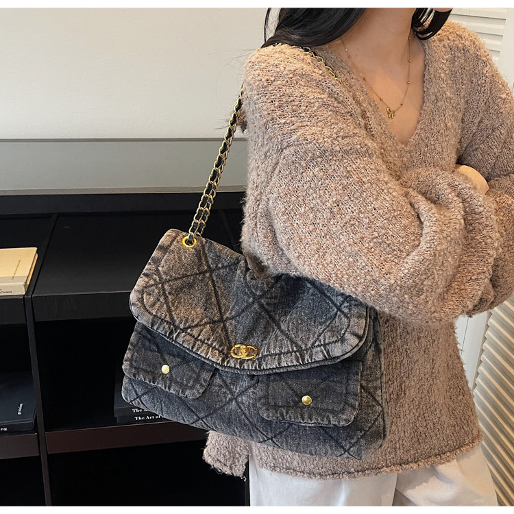 小香風牛仔布菱格鏈條單肩女百搭流浪包2026春季新款小方包歐美風