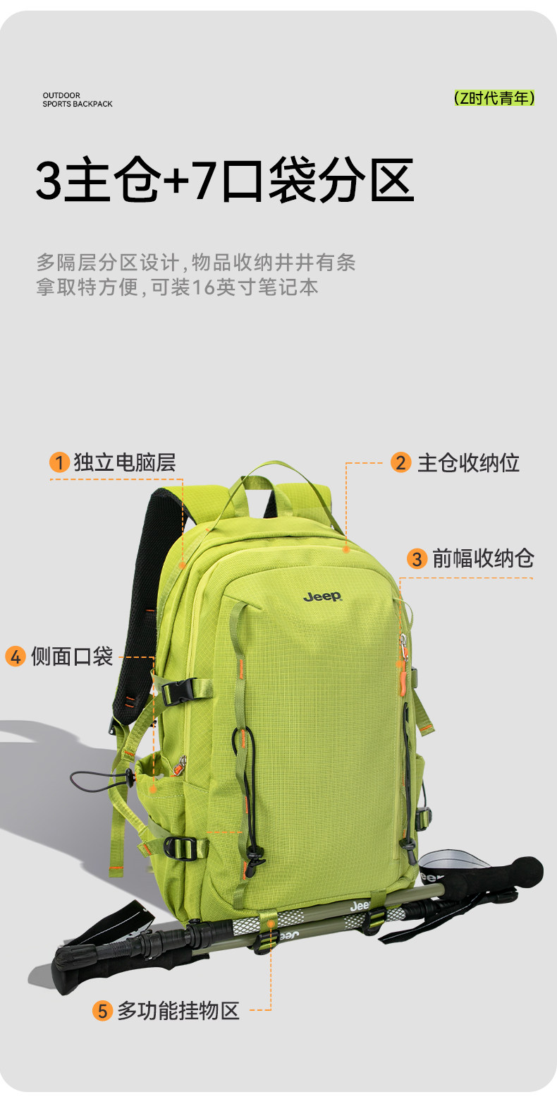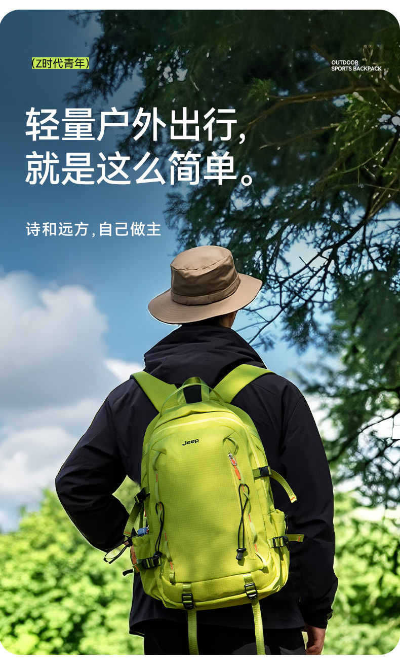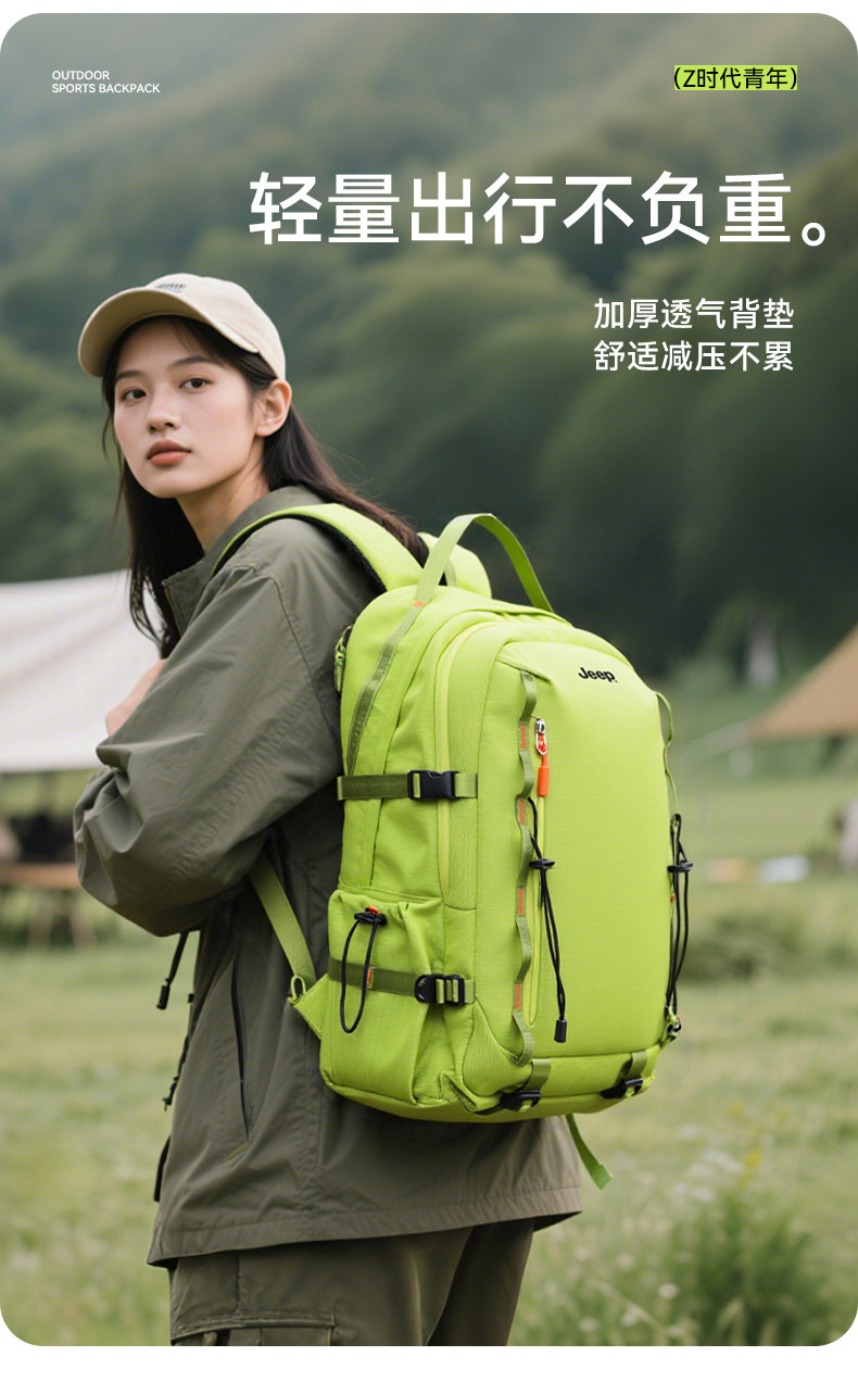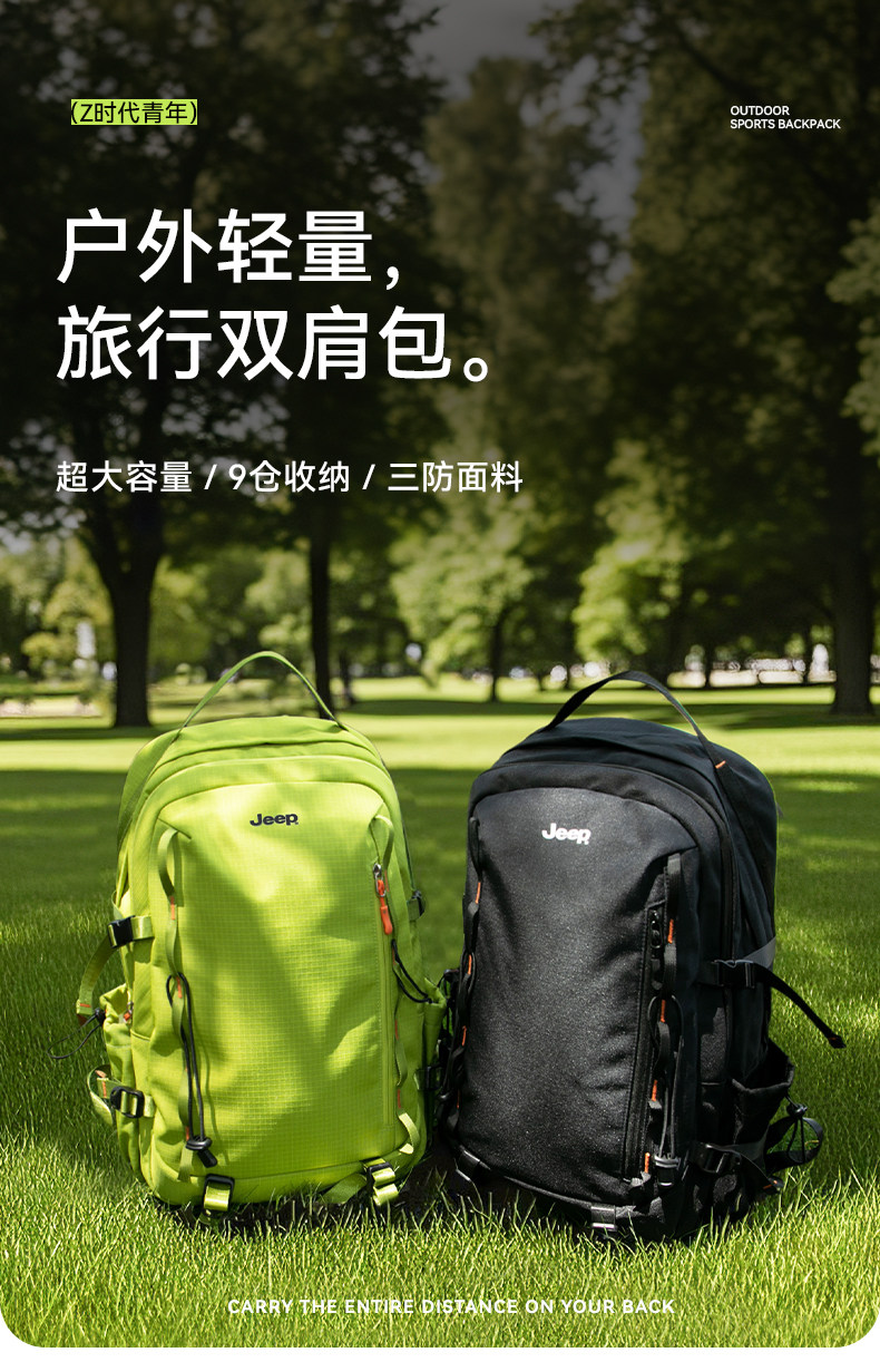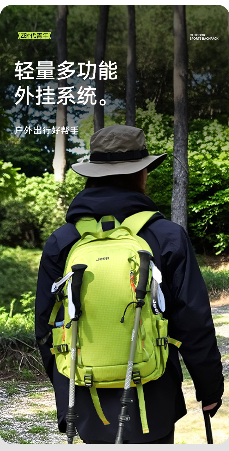 JEEP戶外雙肩包女旅行露營後後背包旅遊輕便高顔值雙肩包男攀巖登山包