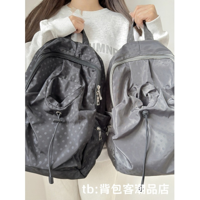 韓系小衆波點書包女休閒學院風後後背包男高中學生輕便旅遊雙肩包ins