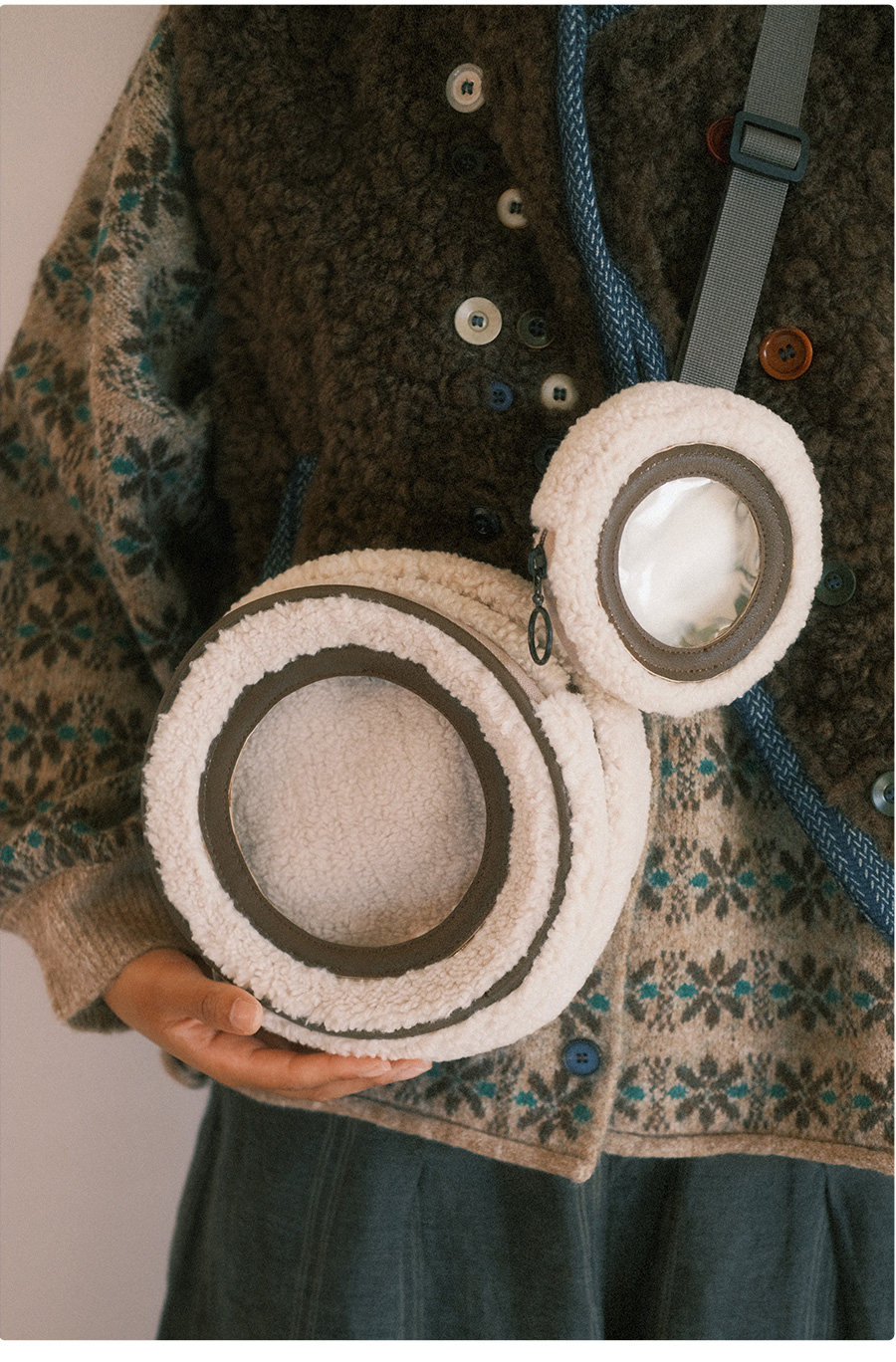 nullbag原創2025秋冬毛絨包痛包10cm娃娃可愛多用羊羔毛毛斜後後背包
