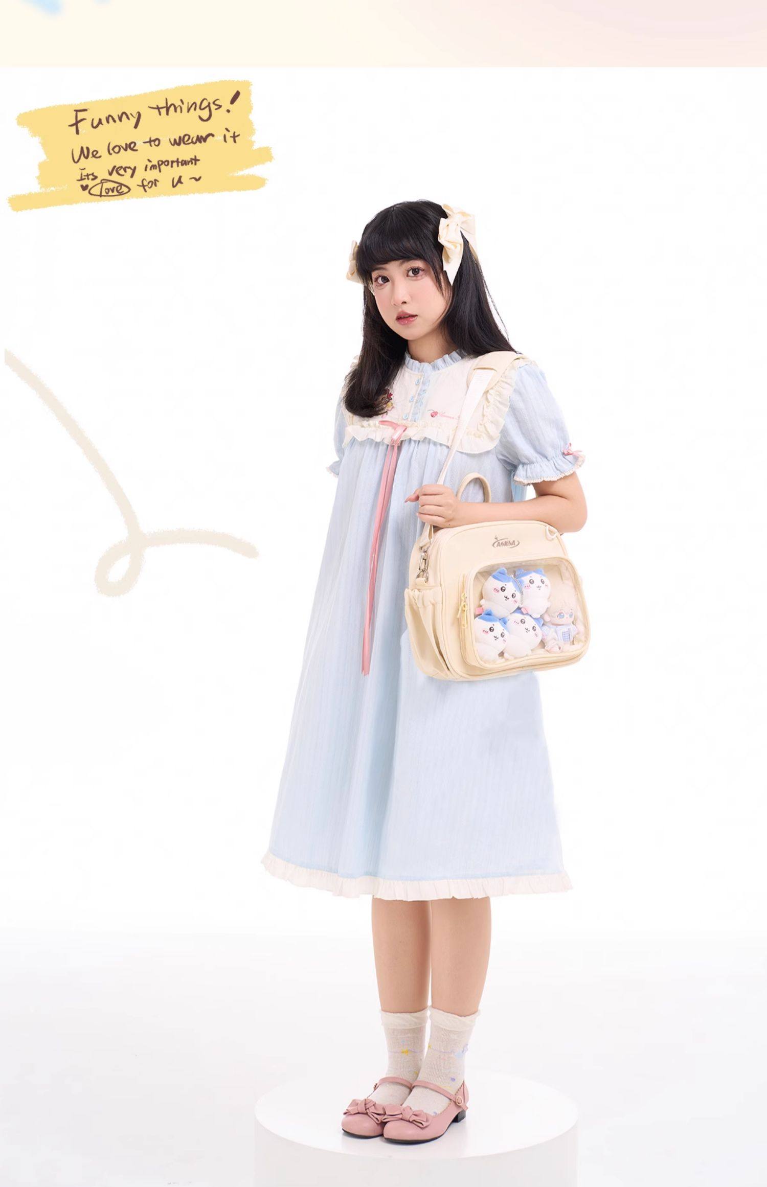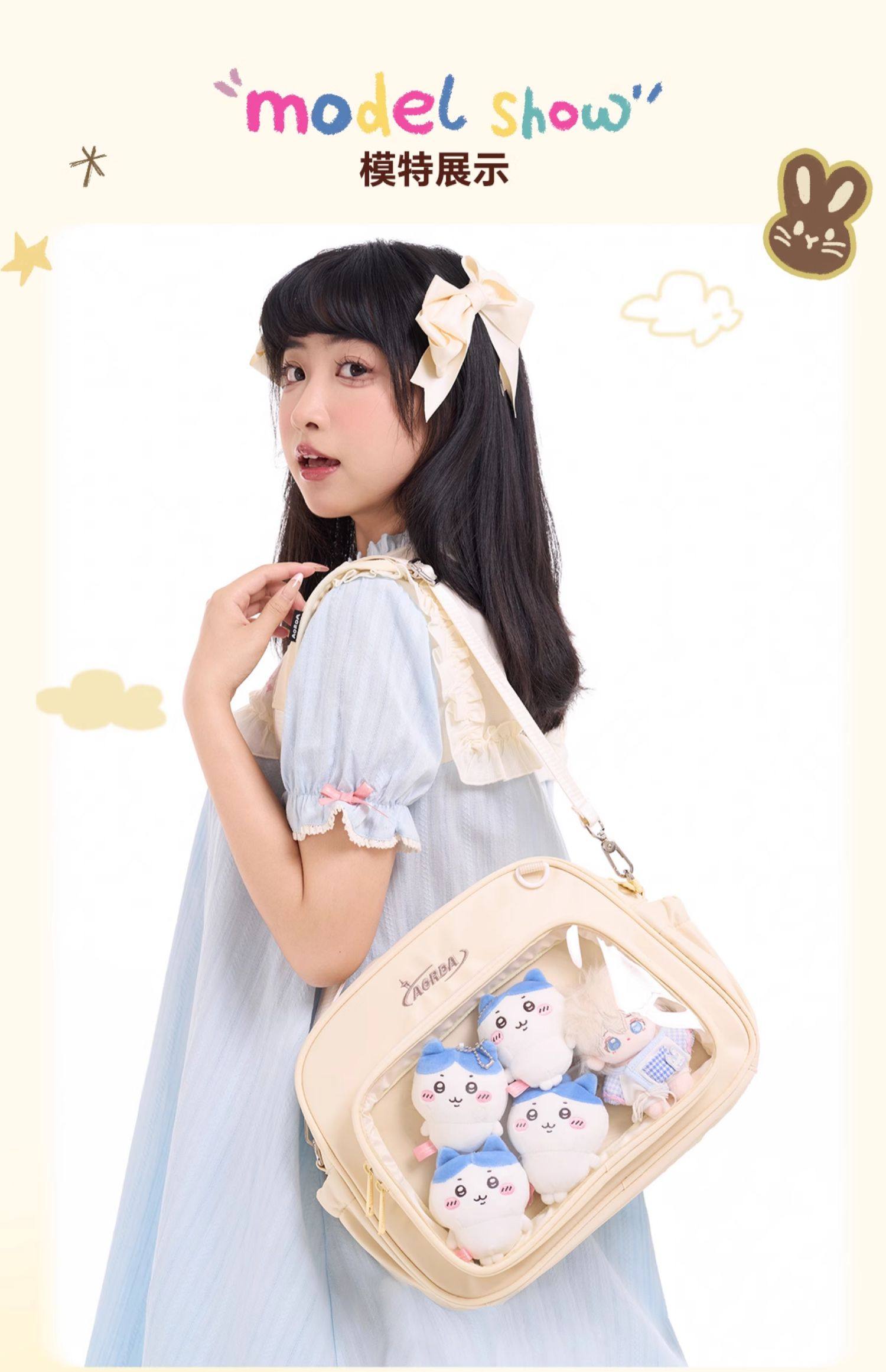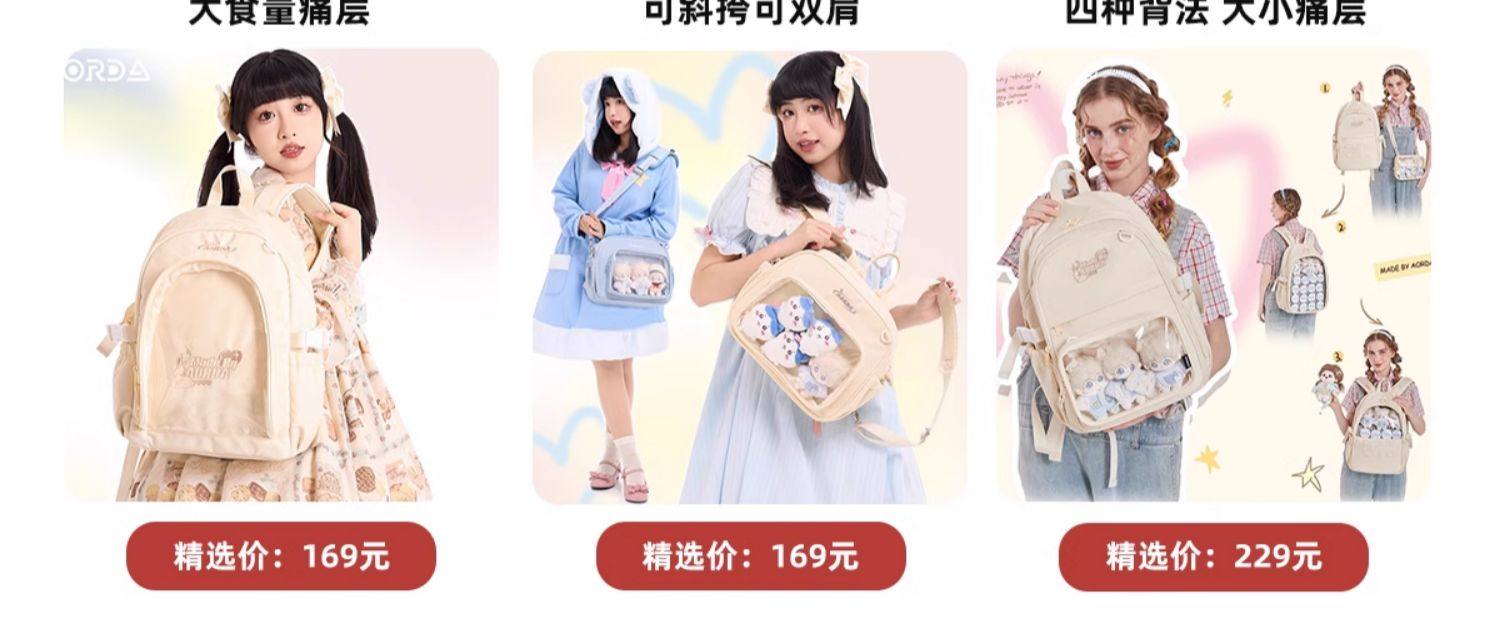 AORDA 原創二次元單肩斜背日常粉色痛包雙肩小食量吧唧包穀子娃包