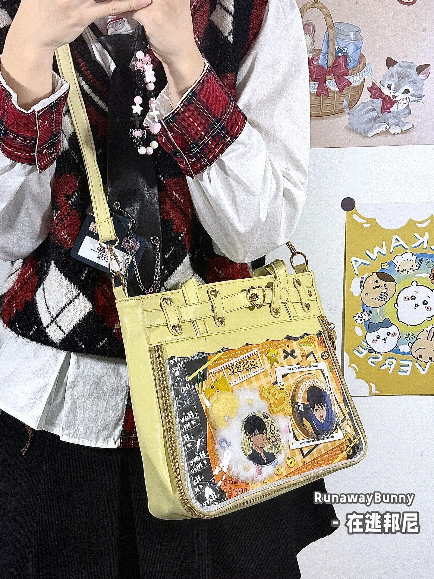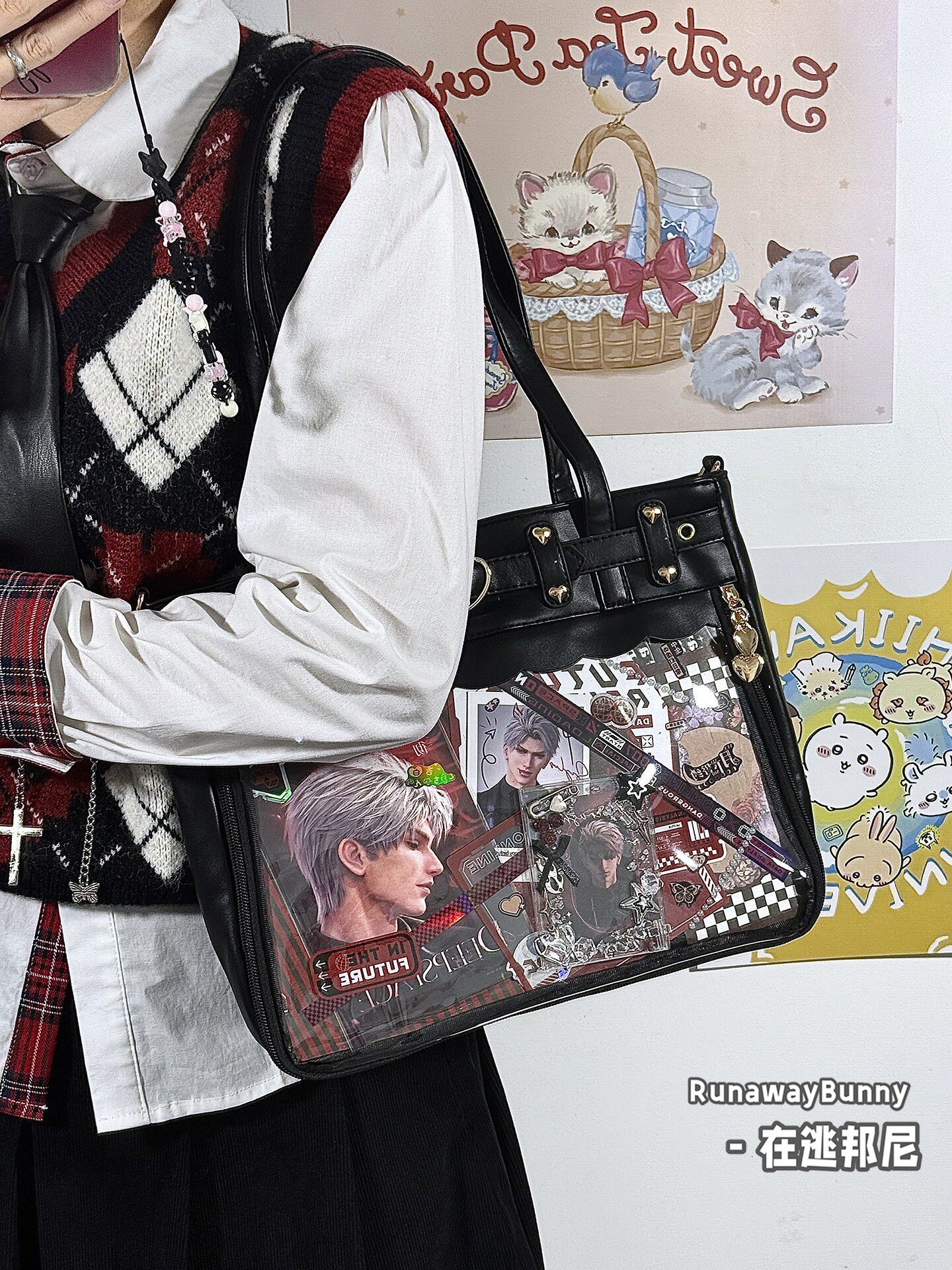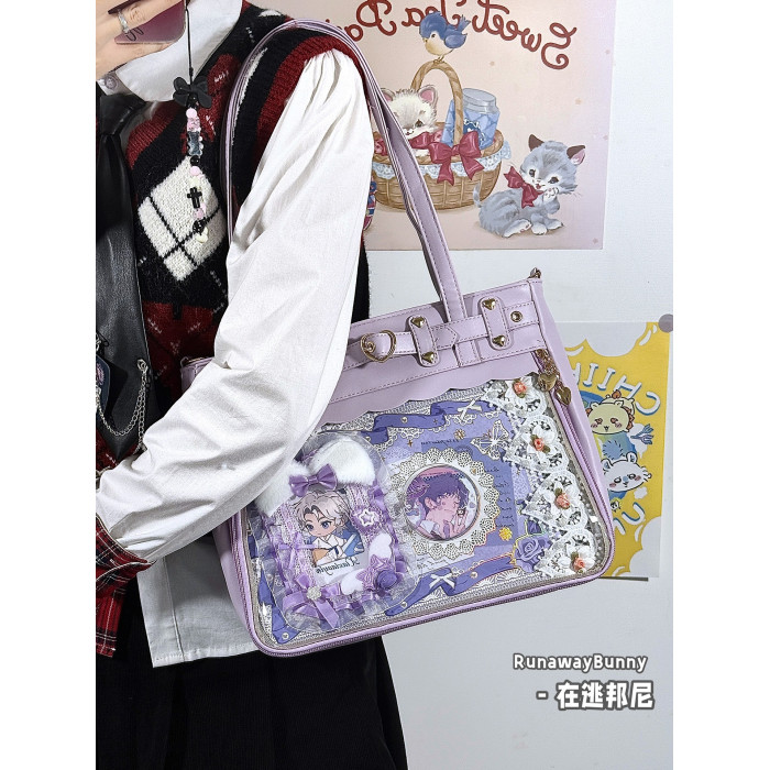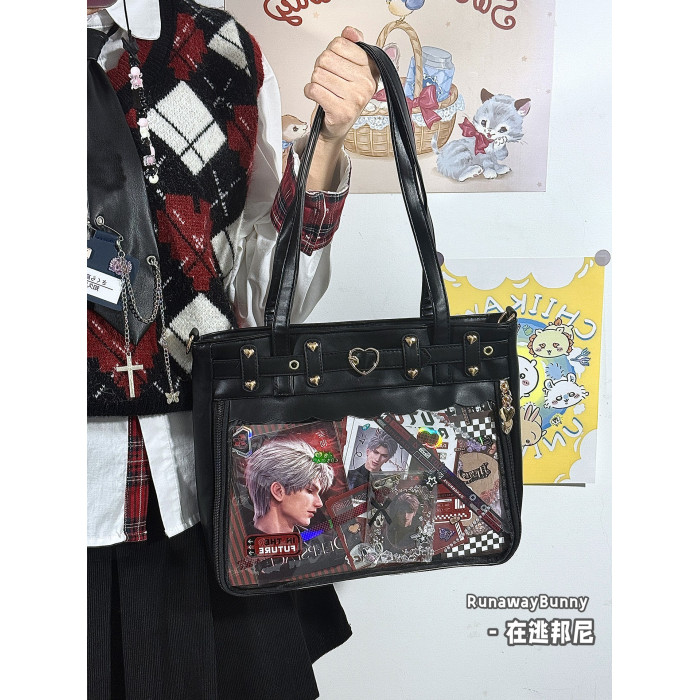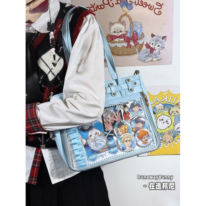 日常基礎款透明穀子吧唧痛包高顔值二次元追星漫展手提單肩斜後後背包