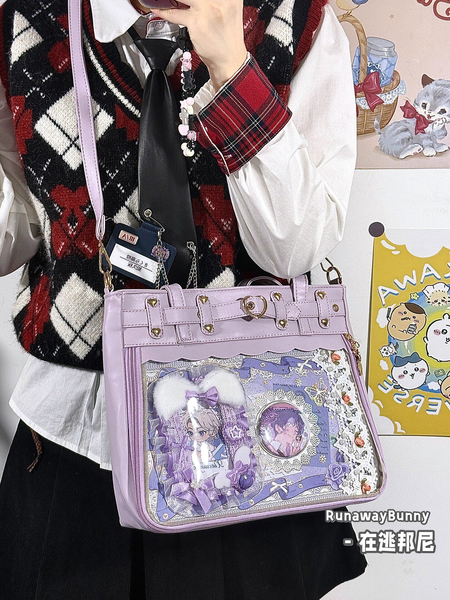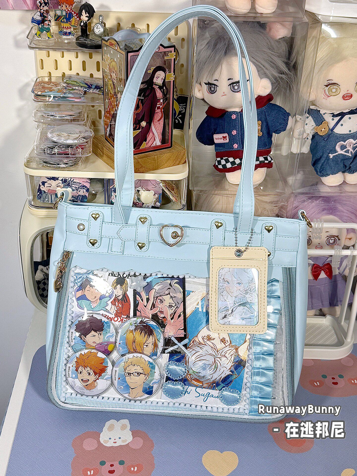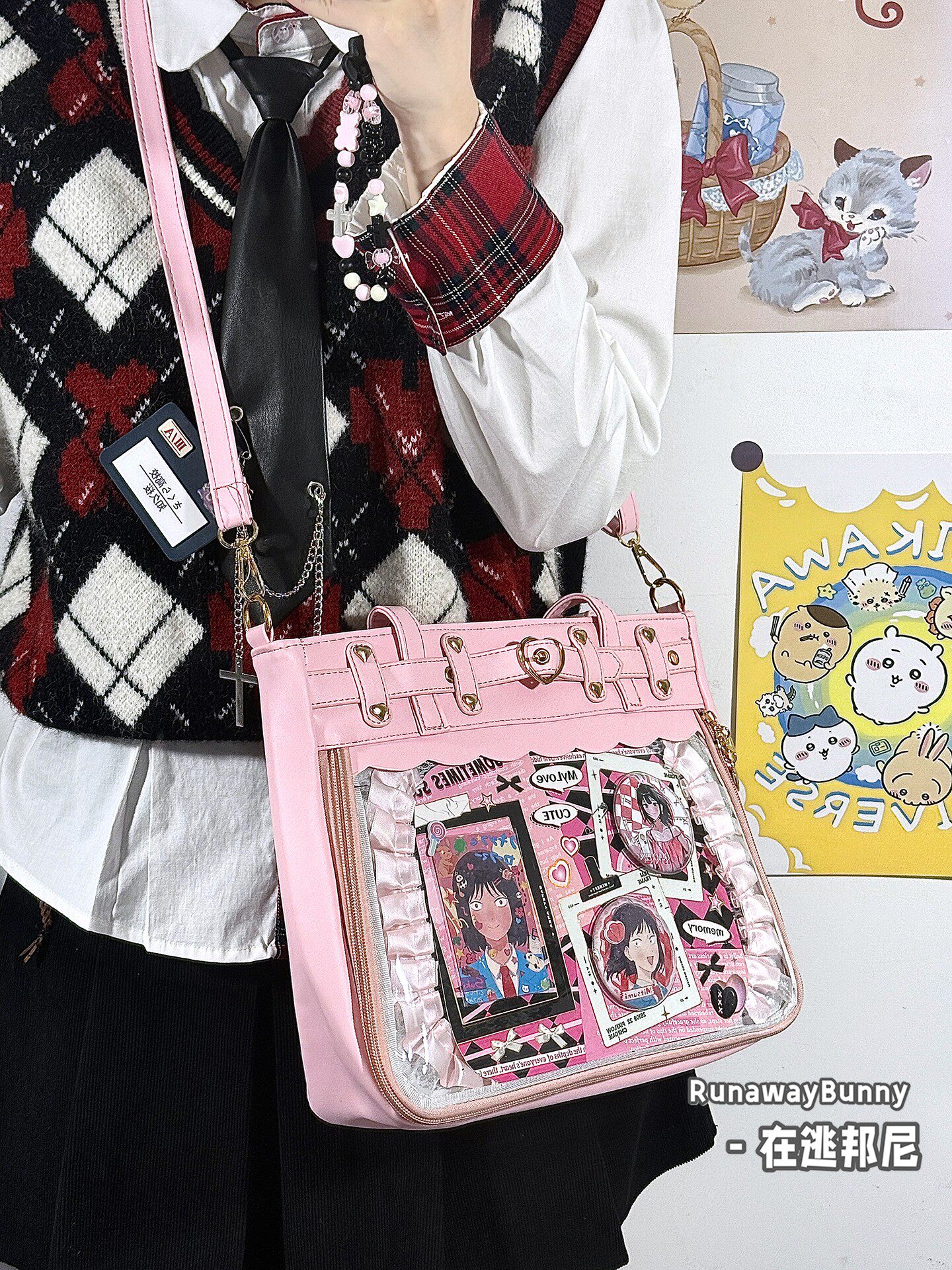 日常基礎款透明穀子吧唧痛包高顔值二次元追星漫展手提單肩斜後後背包