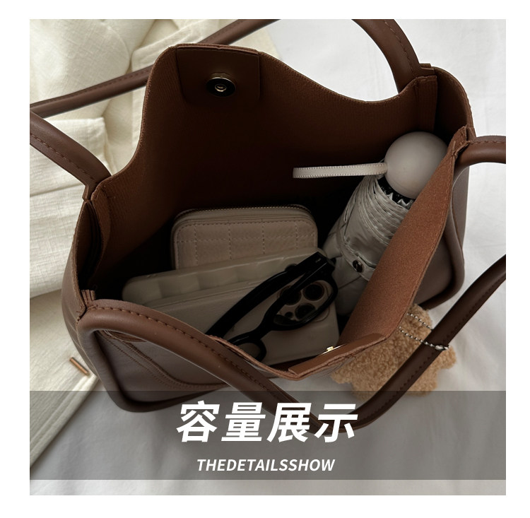 復古時尚包包女士2023新款大容量通勤水桶包高級感休閒百搭單肩包