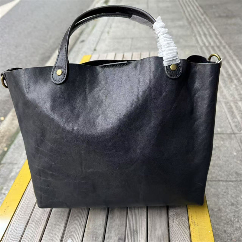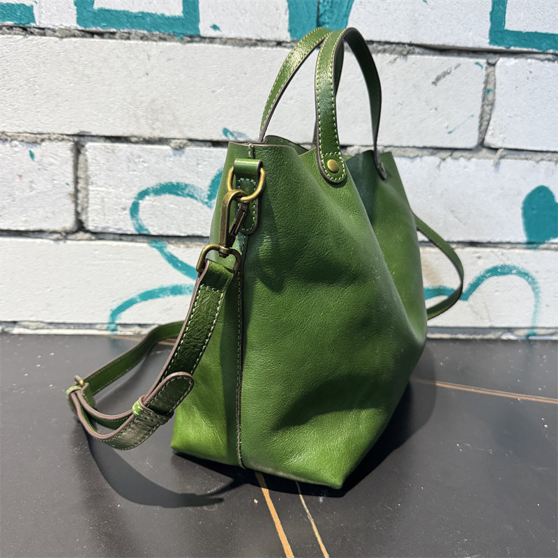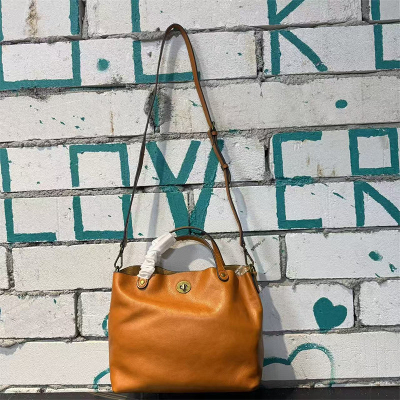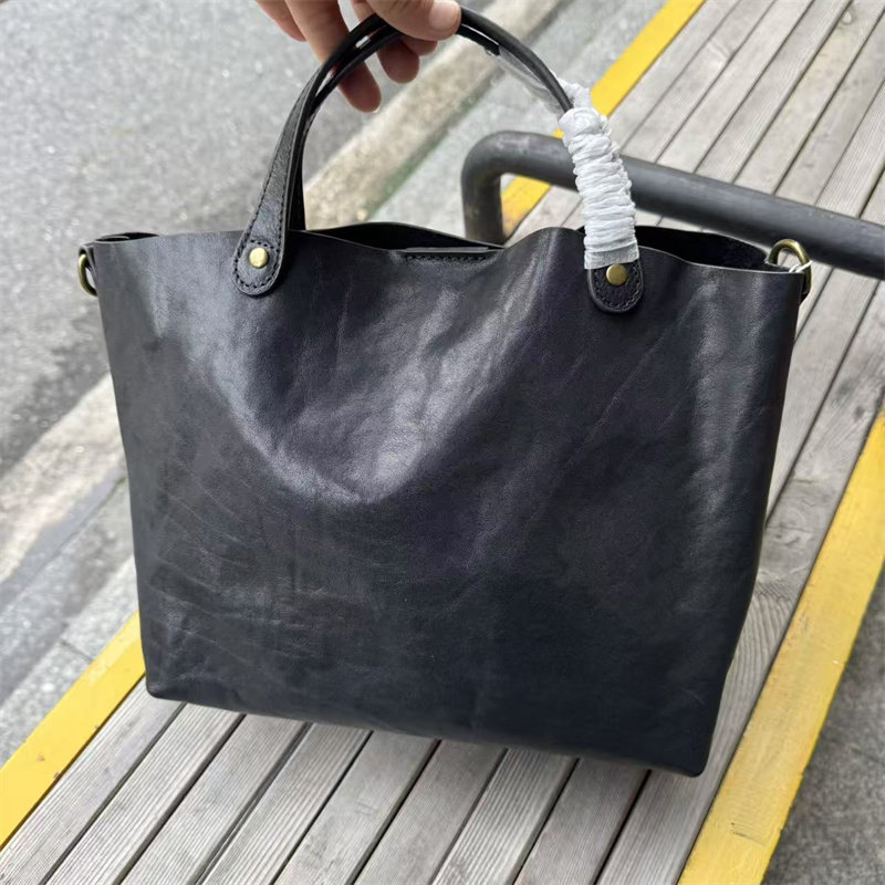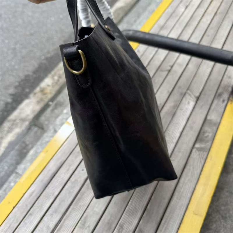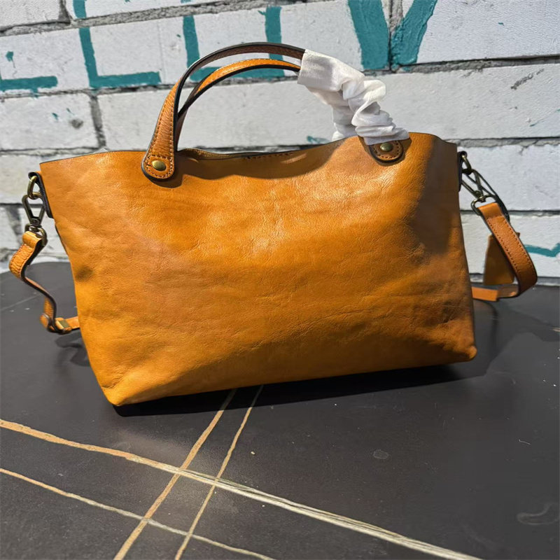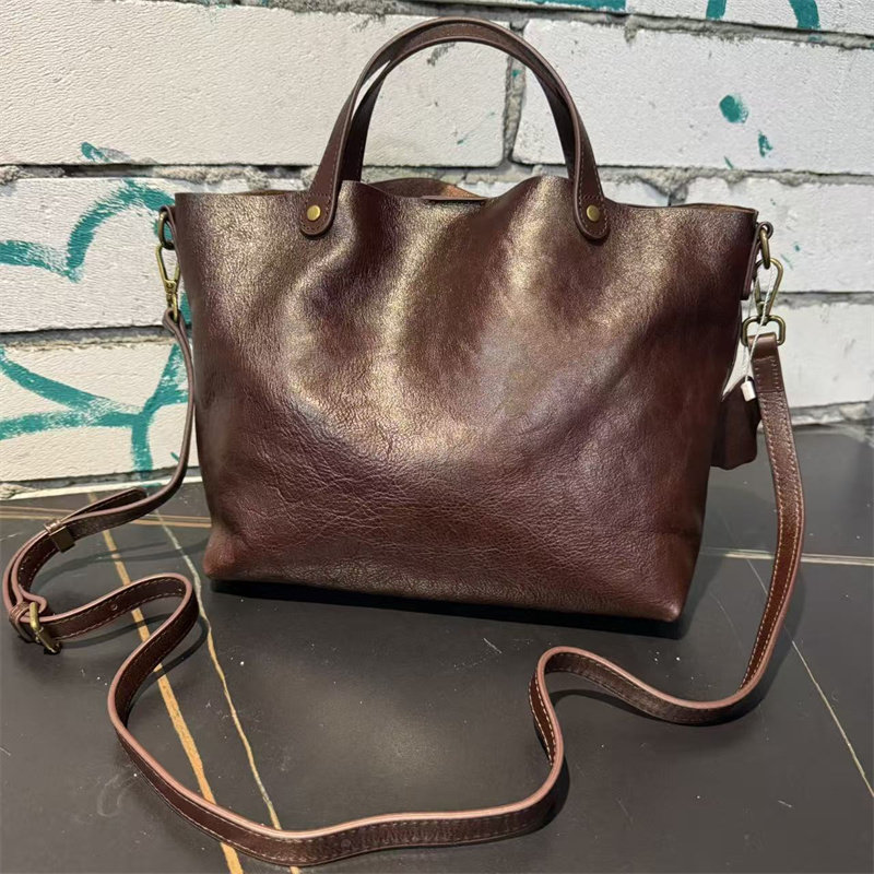 頭層植鞣牛皮水桶包真皮女包新款簡約百搭托特包質感手提斜後後背包