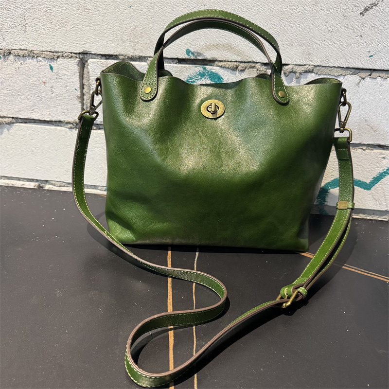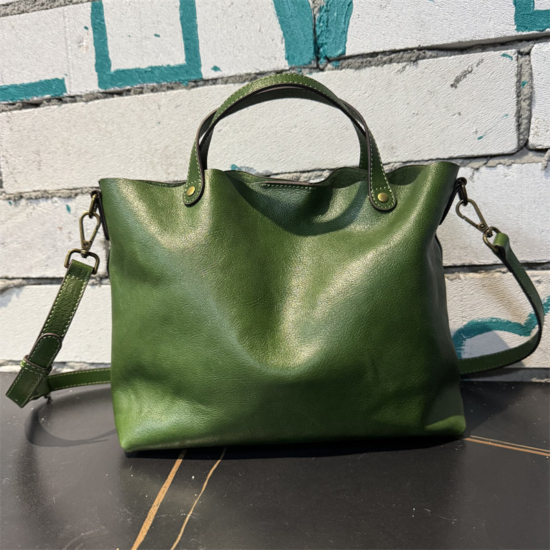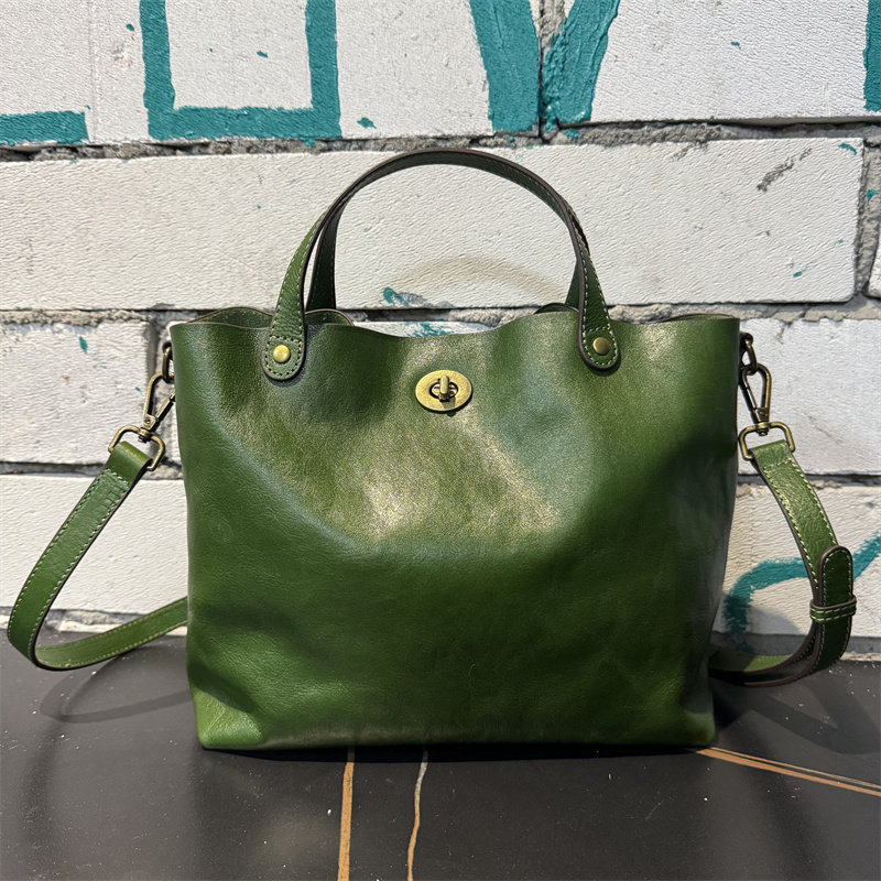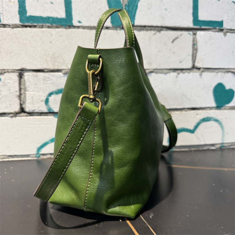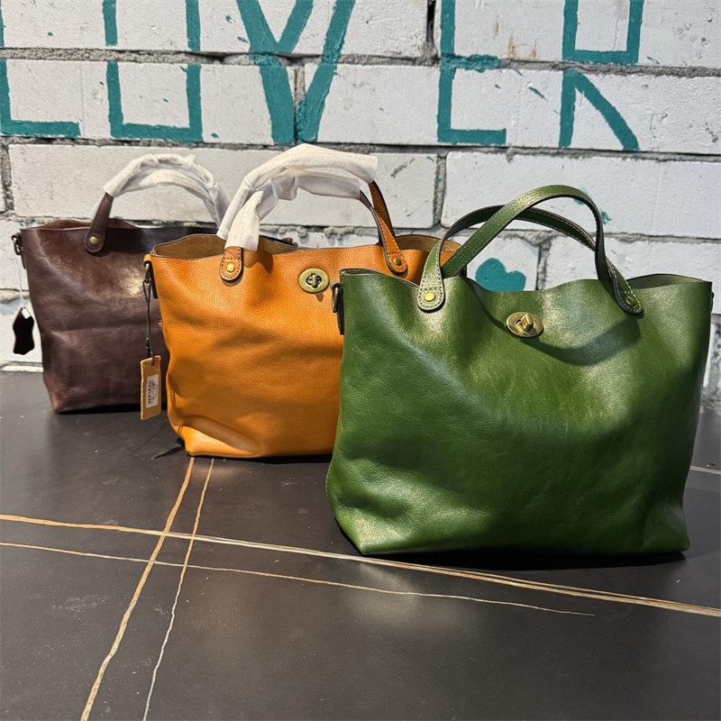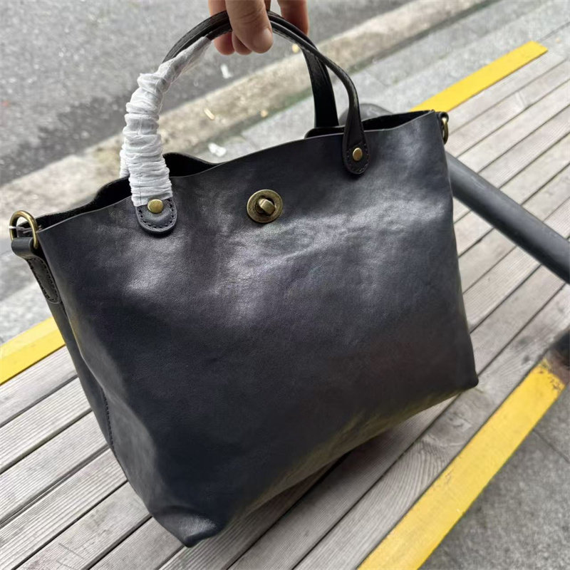頭層植鞣牛皮水桶包真皮女包新款簡約百搭托特包質感手提斜後後背包