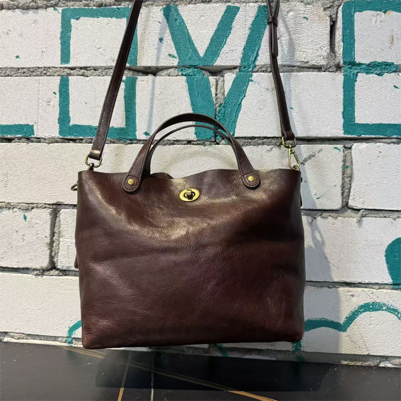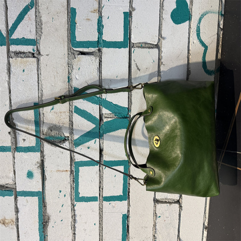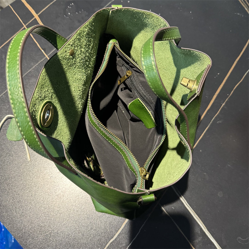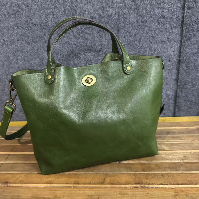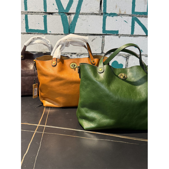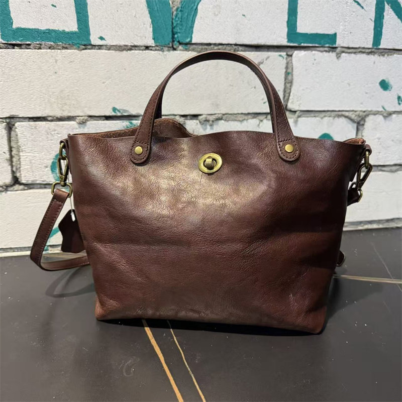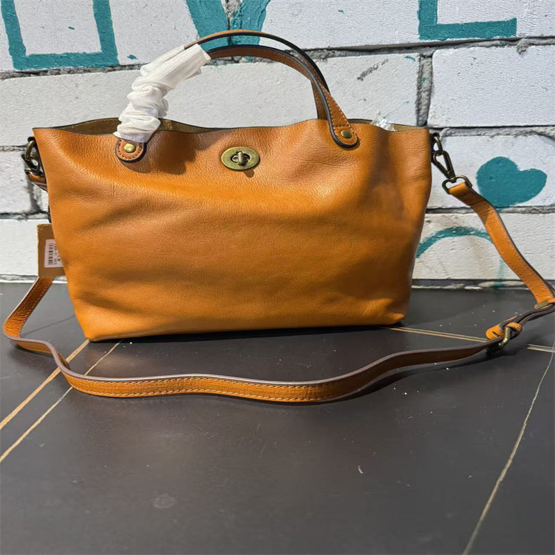 頭層植鞣牛皮水桶包真皮女包新款簡約百搭托特包質感手提斜後後背包