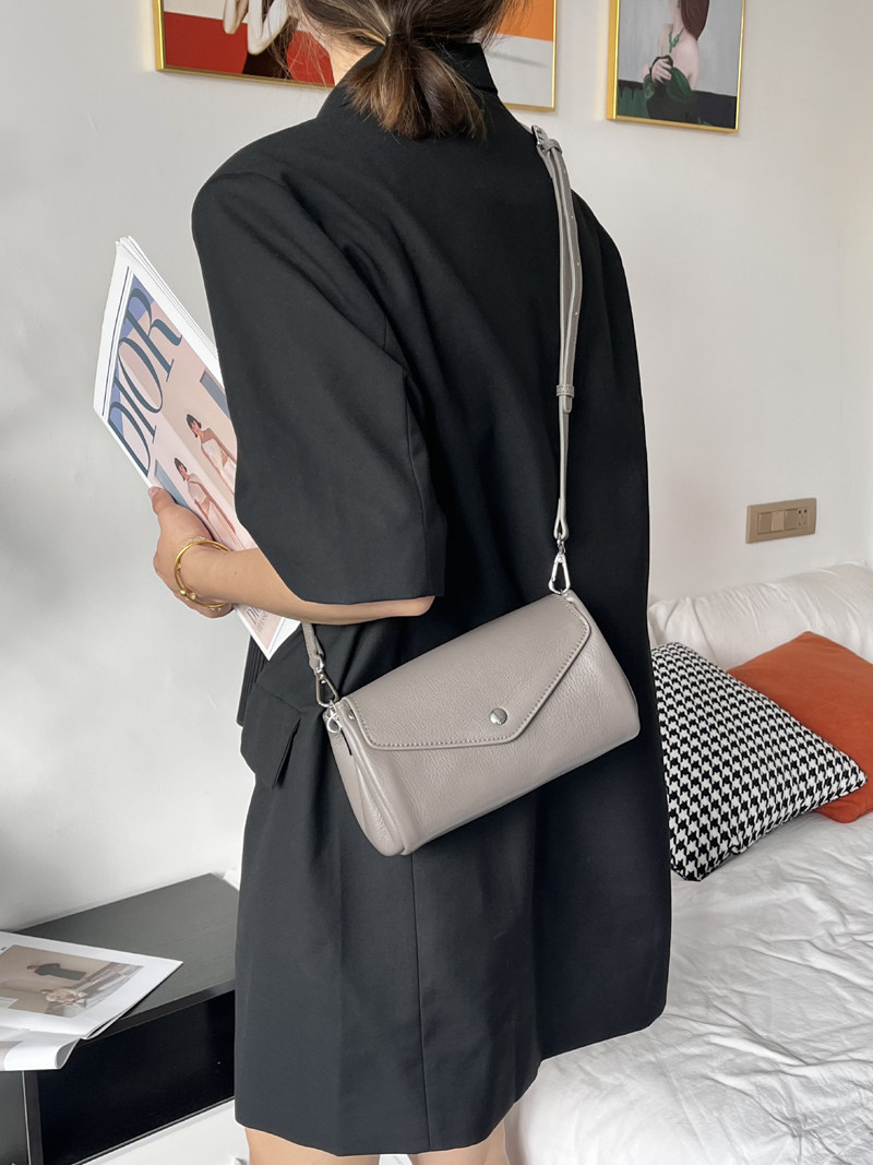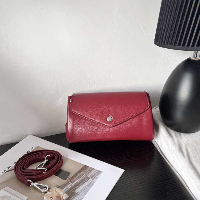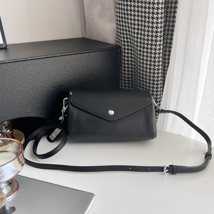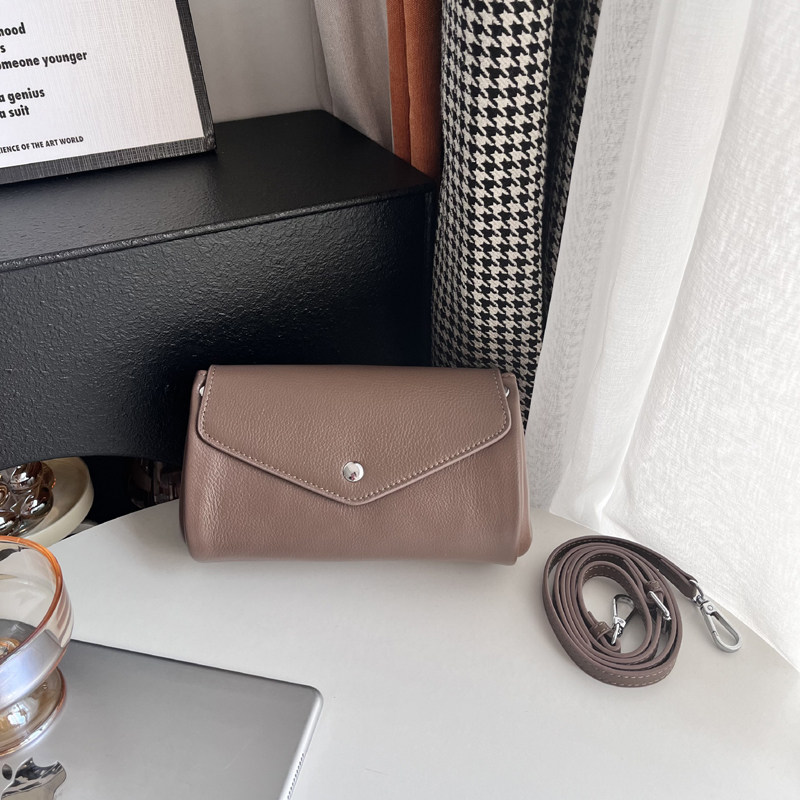 真皮小包2026新款牛皮斜後後背包小圓桶包軟皮大容量手機包多隔層簡約