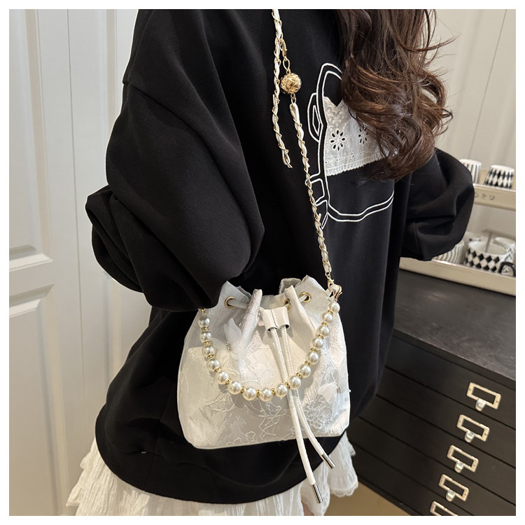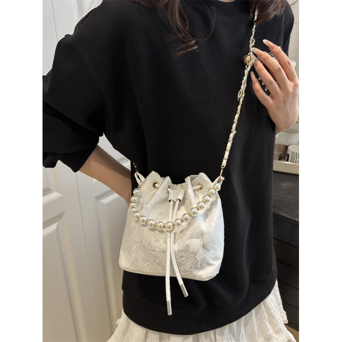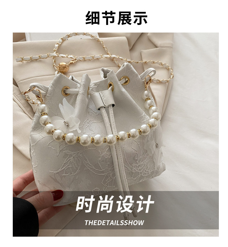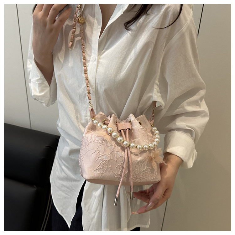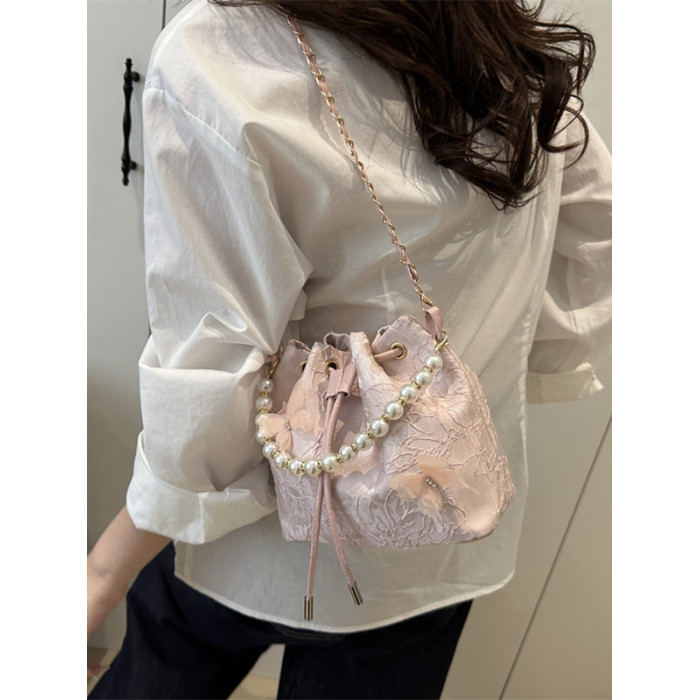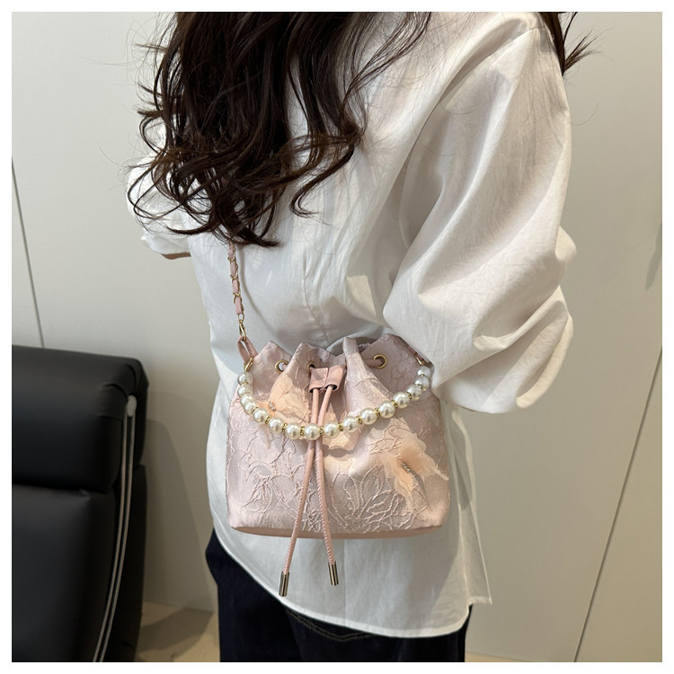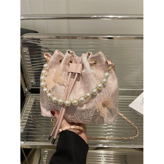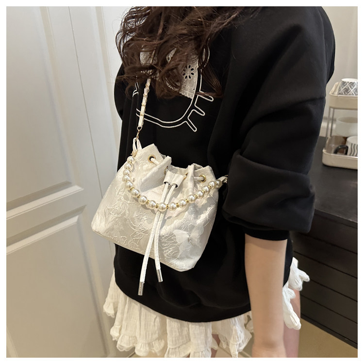 新中式水桶包2025新款旗袍風珍珠手提小包包女高級感風斜後後背包
