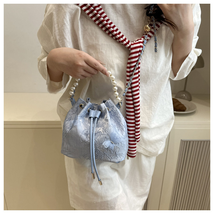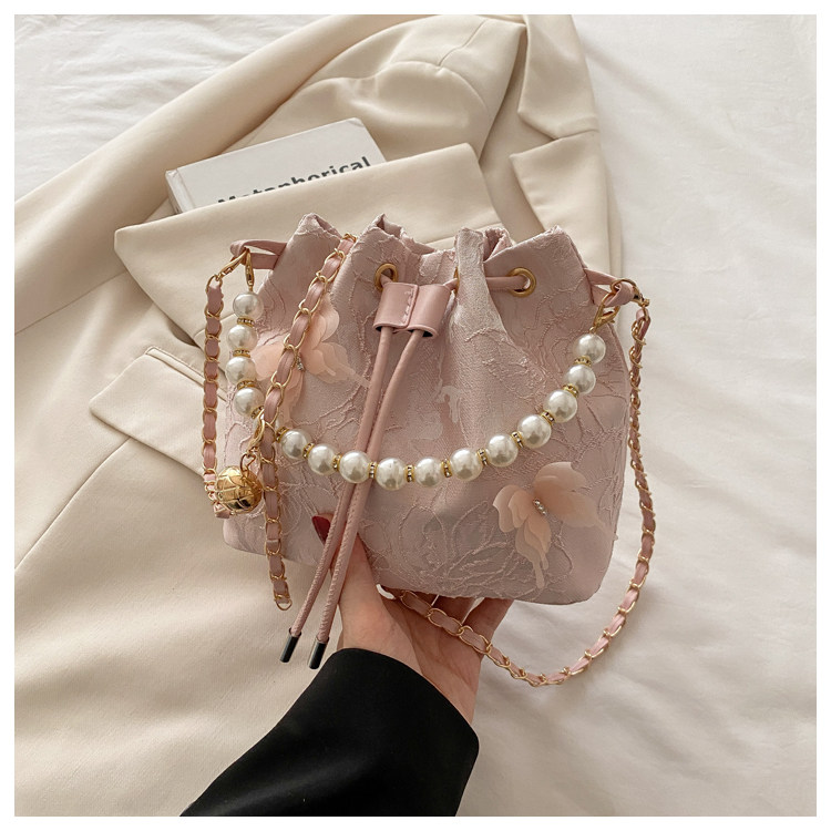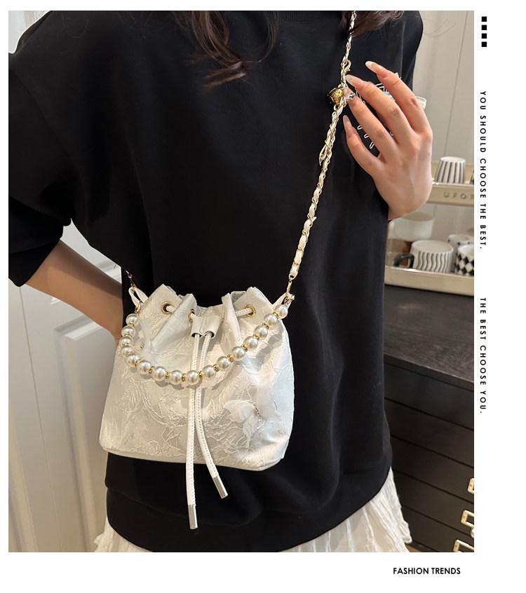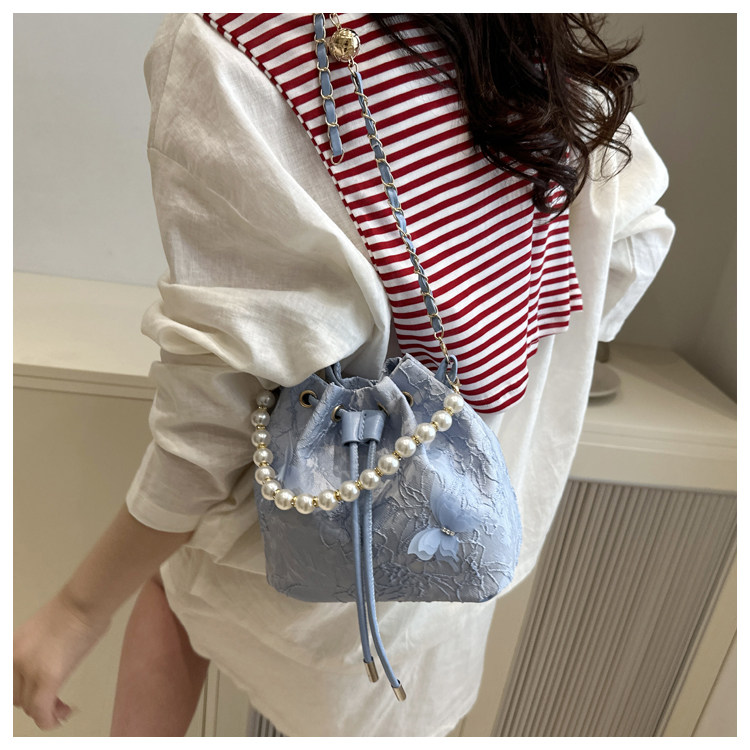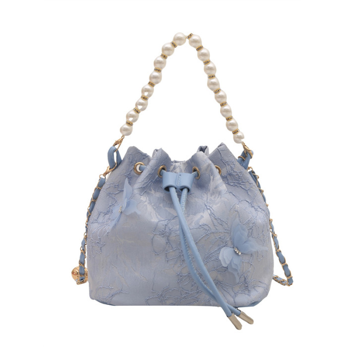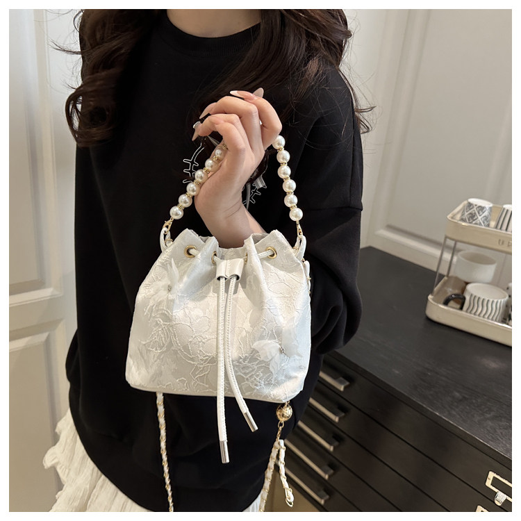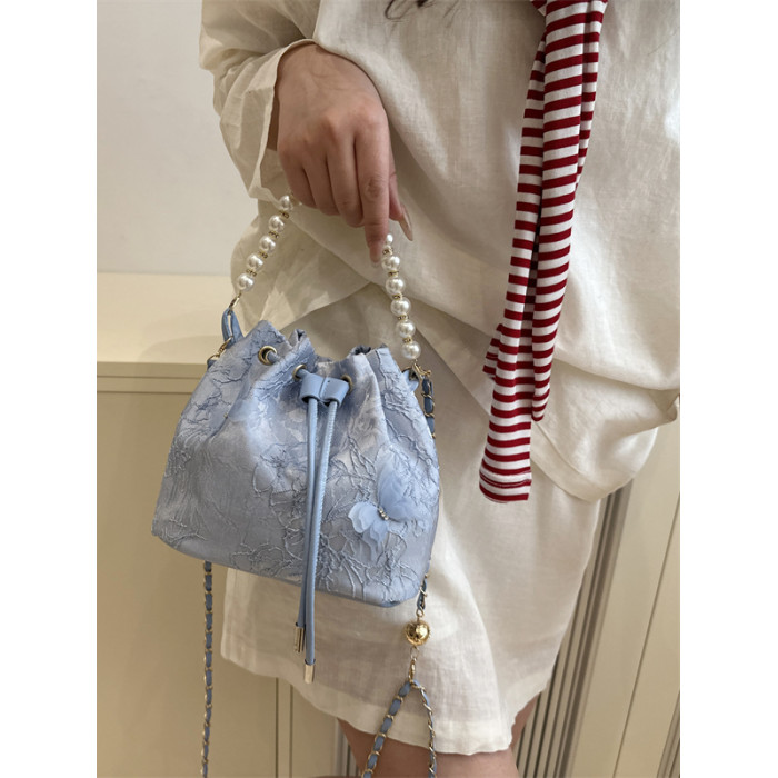 新中式水桶包2025新款旗袍風珍珠手提小包包女高級感風斜後後背包