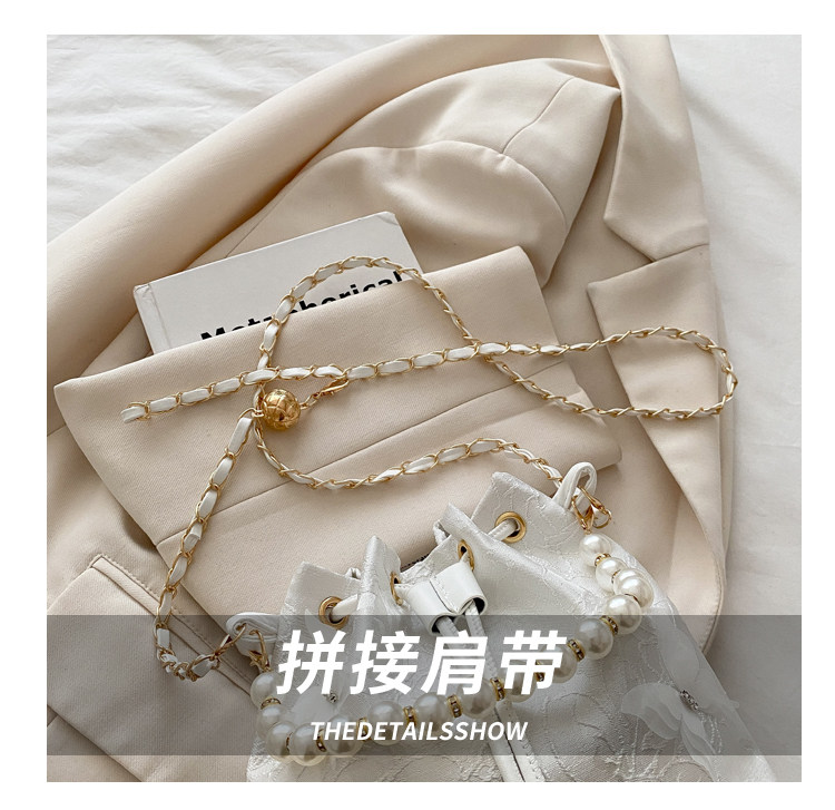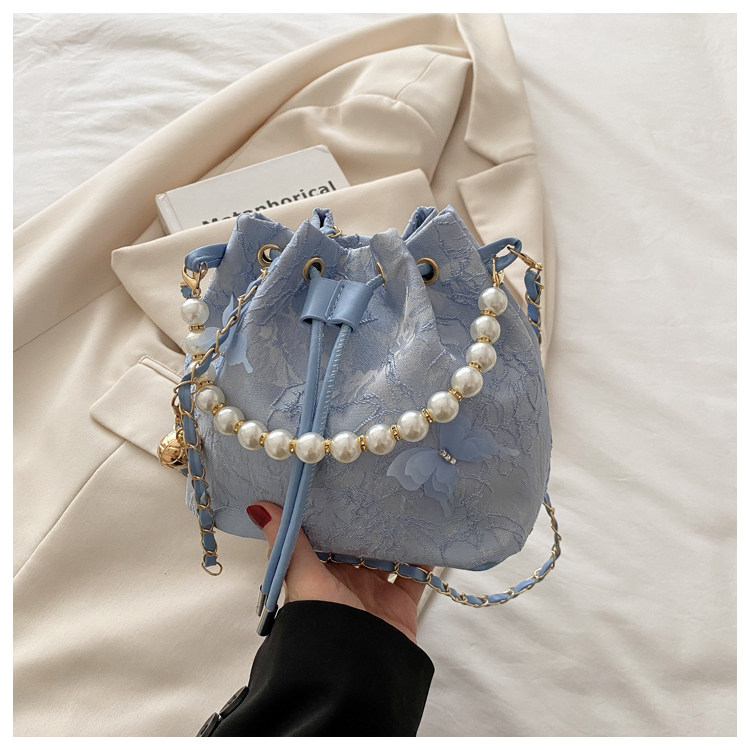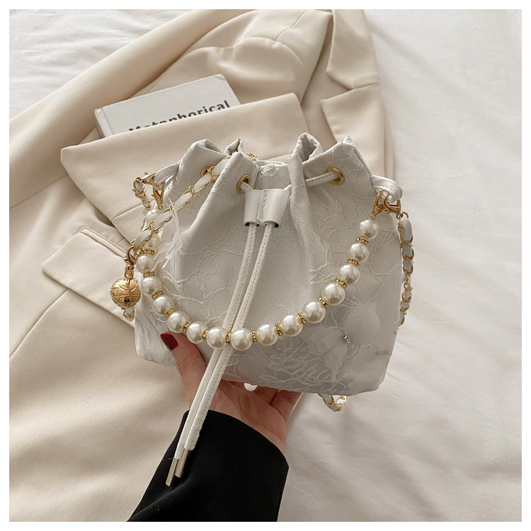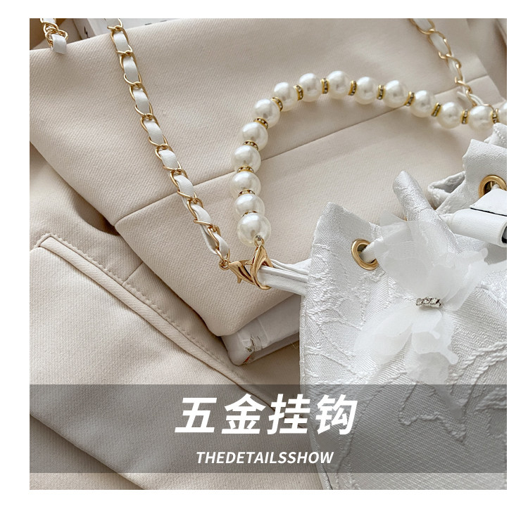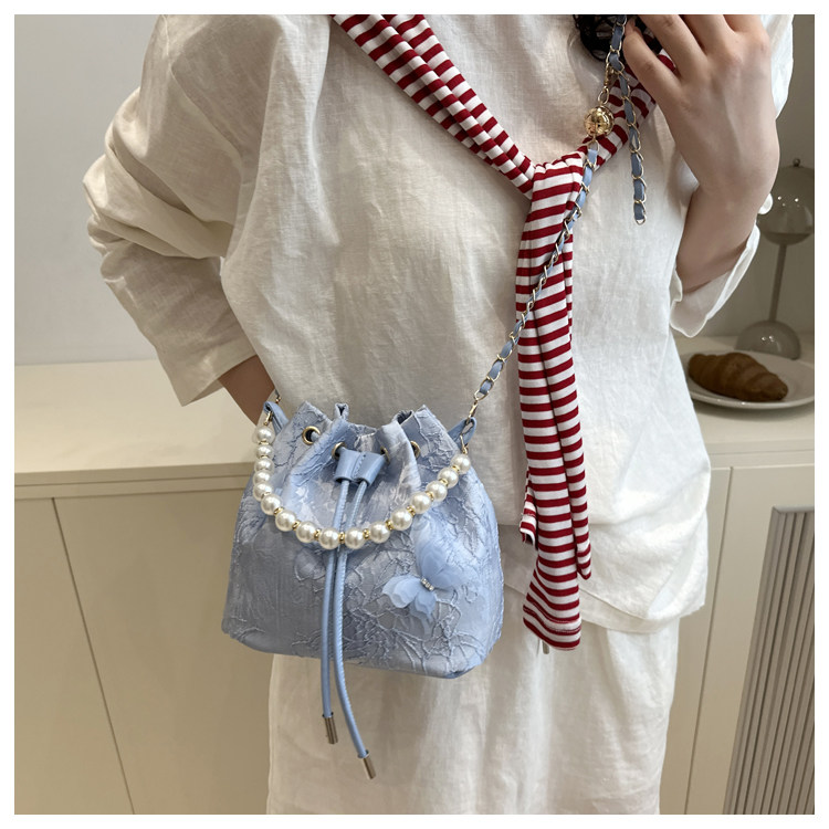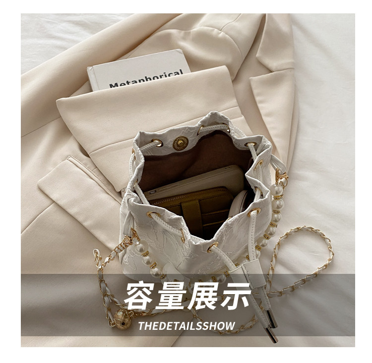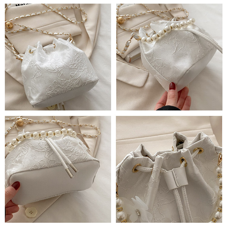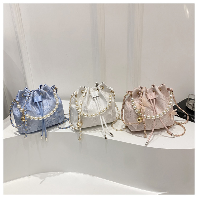 新中式水桶包2025新款旗袍風珍珠手提小包包女高級感風斜後後背包