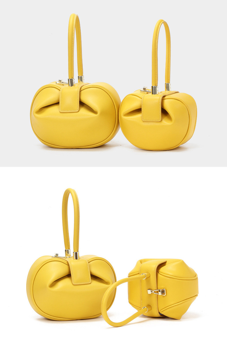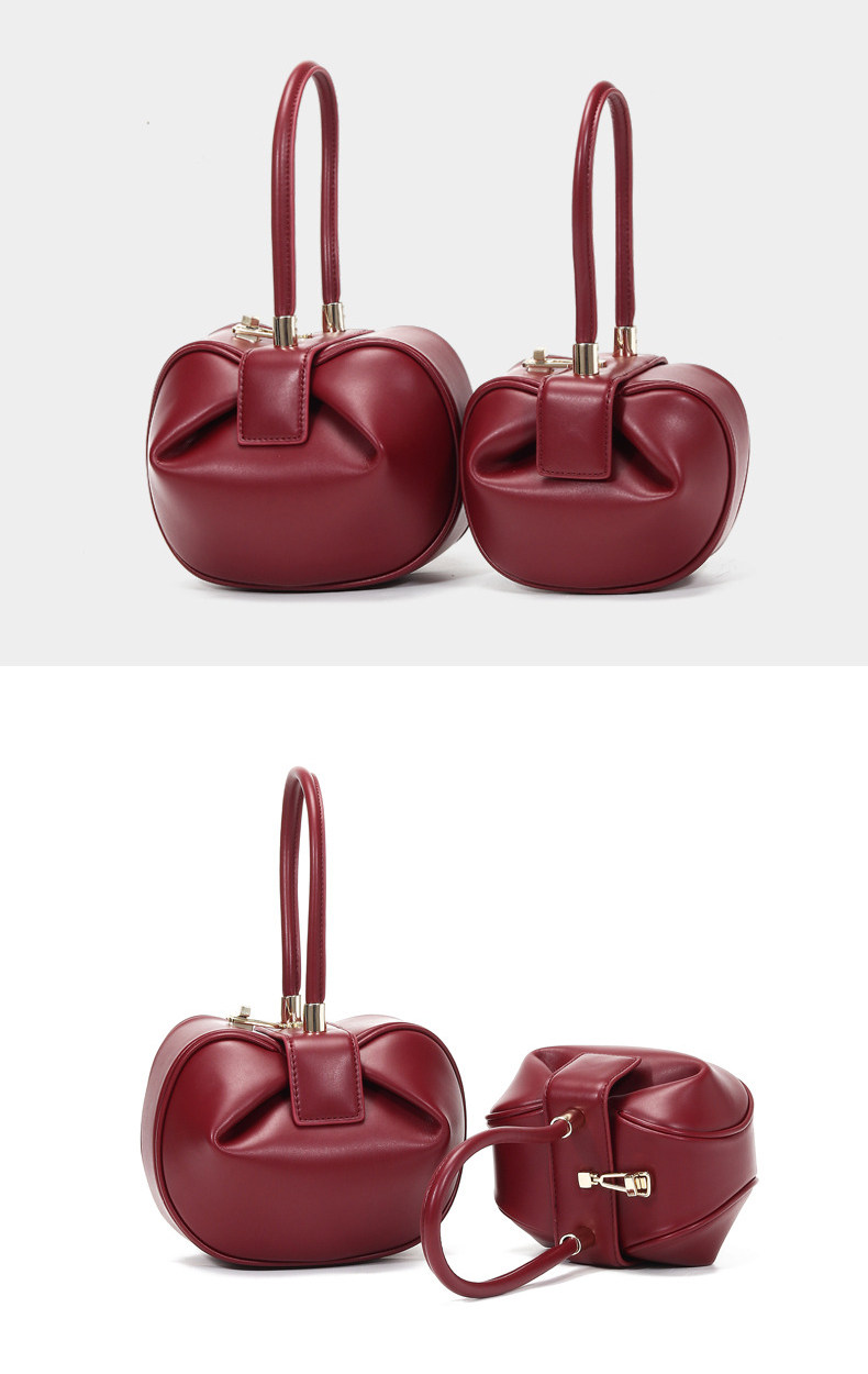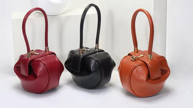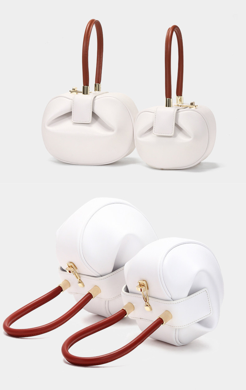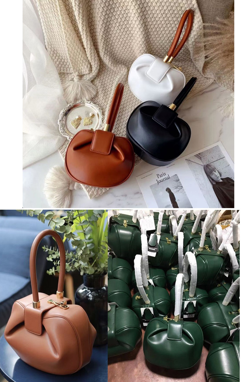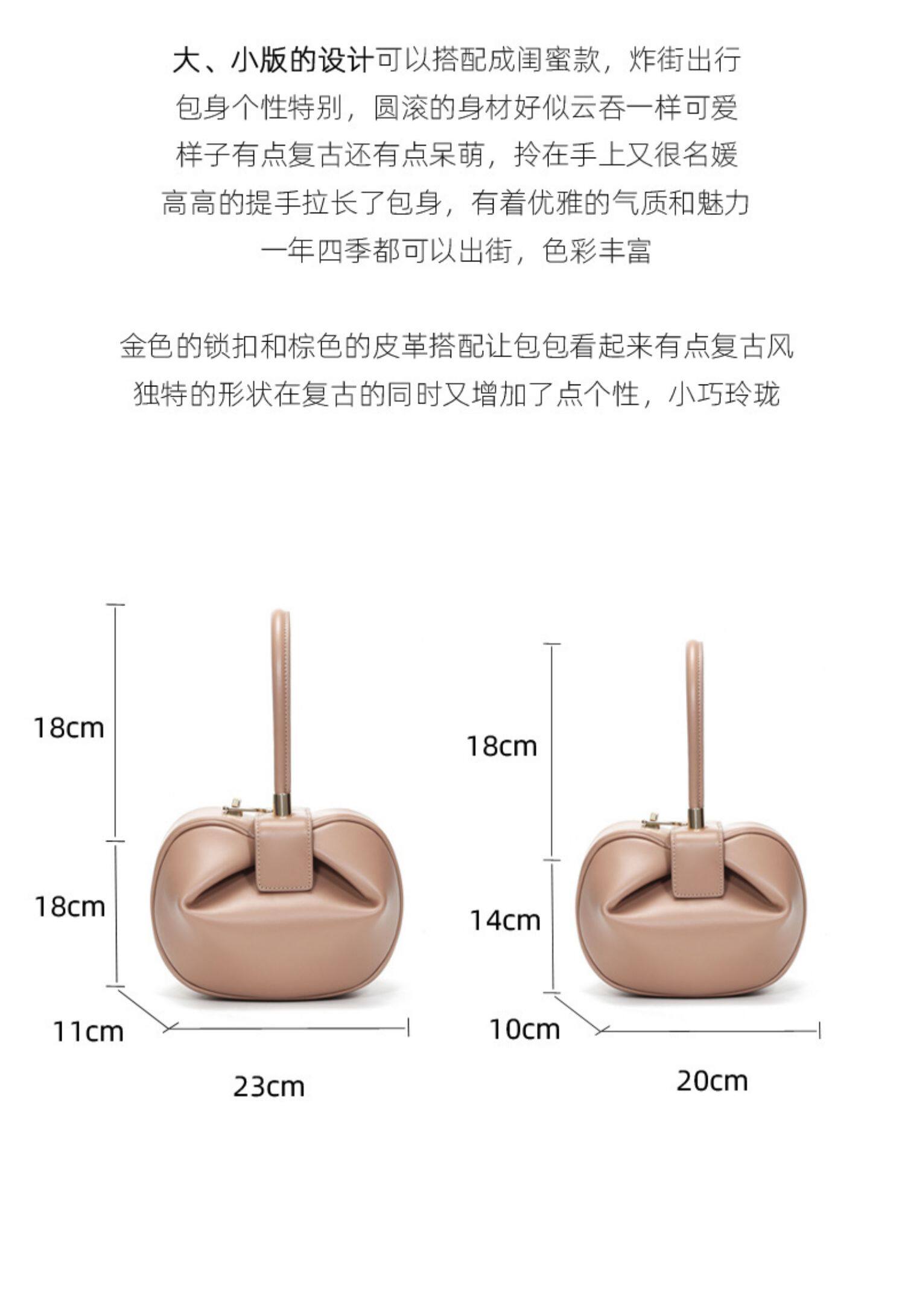 小衆設計真皮手拎包雲吞包復古新中式手提包牛皮褶皺雲朵包餃子包