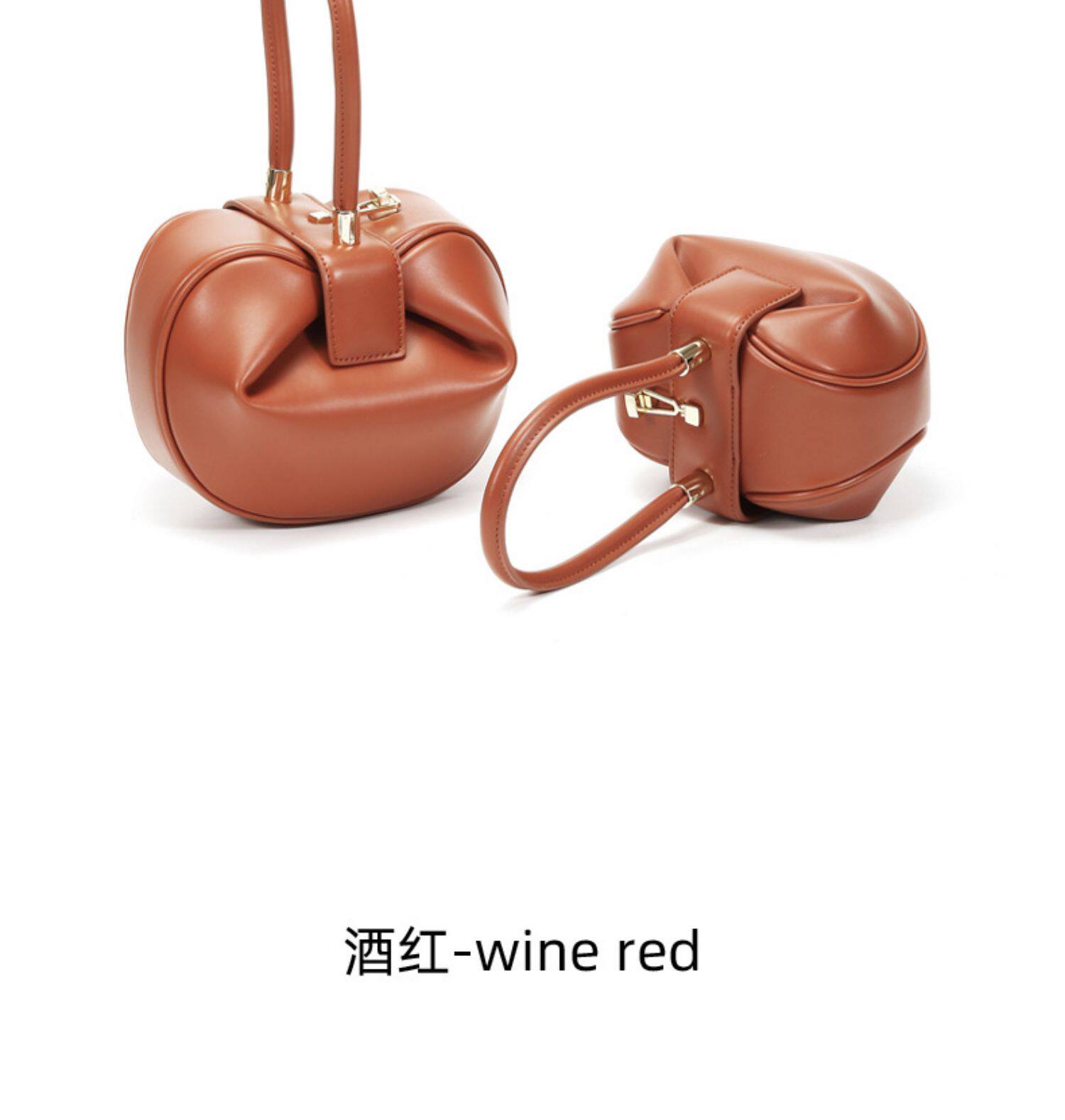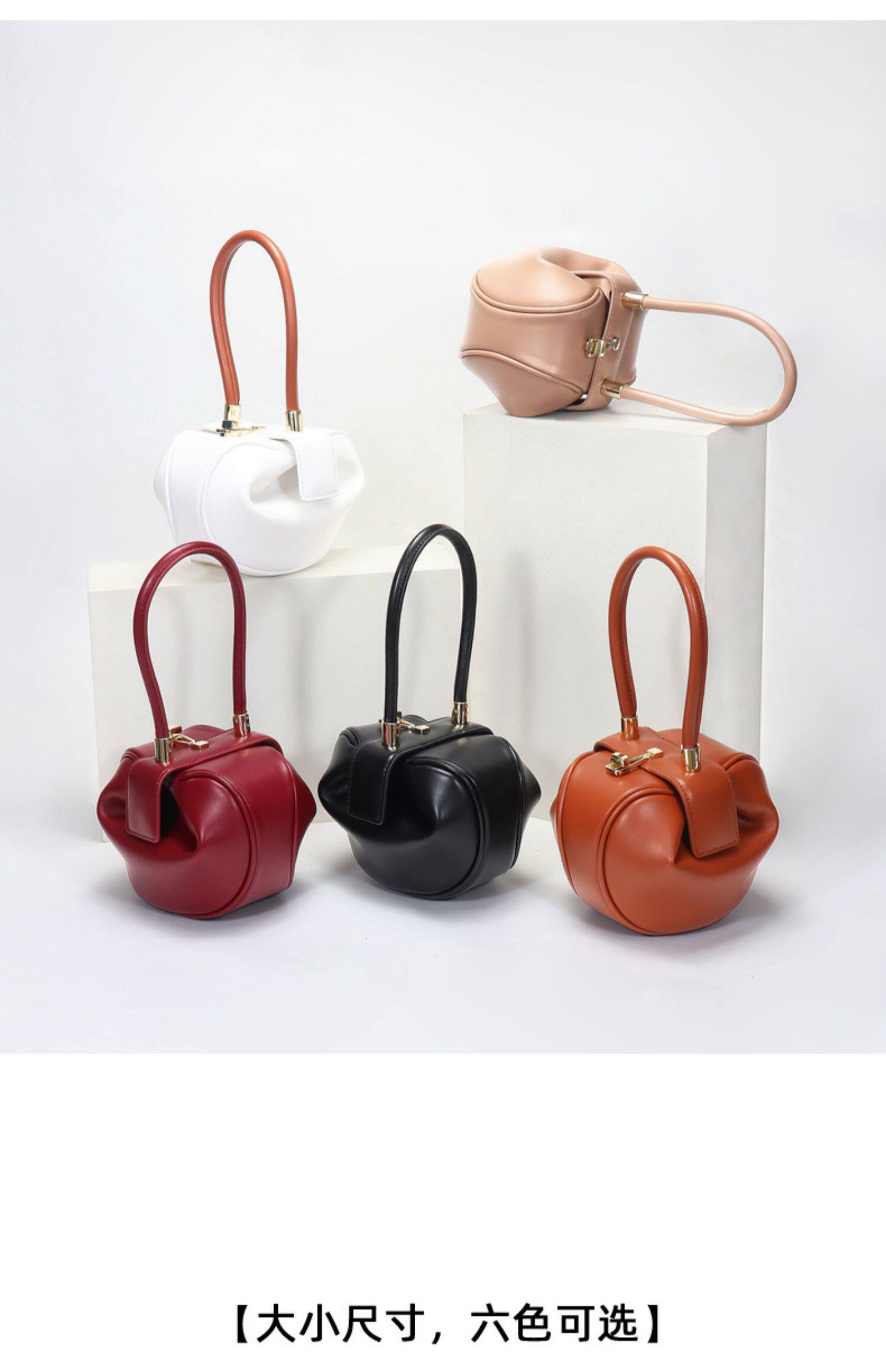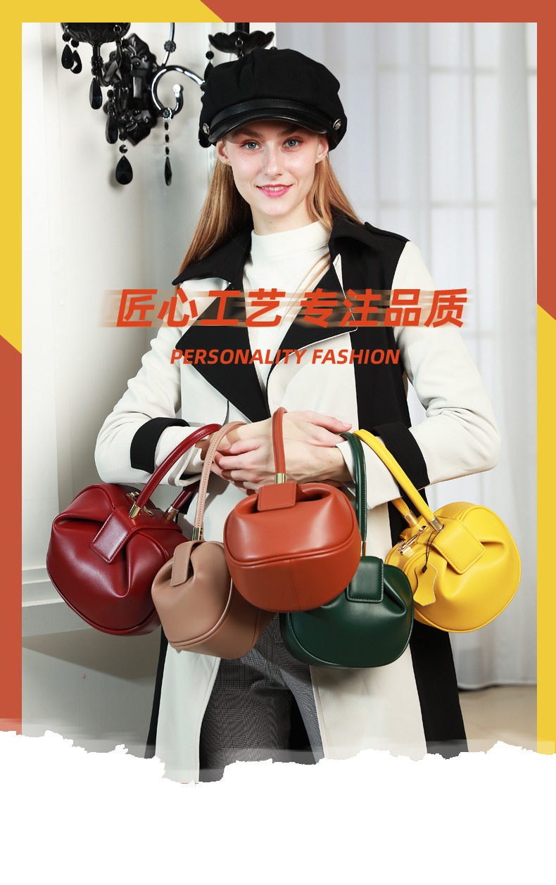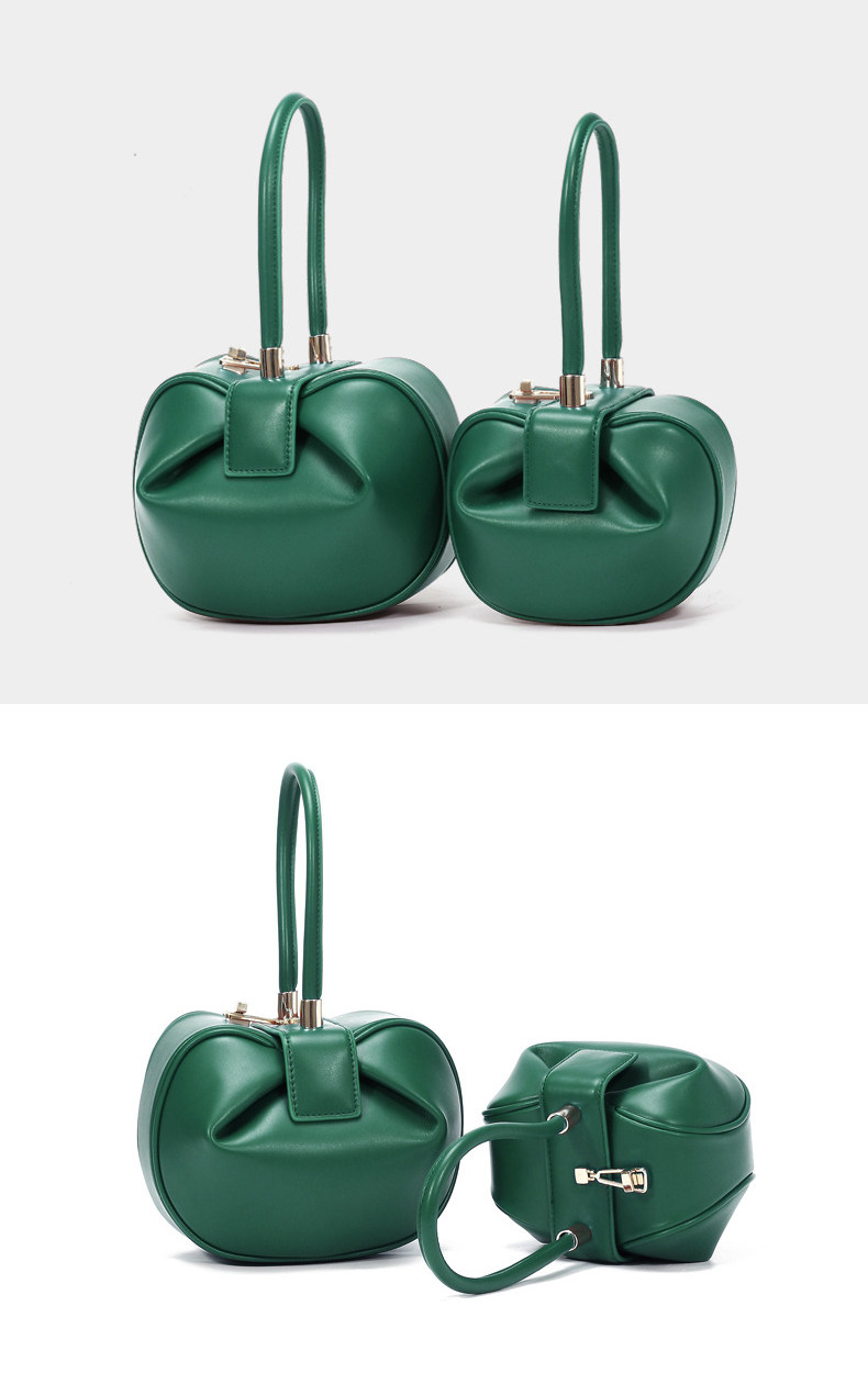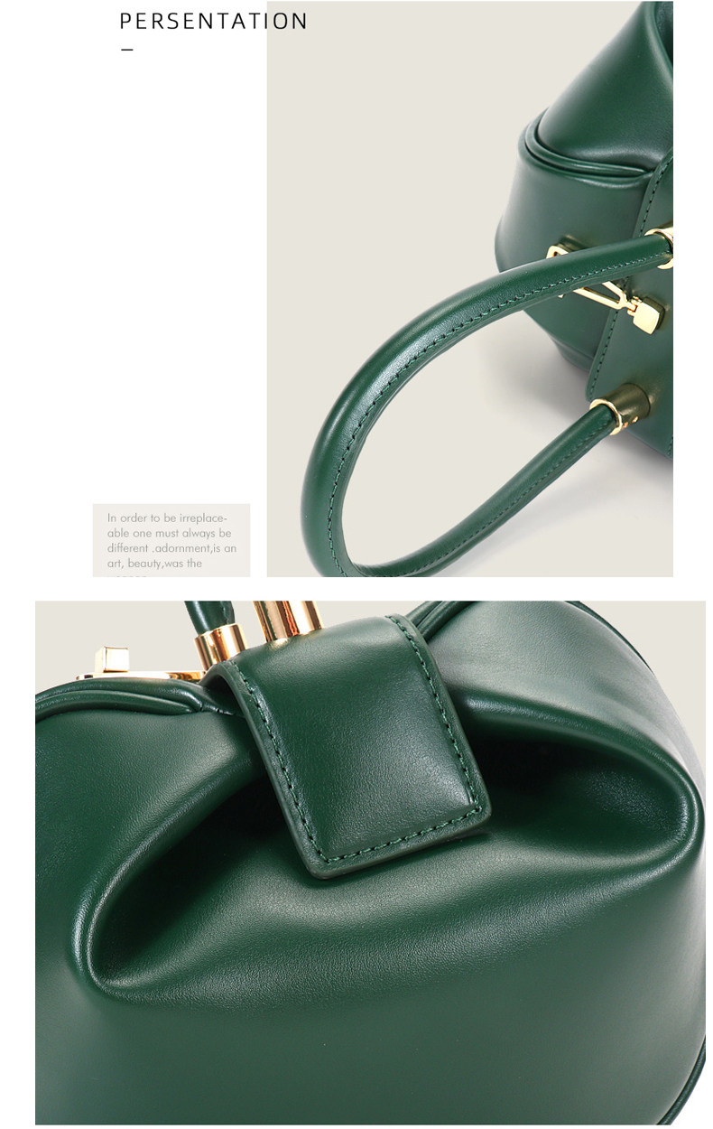 小衆設計真皮手拎包雲吞包復古新中式手提包牛皮褶皺雲朵包餃子包