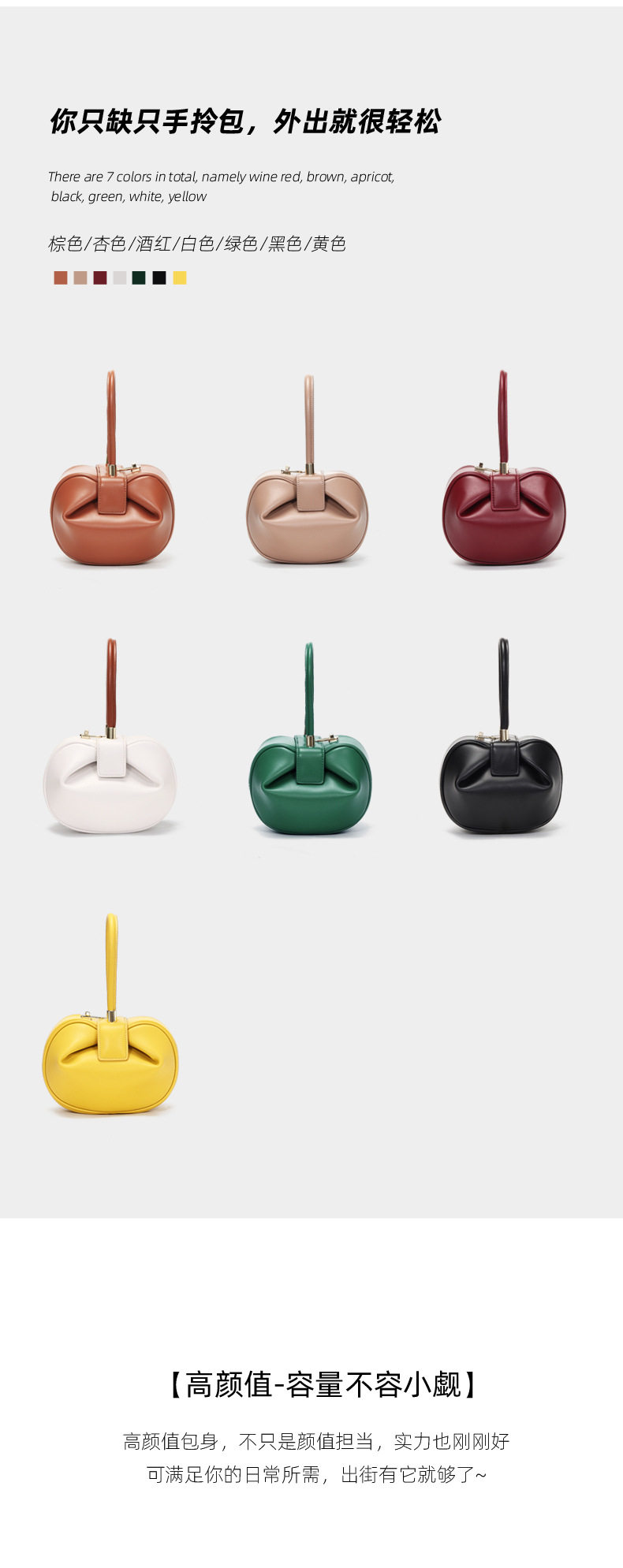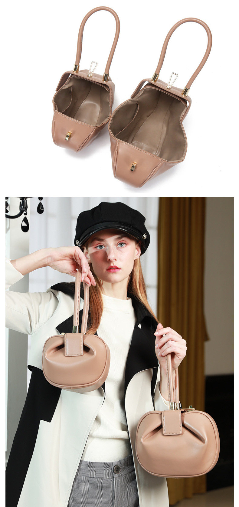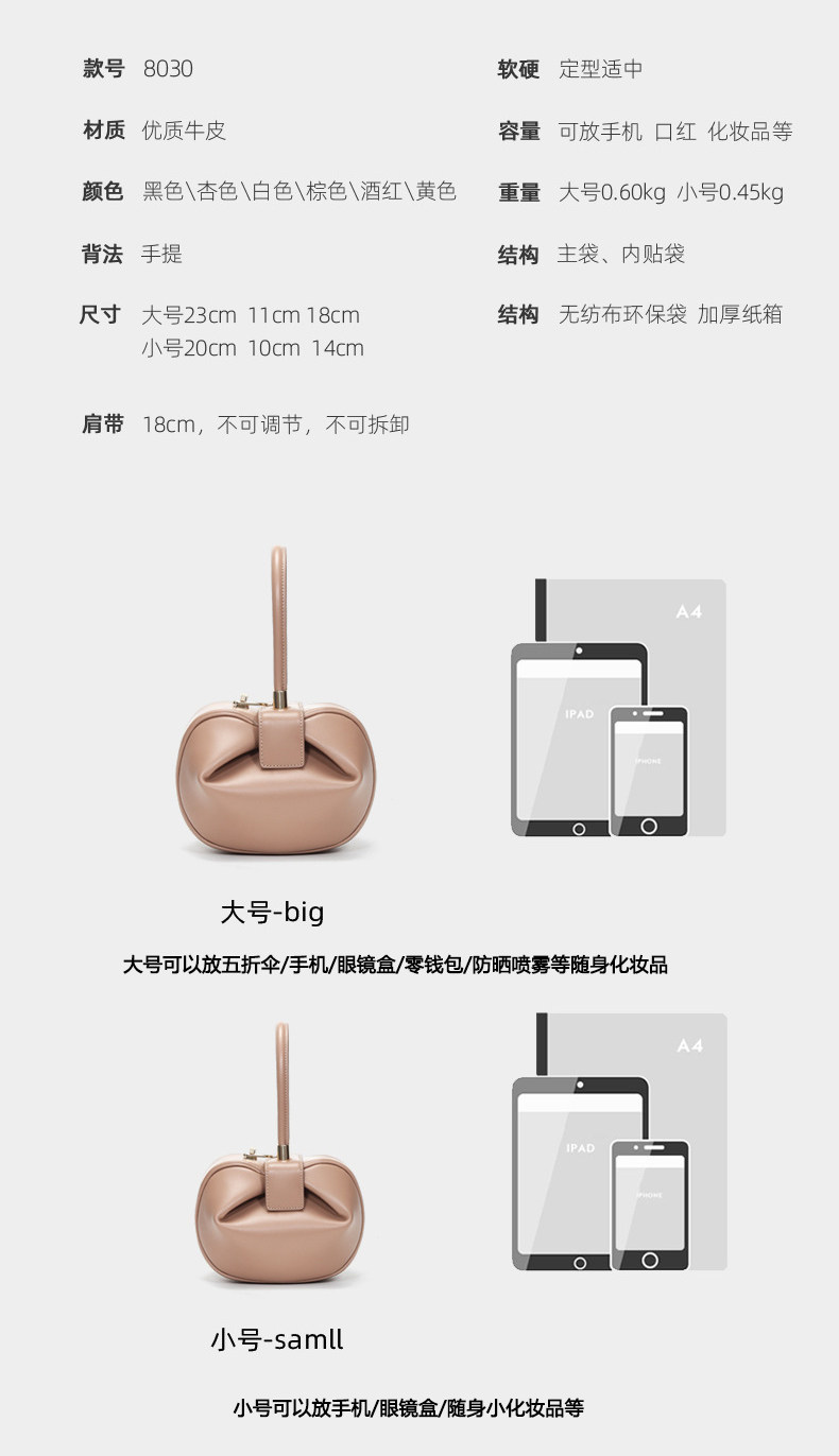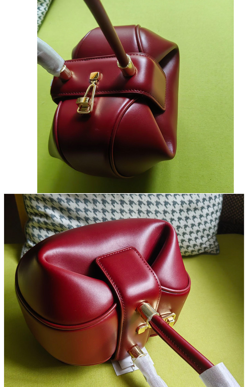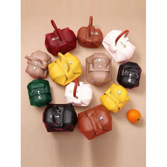 小衆設計真皮手拎包雲吞包復古新中式手提包牛皮褶皺雲朵包餃子包