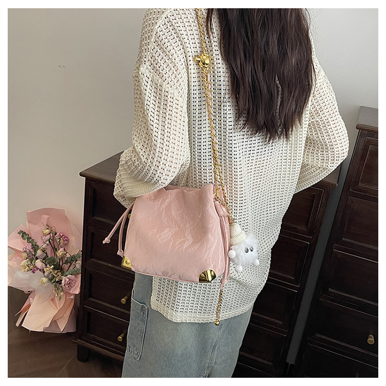 韓版時尚水桶包女2025新款春夏簡約休閒單肩包小衆高級質感斜後後背包