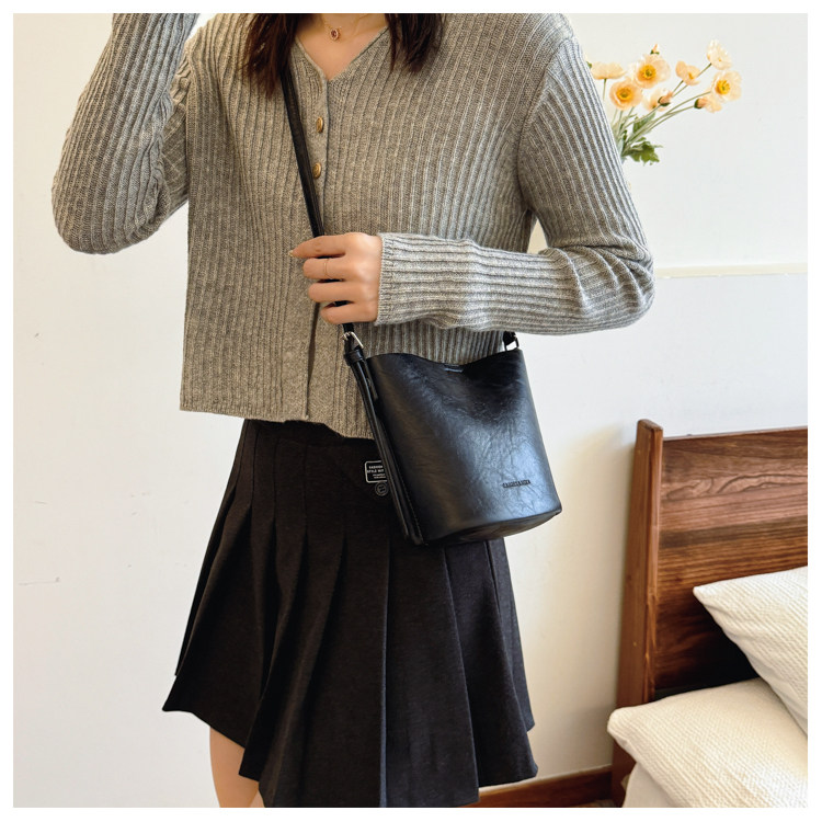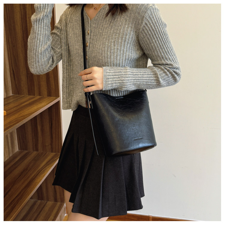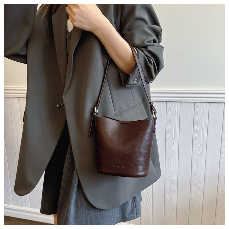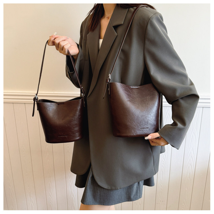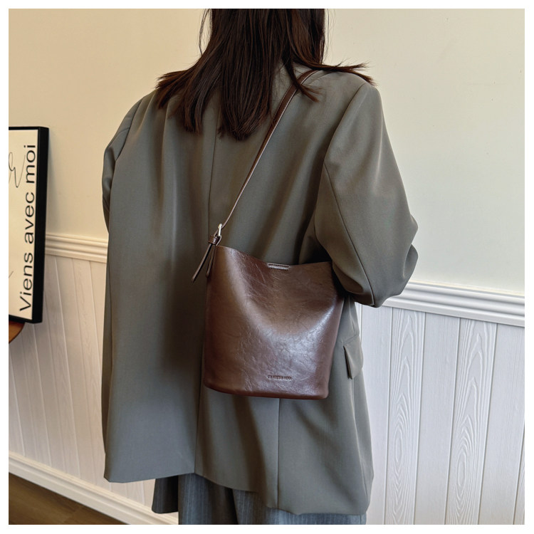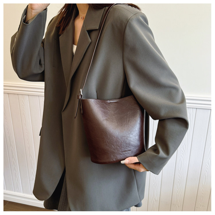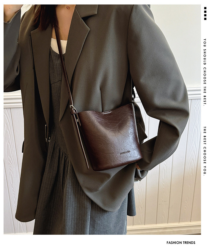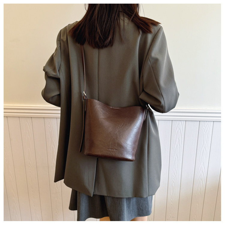 包包復古時尚通勤水桶包女新款休閒百搭單肩腋下包小衆洋氣斜後後背包