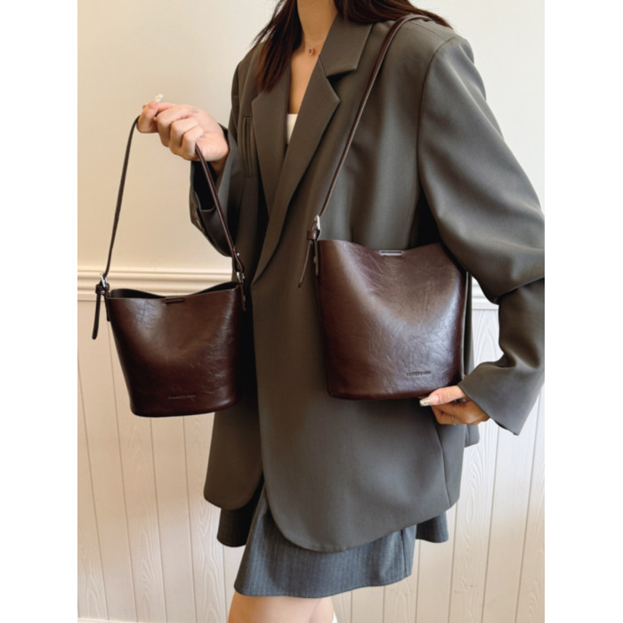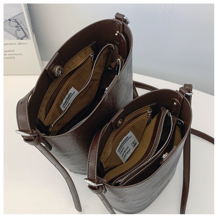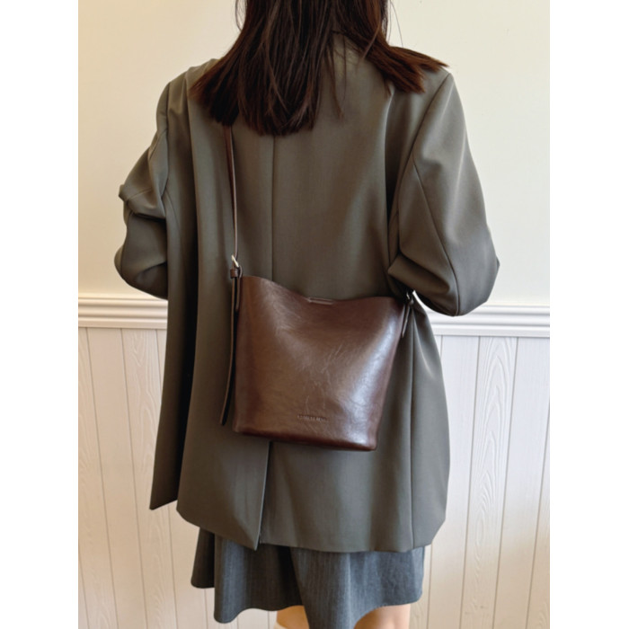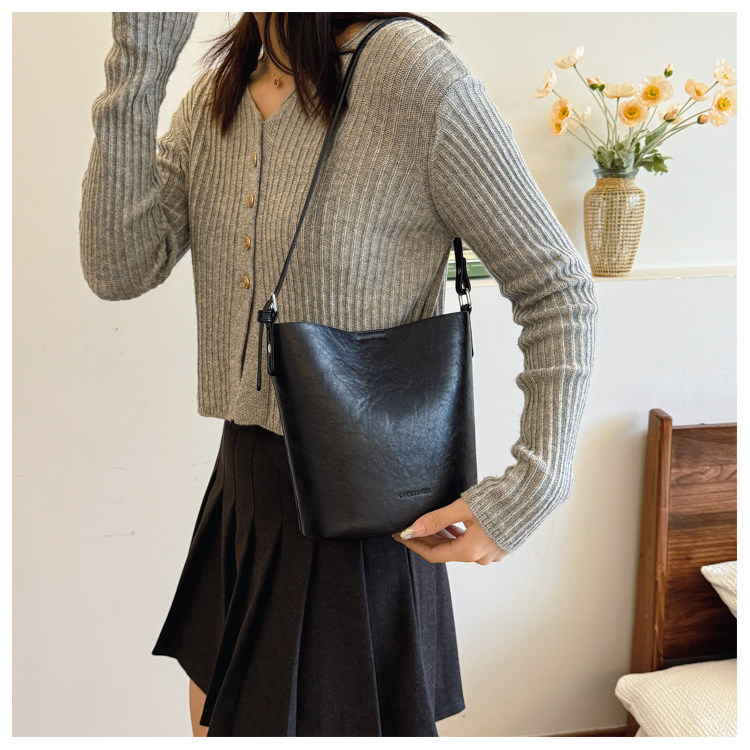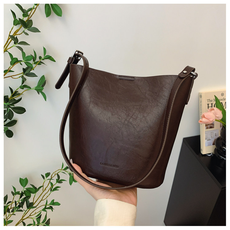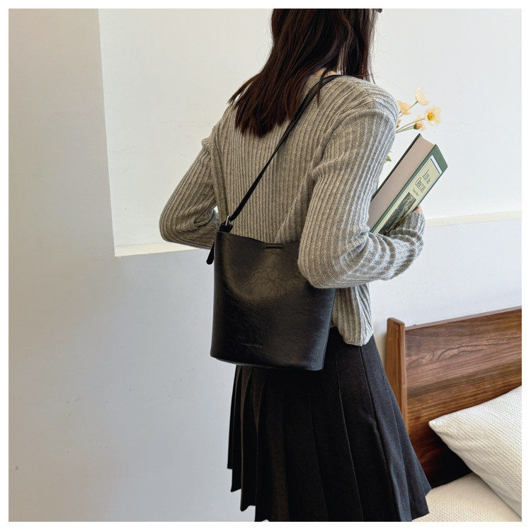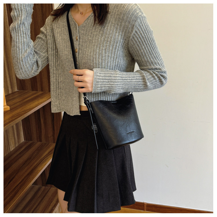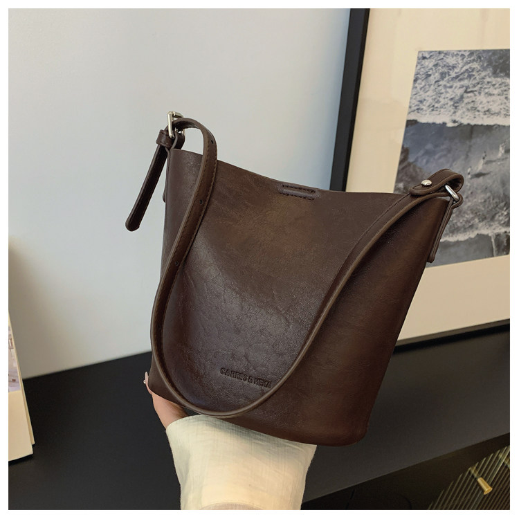 包包復古時尚通勤水桶包女新款休閒百搭單肩腋下包小衆洋氣斜後後背包