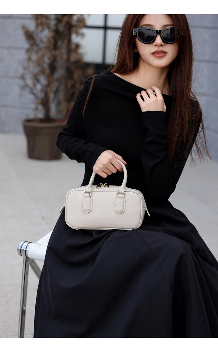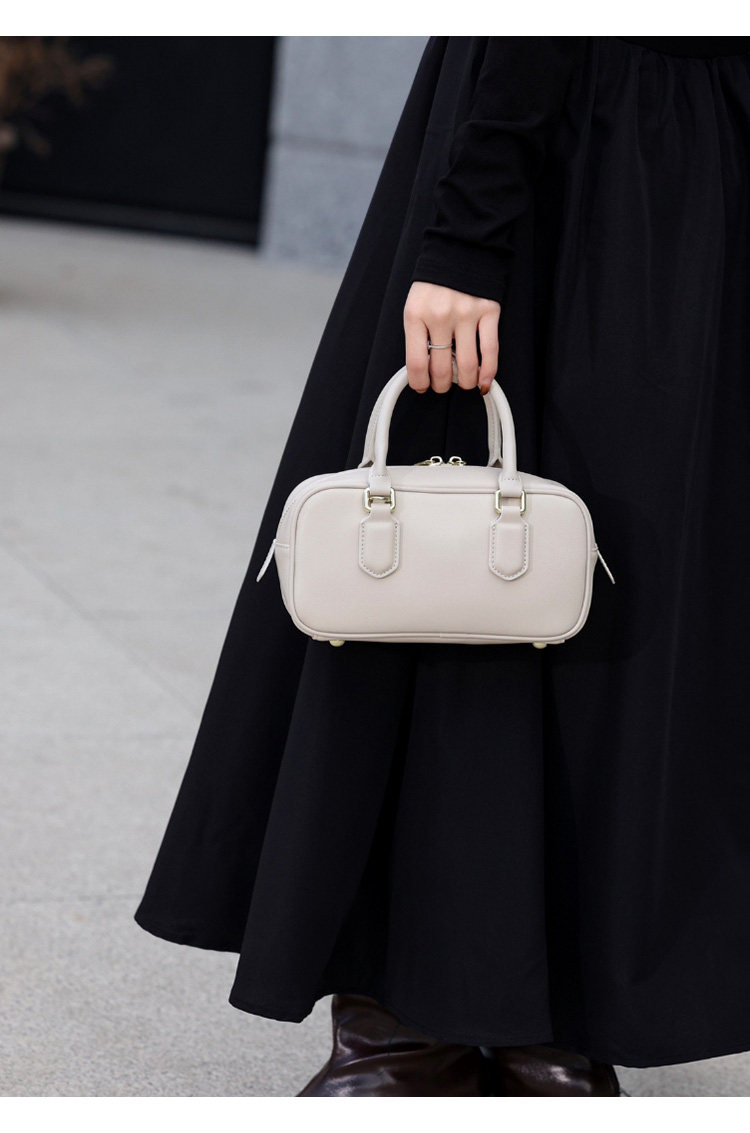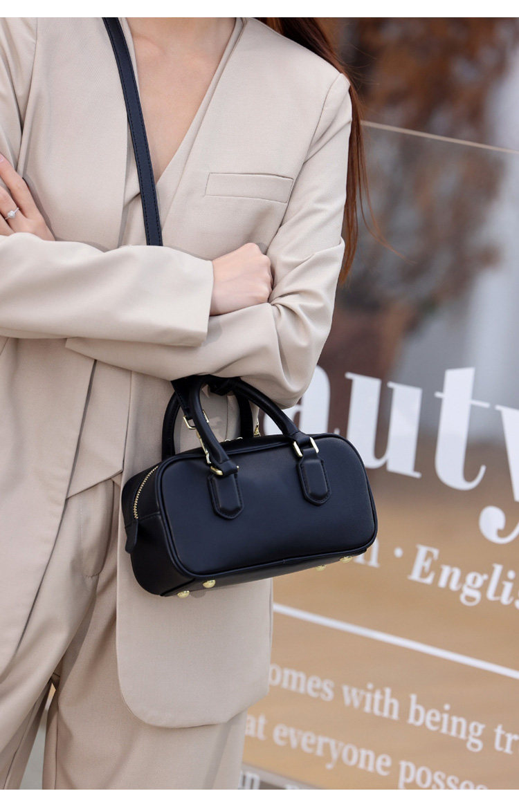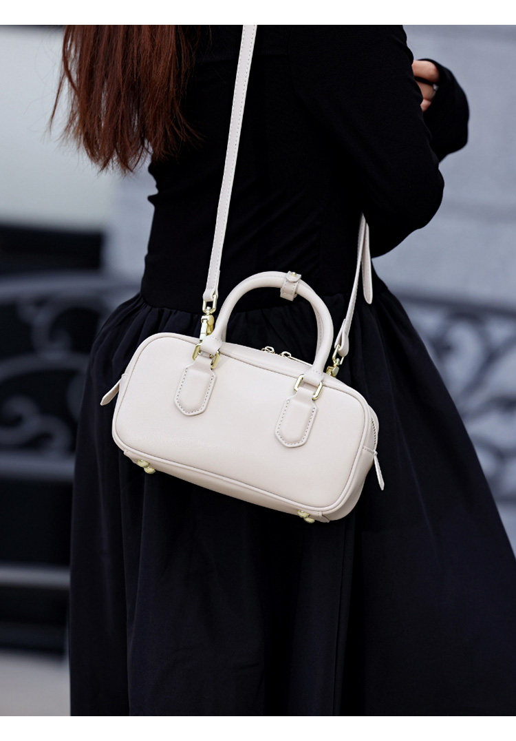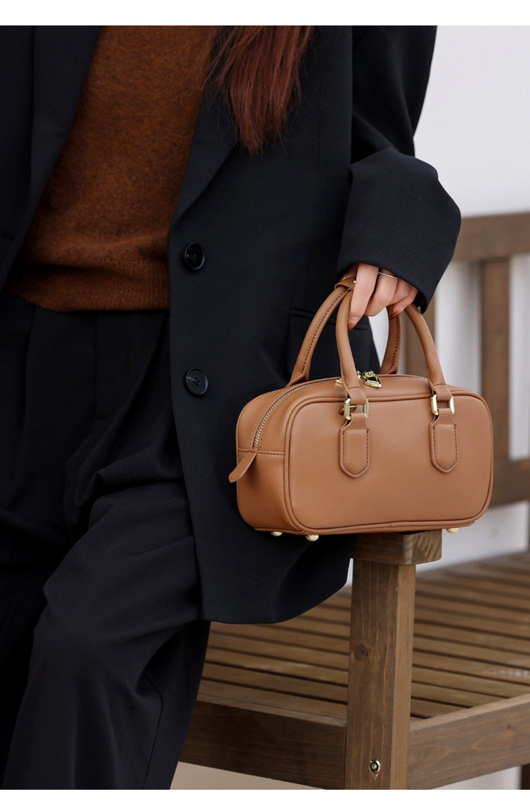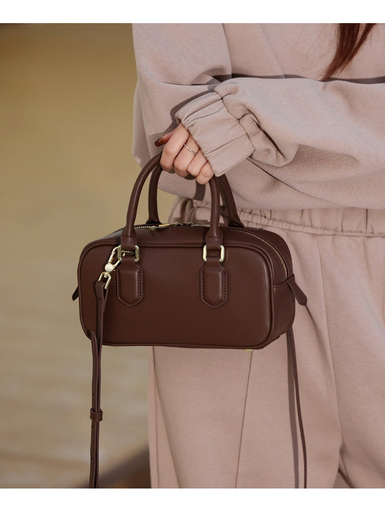 真牛皮小衆高級感保齡球包女2026新款時尚通勤單肩斜背手提小方包
