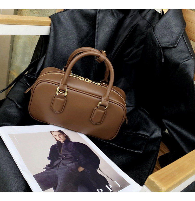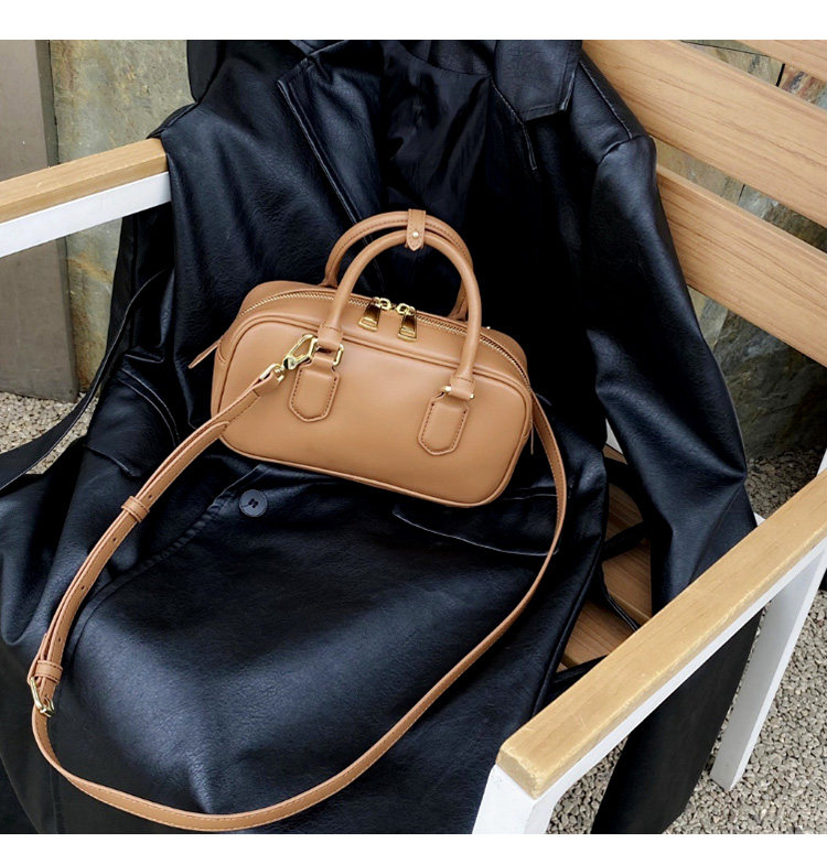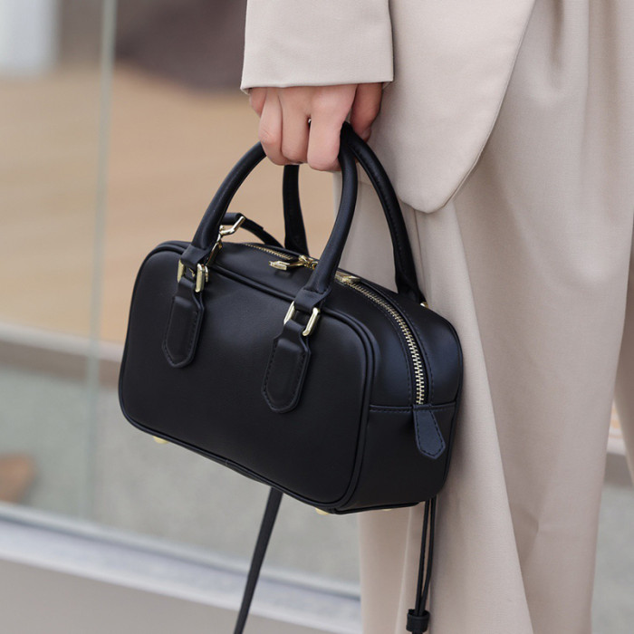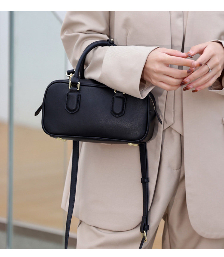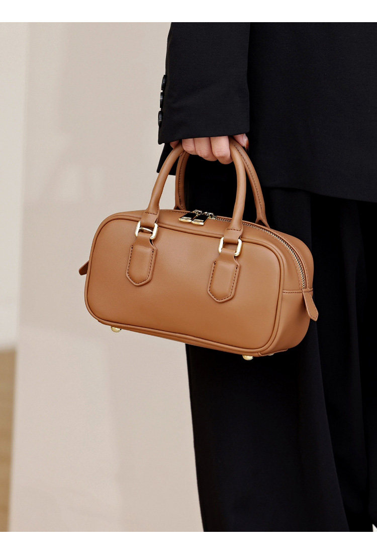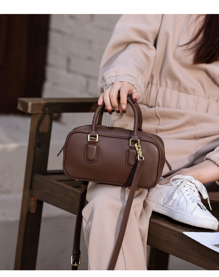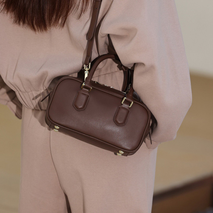 真牛皮小衆高級感保齡球包女2026新款時尚通勤單肩斜背手提小方包