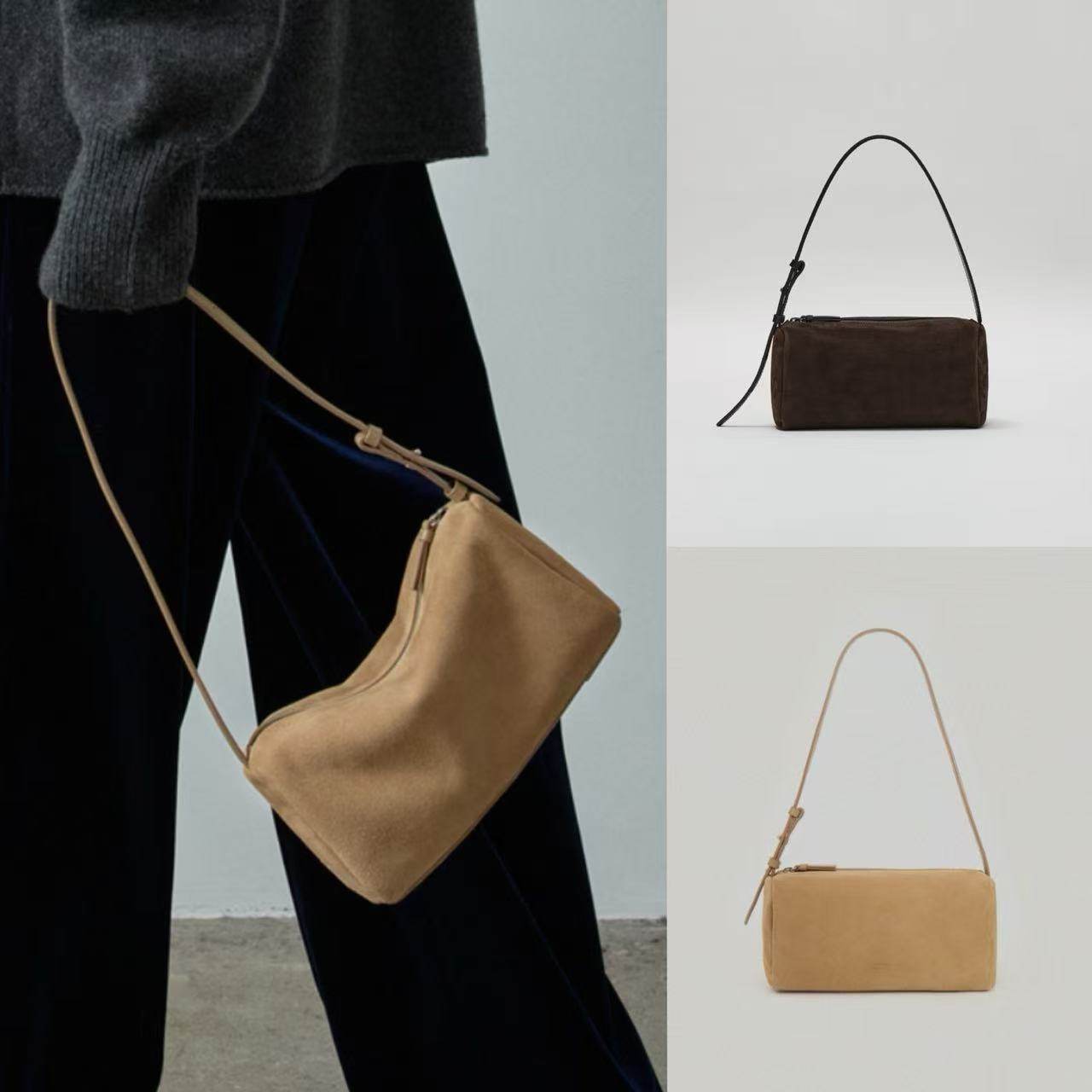 韓國設計師品牌 FACADE PATTERN 25新款復古簡約手提單肩麂皮女包