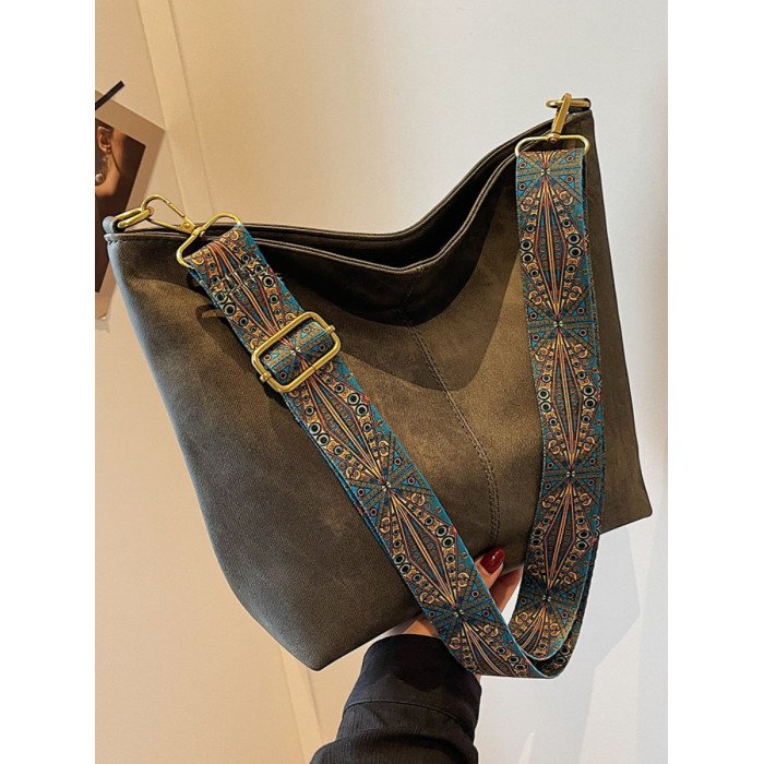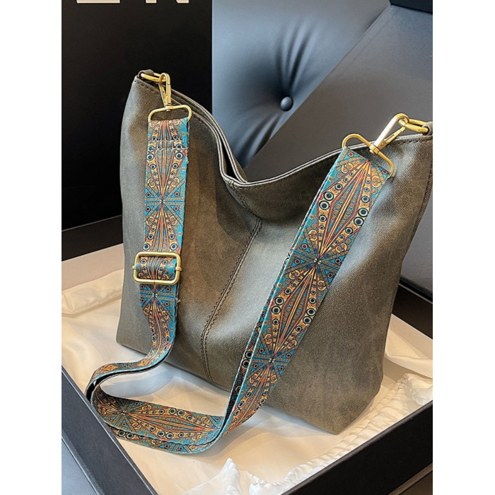 時尚通勤寬肩帶大容量包包女士2025新款簡約高級感休閒單肩水桶包