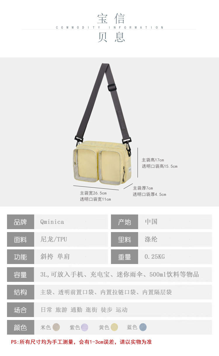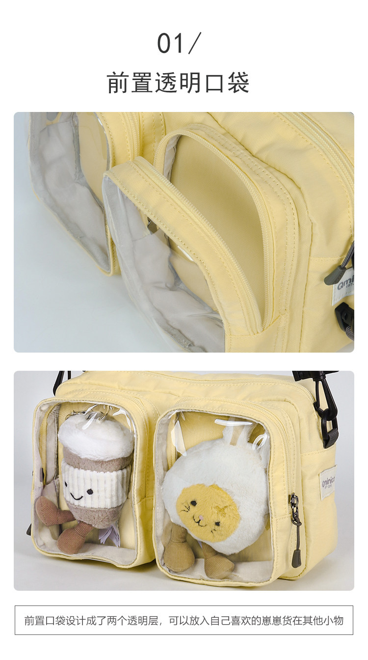 Qminica痛包斜後後背包女小食量15cm透明娃包吧唧通勤旅遊大容量單肩